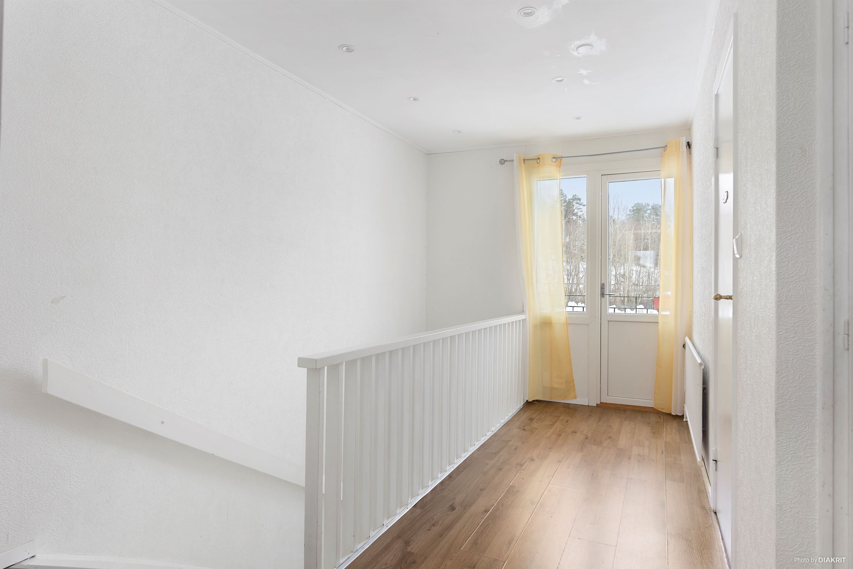 Planlösningen är både funktionell och familjevänlig med en tydlig uppdelning mellan sociala och privata ytor. Entréplanet bjuder in till umgänge med generösa sällskapsytor och goda förvaringsmöjligheter, medan övervåningen rymmer bostadens tre sovrum, en lugn och mer avskild del av hemmet.