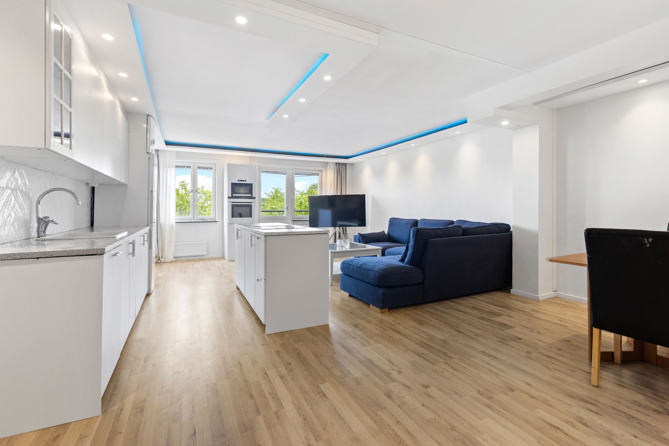- Modernt renoverad bostad med öppen planlösning och vitt kök samt spotlights! Social planlösning med kök, vardagsrum och matplats tillsammans. Stambytt badrum med tvättmaskin och duschplats. Balkong i fritt sydost-läge med härlig utsikt. Master bedroom med plats för dubbelsäng samt gott om förvaring i platsbyggda garderober. Varmt välkommen till ett hem att trivas i!