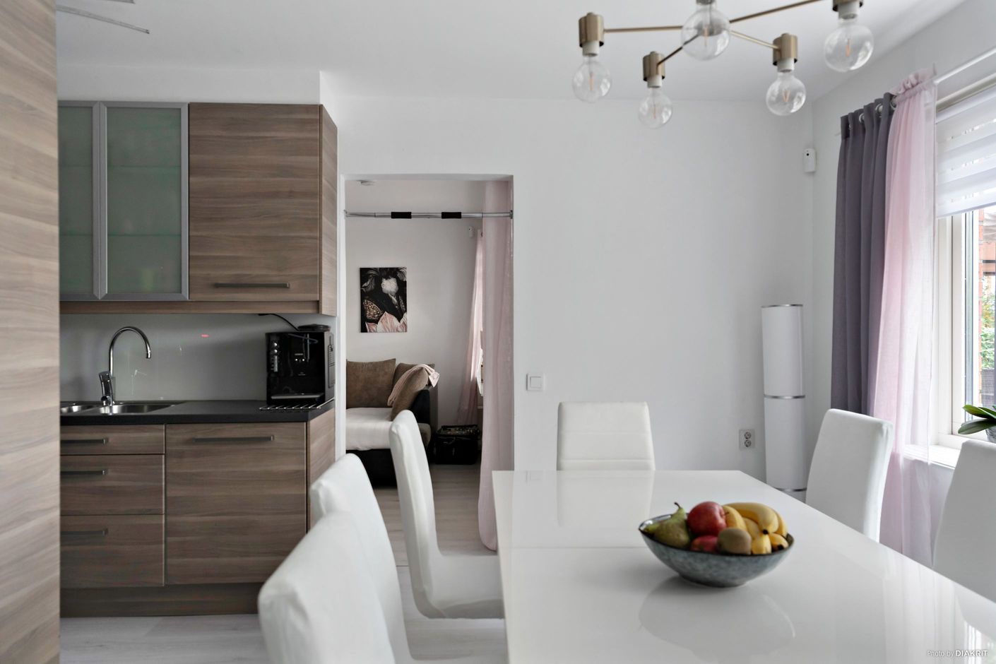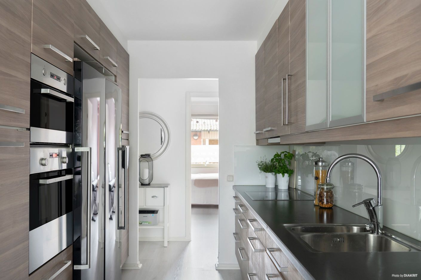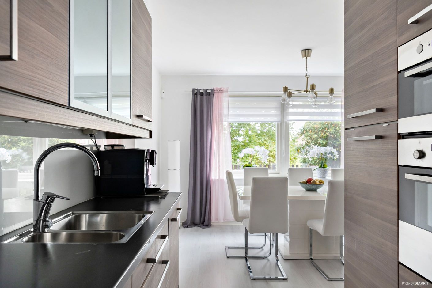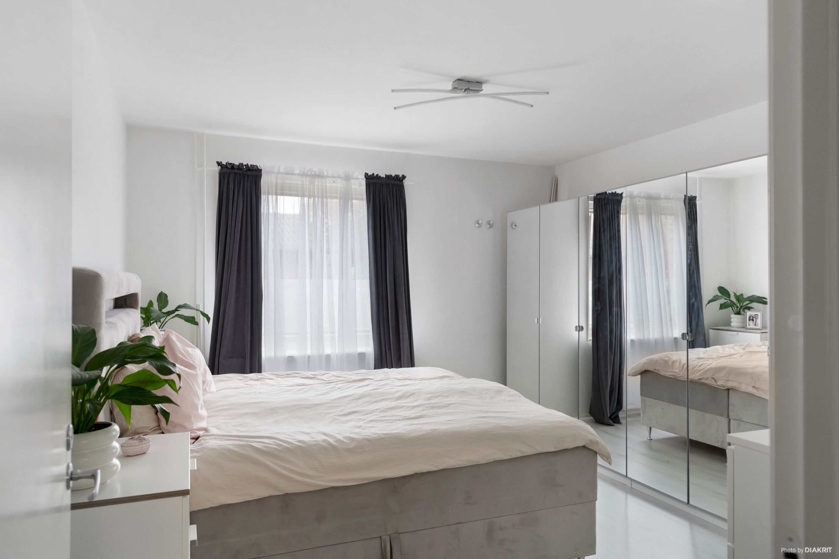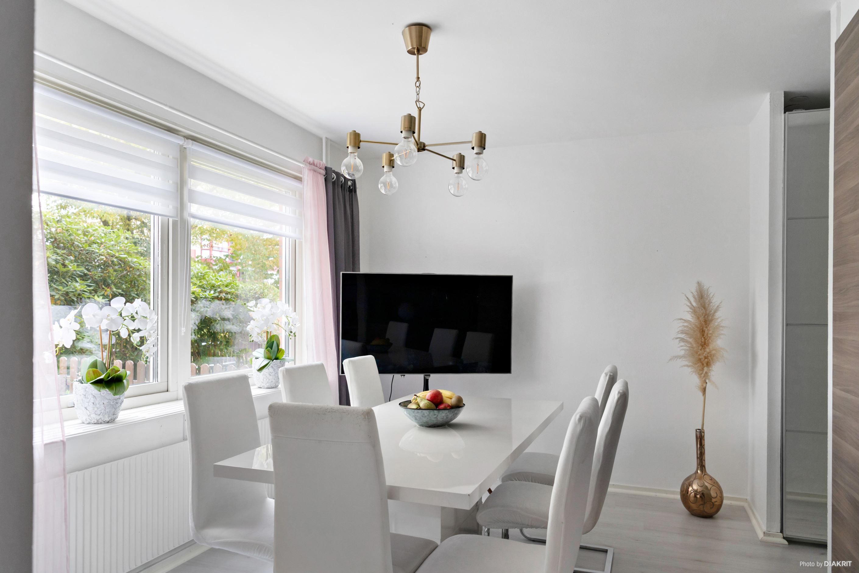Lägenheten är ljus och smakfull med en modern, stilren känsla genomgående. Det renoverade köket erbjuder gott om arbetsytor, kvalitativa vitvaror och en generös matplats där du enkelt får plats med familj och vänner. Inredningen går i neutrala, harmoniska toner som passar de flesta stilar och förstärker känslan av rymd och ljus. Vardagsrummet är luftigt med vackert ljusinsläpp från stora fönsterpartier och har plats för både en rymlig soffgrupp och matbord för den som önskar. Den genomtänkta planlösningen gör att rummen ligger i ett naturligt flöde med god avskildhet mellan sociala ytor och privata rum. Båda sovrummen är väl tilltagna med plats för dubbelsäng och generösa förvaringsmöjligheter – perfekta som master bedroom och barn- eller gästrum. Hallen välkomnar med stilrena ytskikt och praktisk garderobsvägg med spegelskjutdörrar som både rymmer mycket och förstärker ljuset. Det helkaklade badrummet är elegant renoverat med bl.a. duschhörna, handdukstork och modern kommod – en fräsch och avkopplande plats för dina dagliga rutiner.