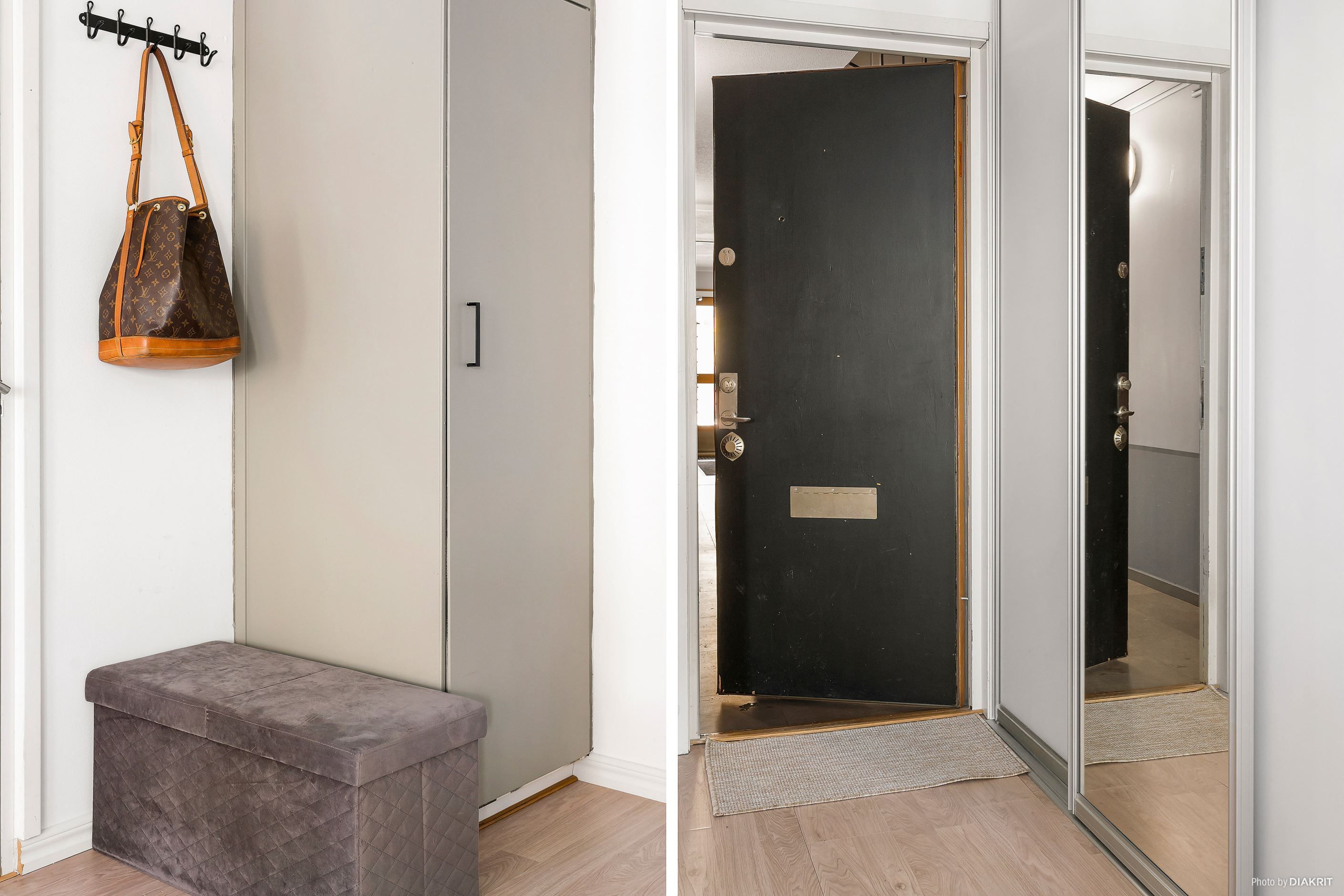 Hallen erbjuder goda förvaringsmöjligheter i form av praktiska skjutdörrsgarderober som håller bostaden välorganiserad. Från bostaden nås även en rymlig balkong med trevligt läge – en perfekt plats för morgonkaffet eller avkoppling under sommarhalvåret.