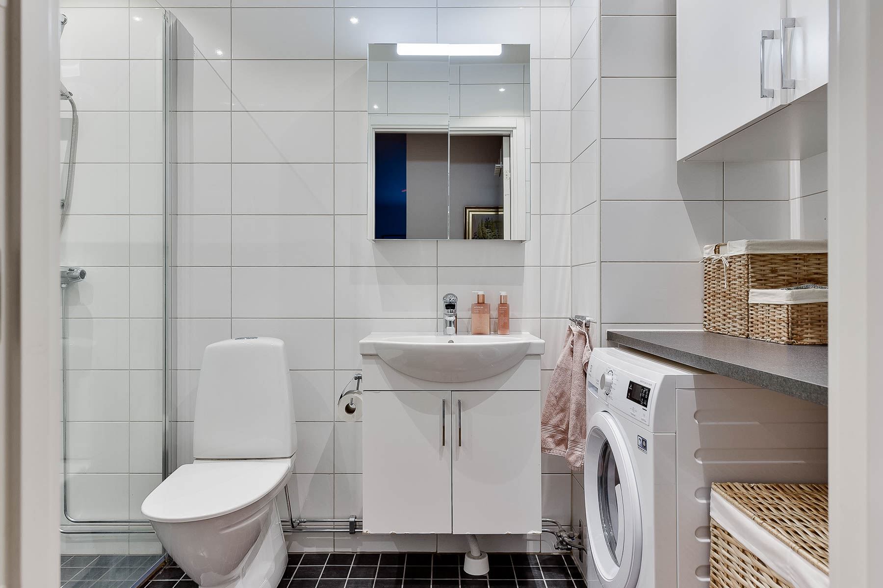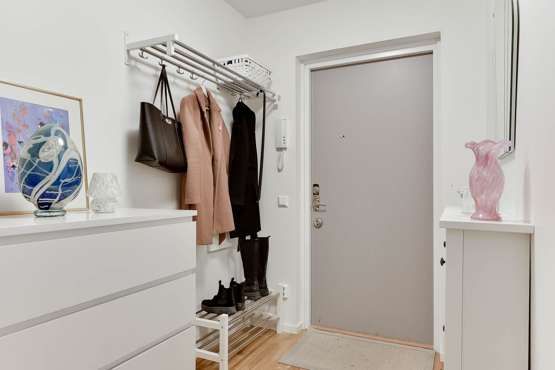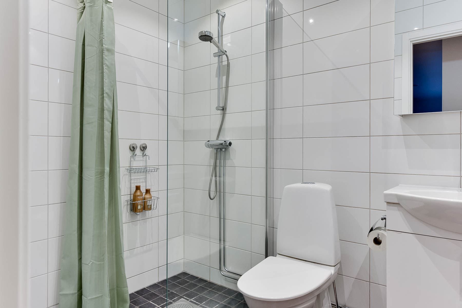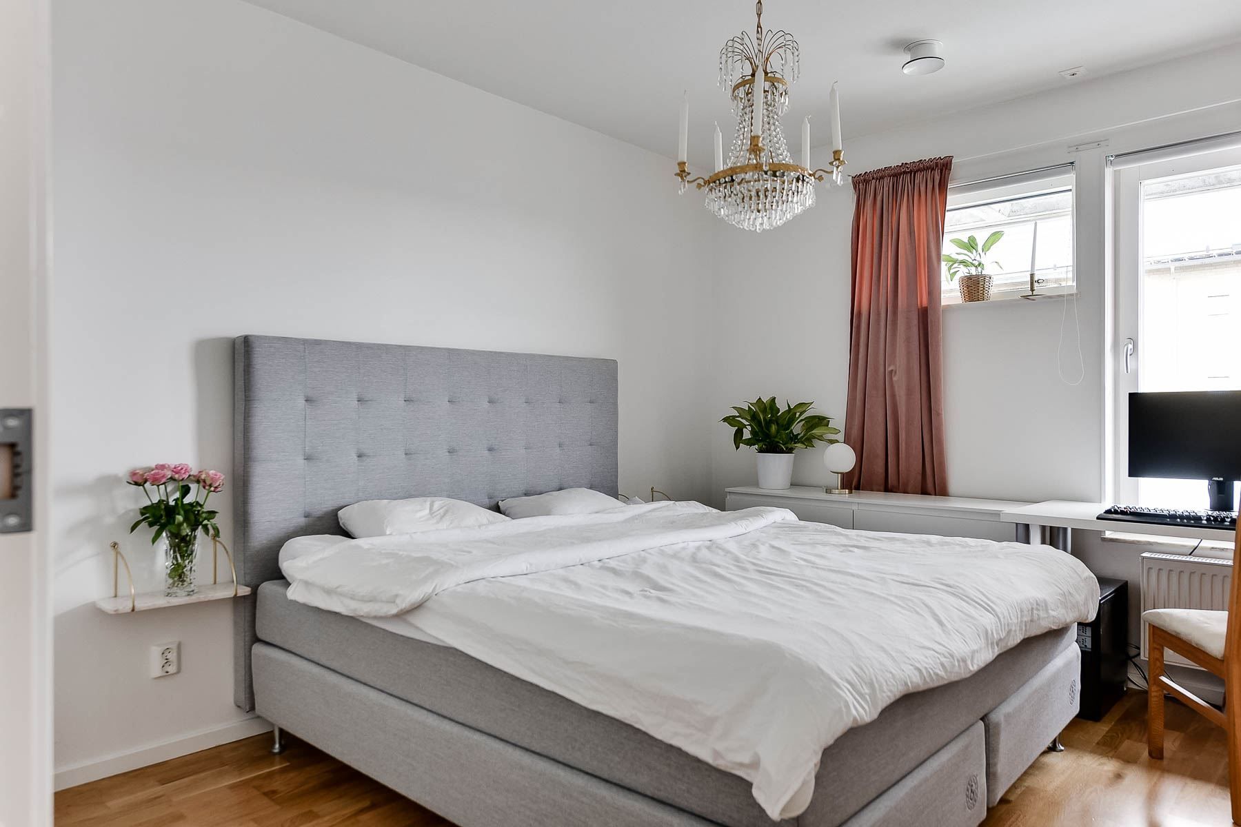Lägenheten är belägen på andra våningen och disponeras genom ett sovrum, helkaklat badrum med golvvärme, fullutrustat kök för den glada matlagaren samt stora fönsterpartier med fina ljusinsläpp från olika väderstreck då lägenheten är belägen på gaveln. Hela lägenheten har ett genomgående fint parkettgolv och ljusa ytskikt. Förvaring i garderober samt tillhörande förråd.
