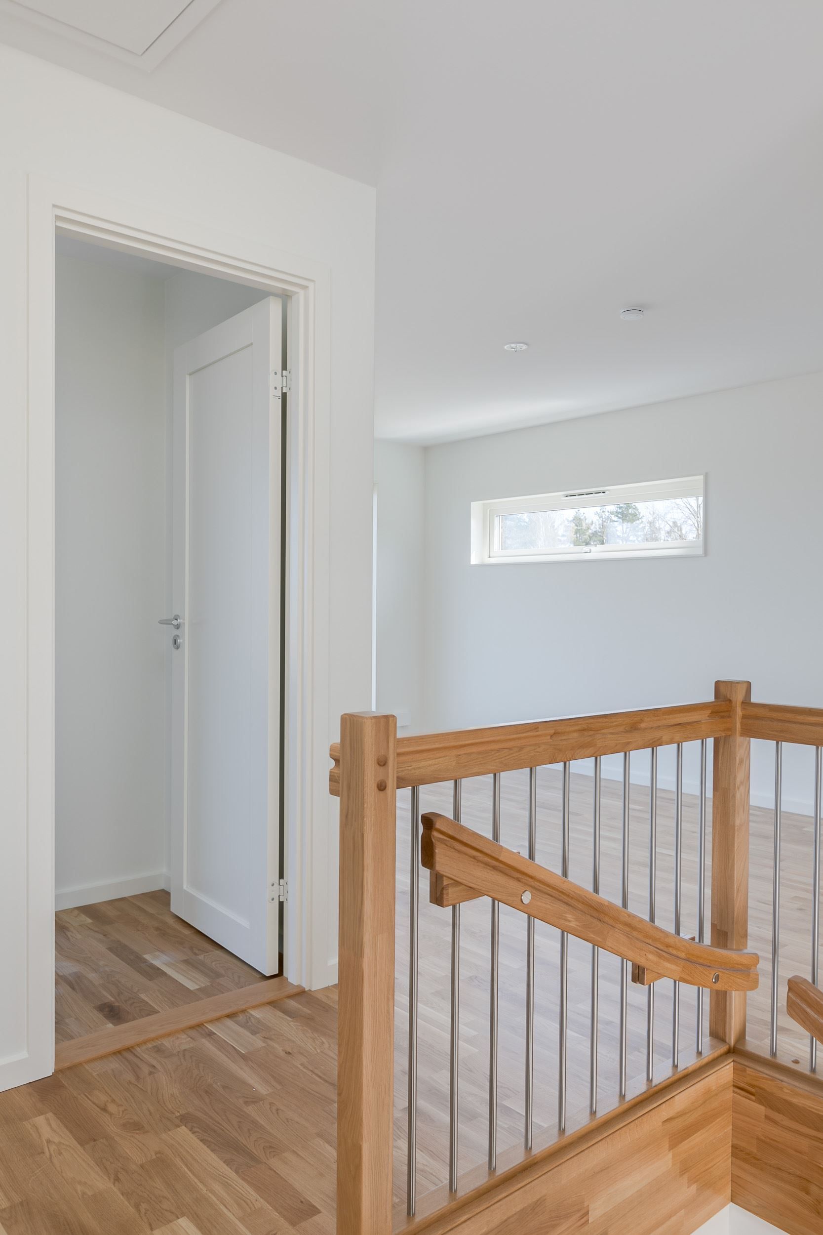 På övre plan finns de mer privata delarna - ett rymligt allrum med härligt ljusinsläpp, tre sovrum och en WC med dusch. De 61,3 kvm skapar en härlig atmosfär och en känsla av rymd. På övervåningen finns också en balkong med utsikt mot havet.
