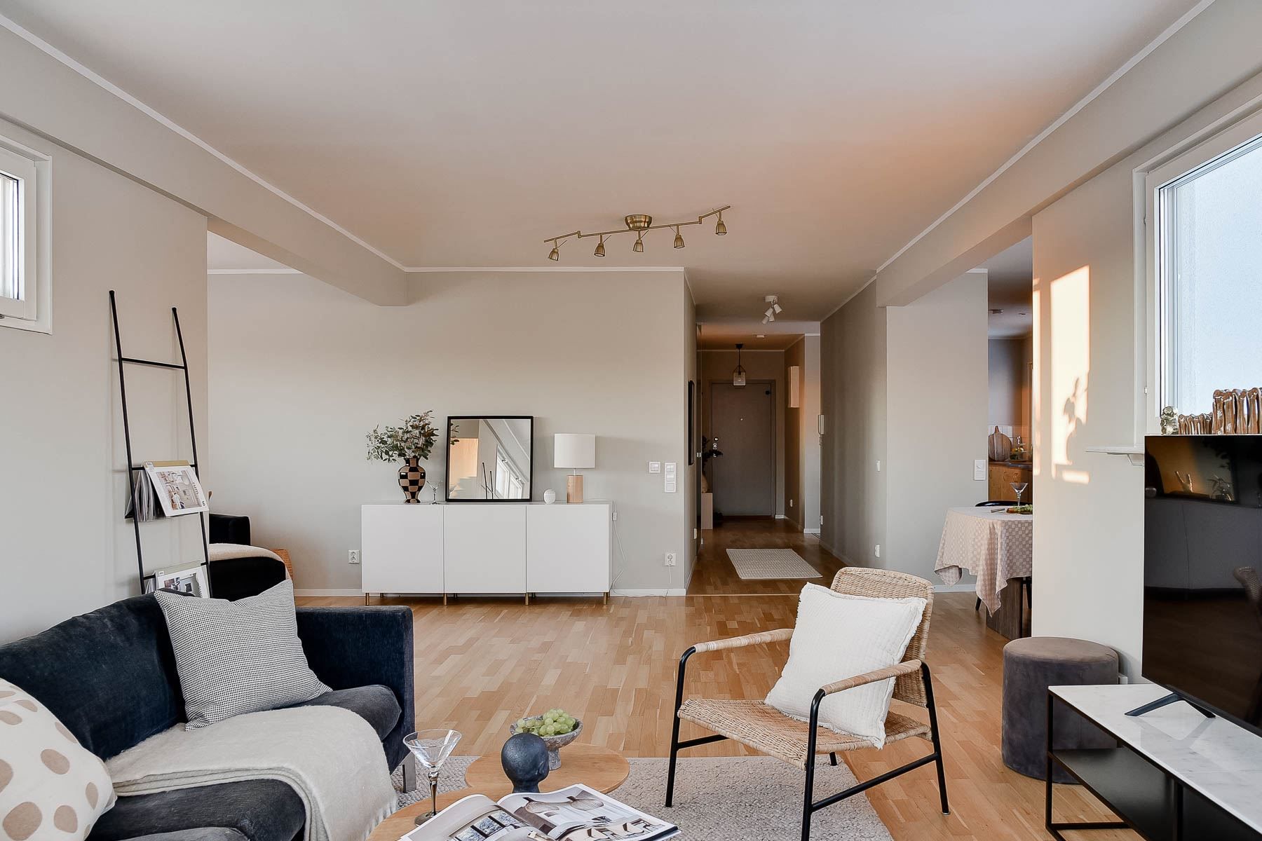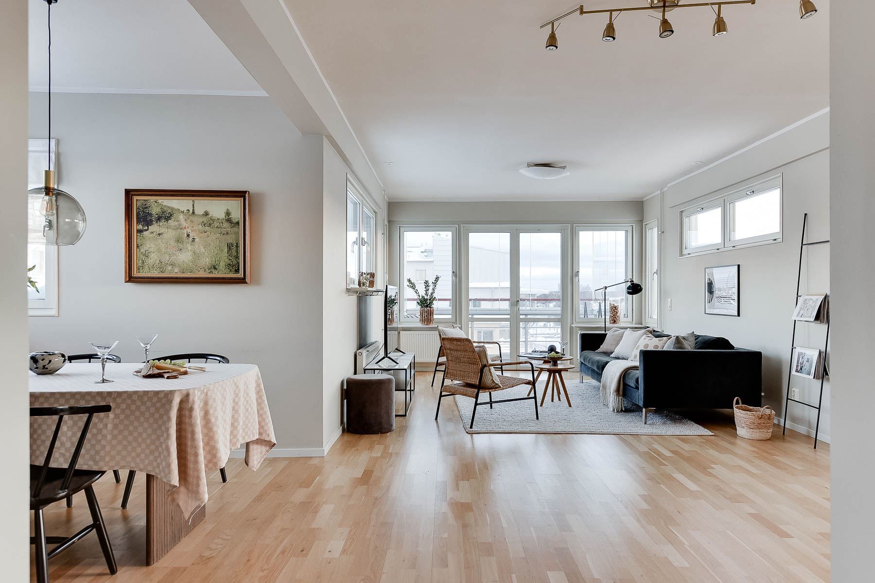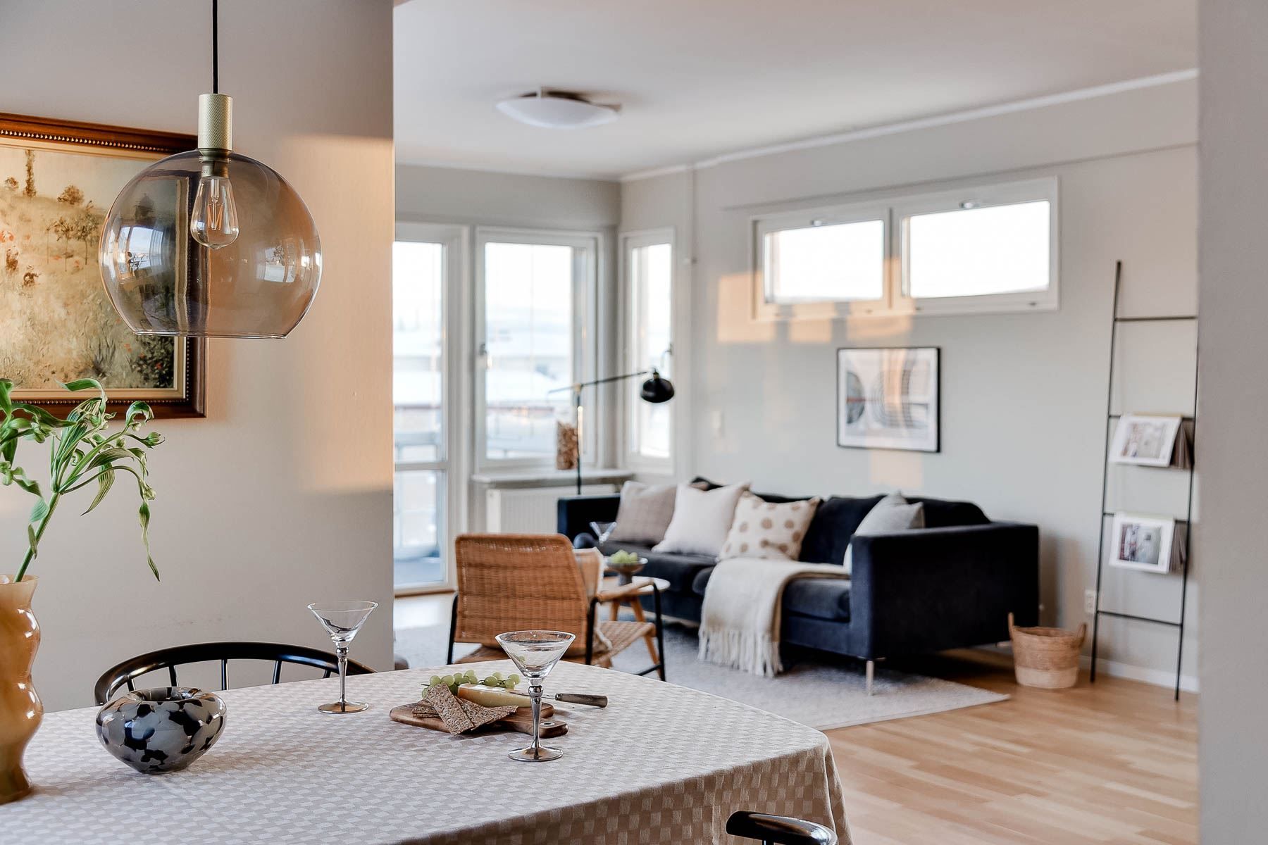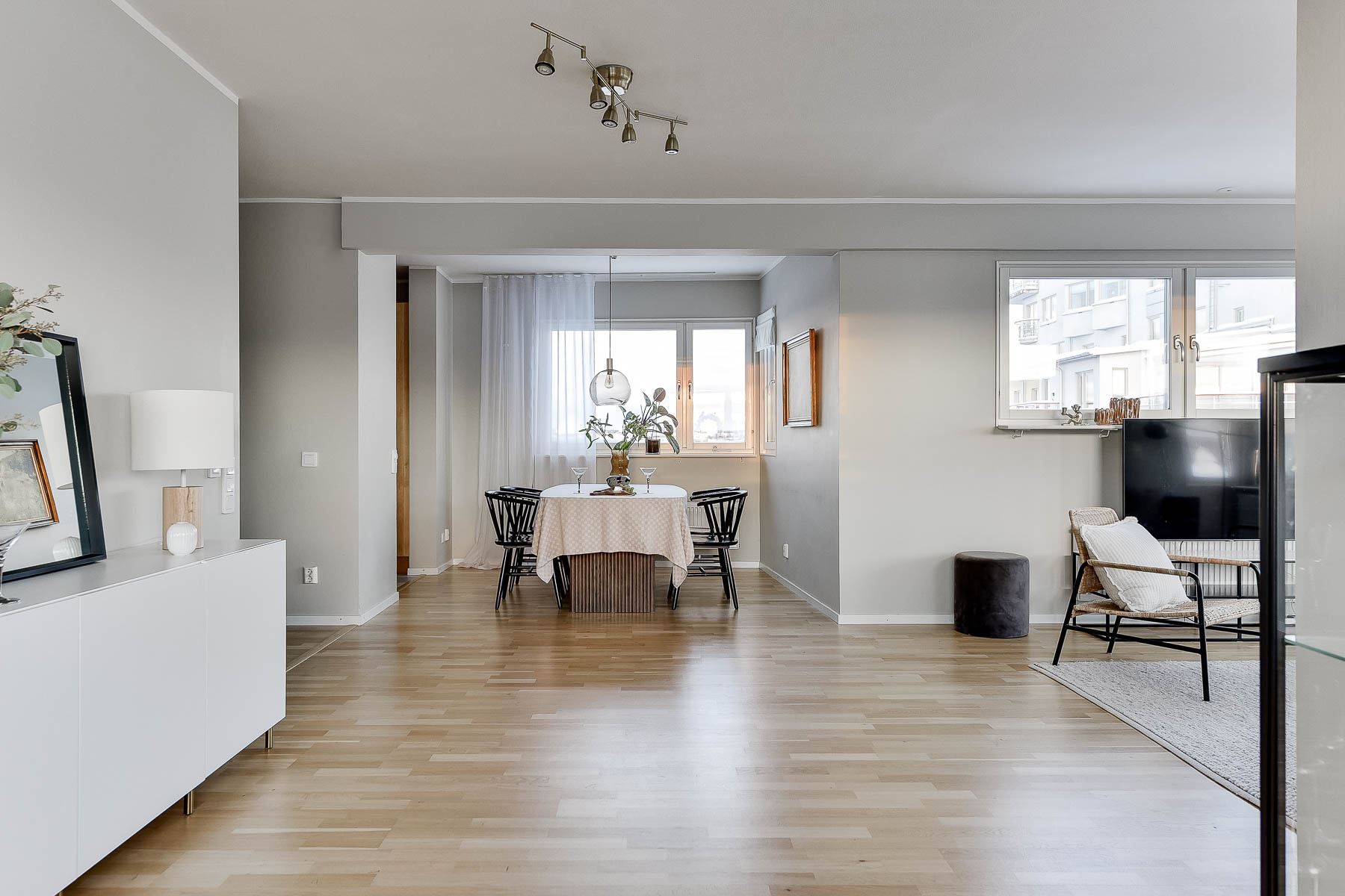 Varmt välkomna till attraktiva Skeppargatan 5 och denna trevliga 4:a om hela 116 kvm med älvsnära läge och inglasad balkong! Lägenheten är belägen näst högst upp i huset och bjuder på sociala ytor med öppen planlösning mellan kök och vardagsrum vilket ger lägenheten ett otroligt ljus och en härlig rymd. Lägenheten har genomgående välbevarade ytskikt med ett parkettgolv som ligger genomgående i största delen av lägenhetens alla rum samt målade väggar i moderna färgsättningar. Här finns tre sovrum, ett helkaklat duschrum med tvättavdelning och med golvvärme och ett fullt utrustat kök med alla bekvämligheter. Härlig inglasad balkong som är belägen i sydost med sol från tidig morgon till efter lunch. Här bor du i en mycket välskött och stabil förening och fastighet med direkt närhet till älven där även brygga för båtplats finns.