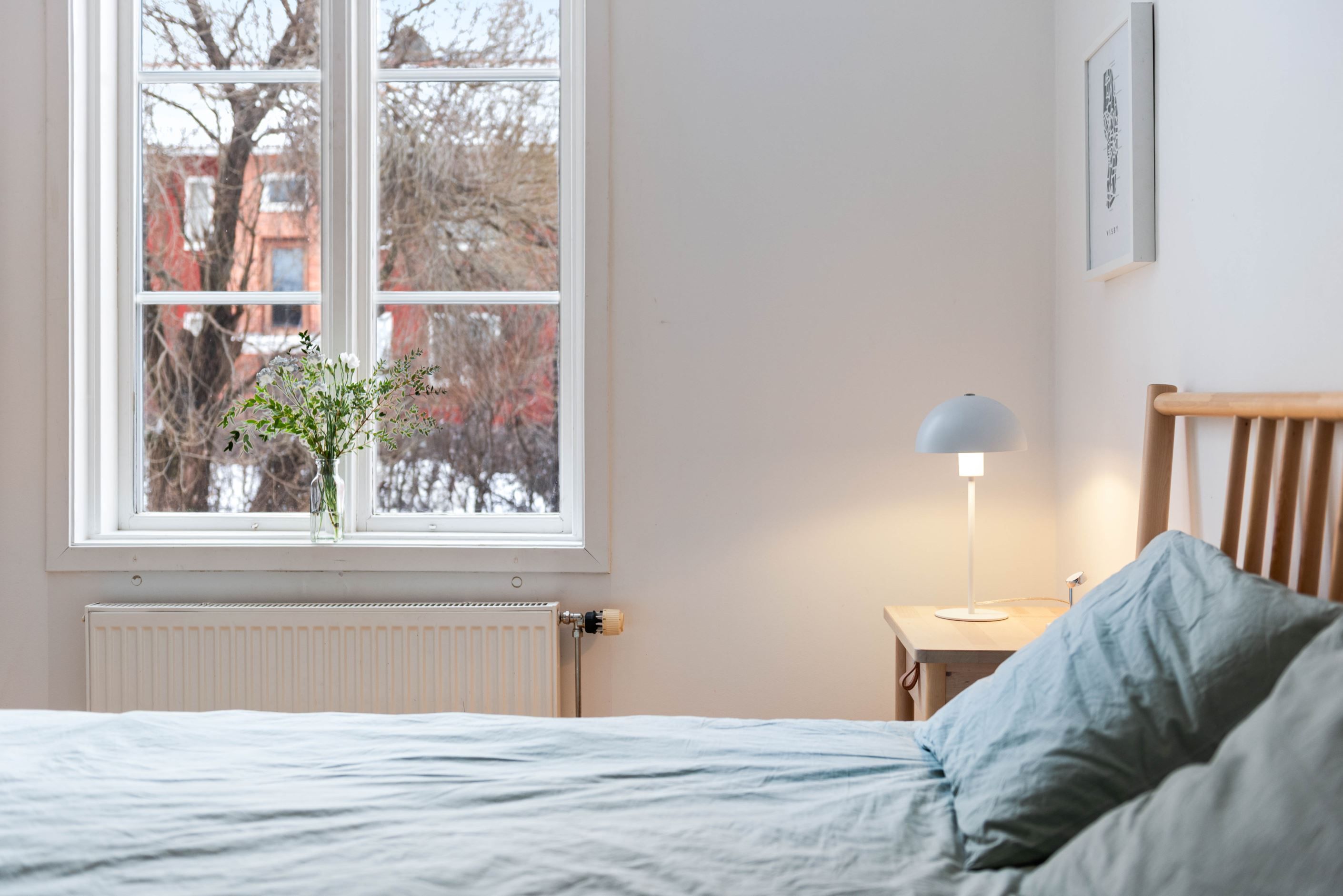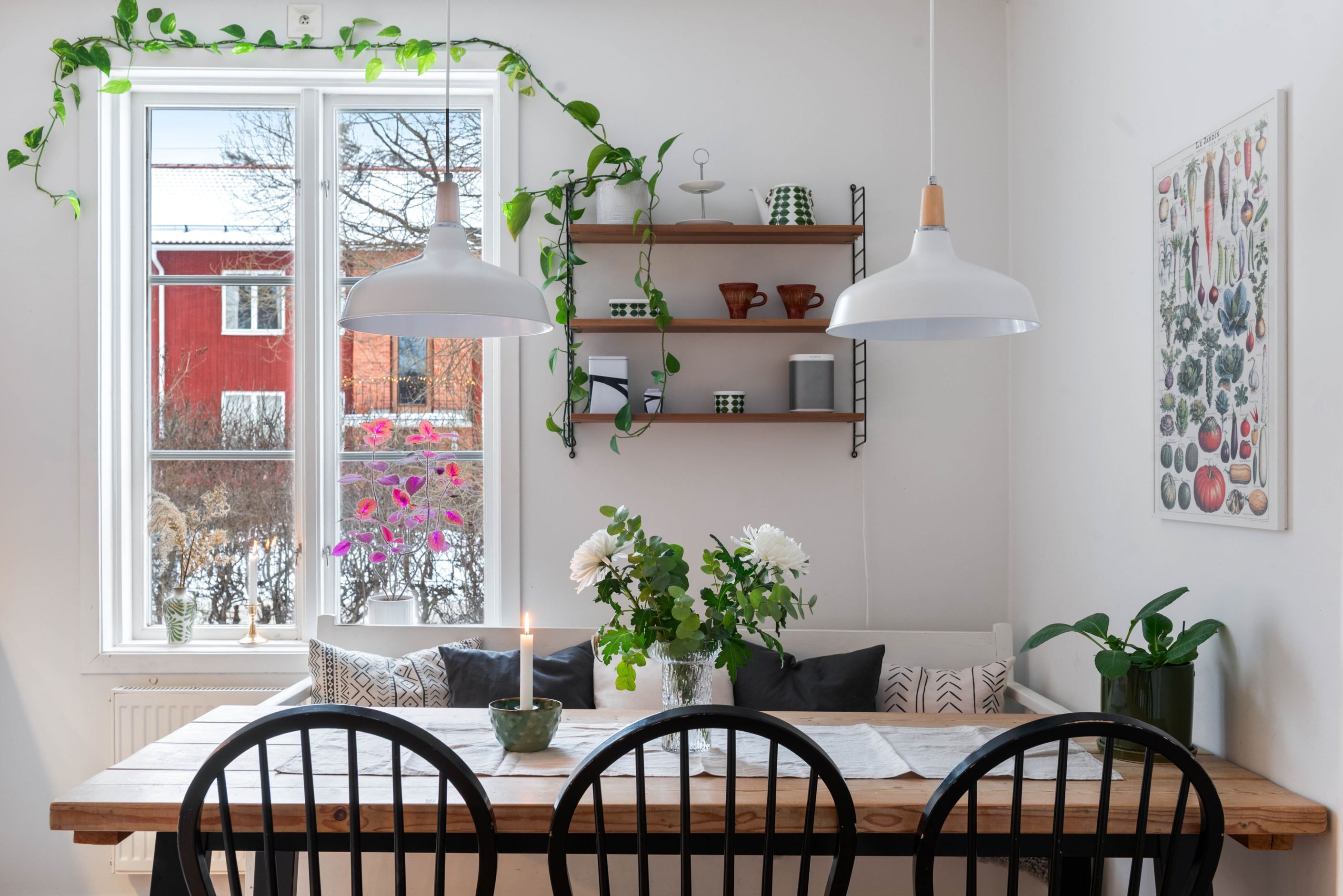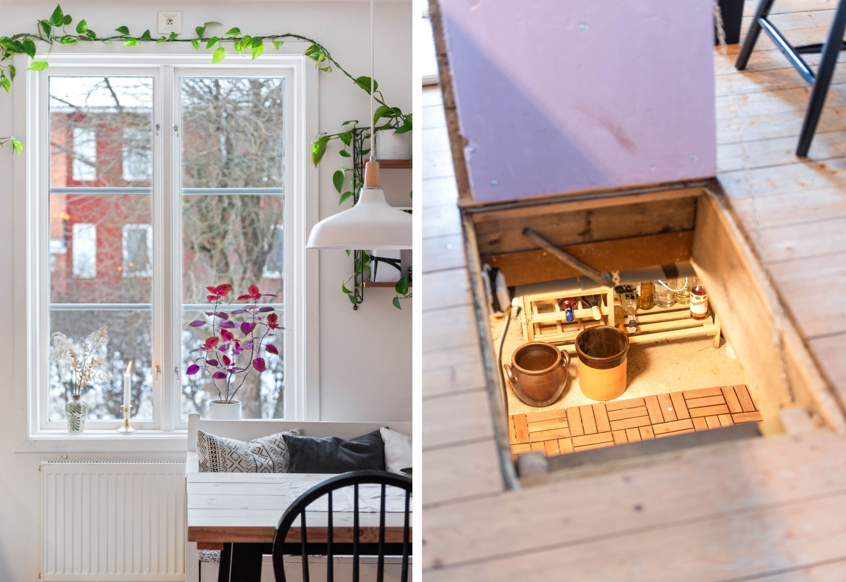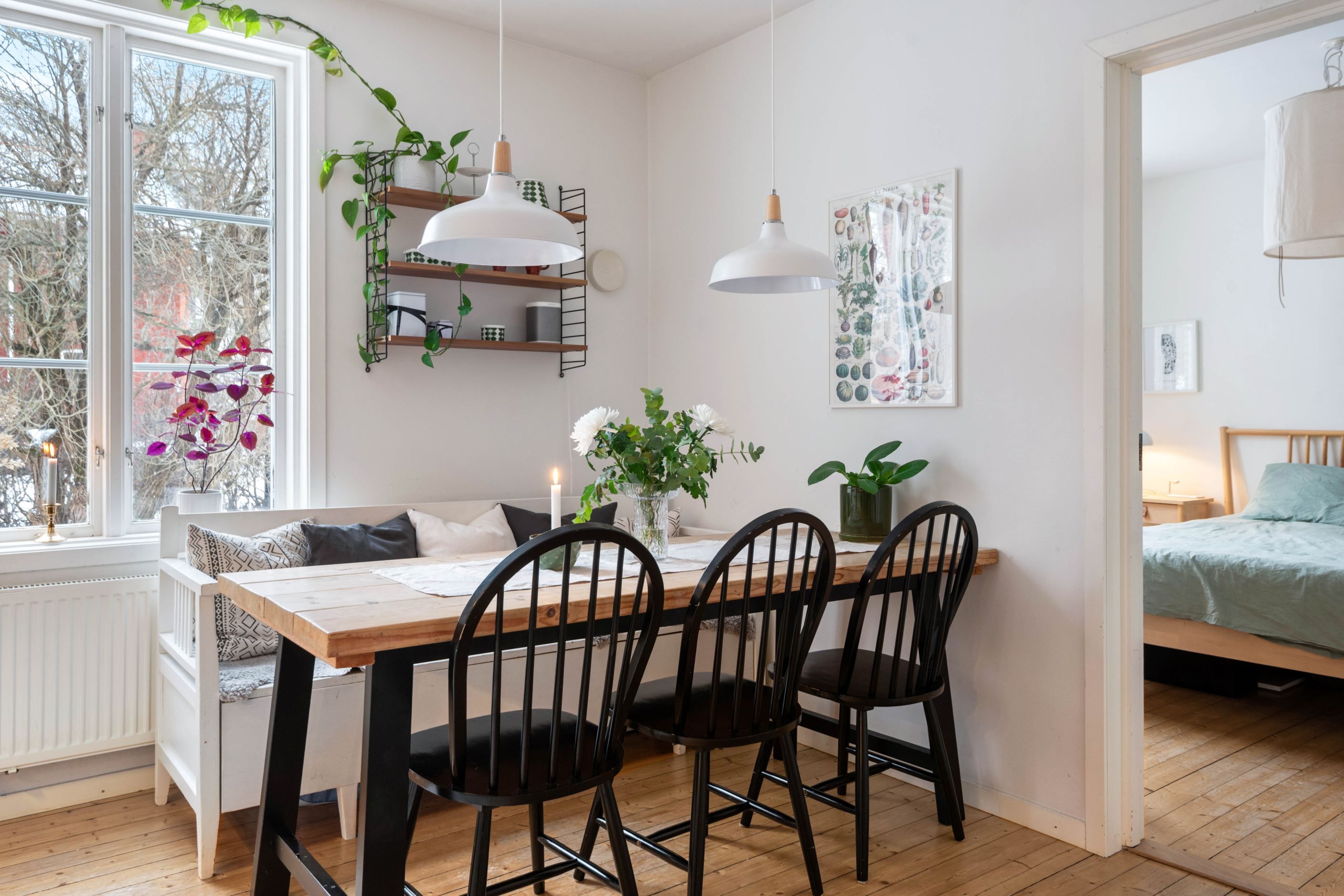 Genomgående plankgolv i hela lägenheten, spröjsade fönster samt tidstypiska detaljer.
