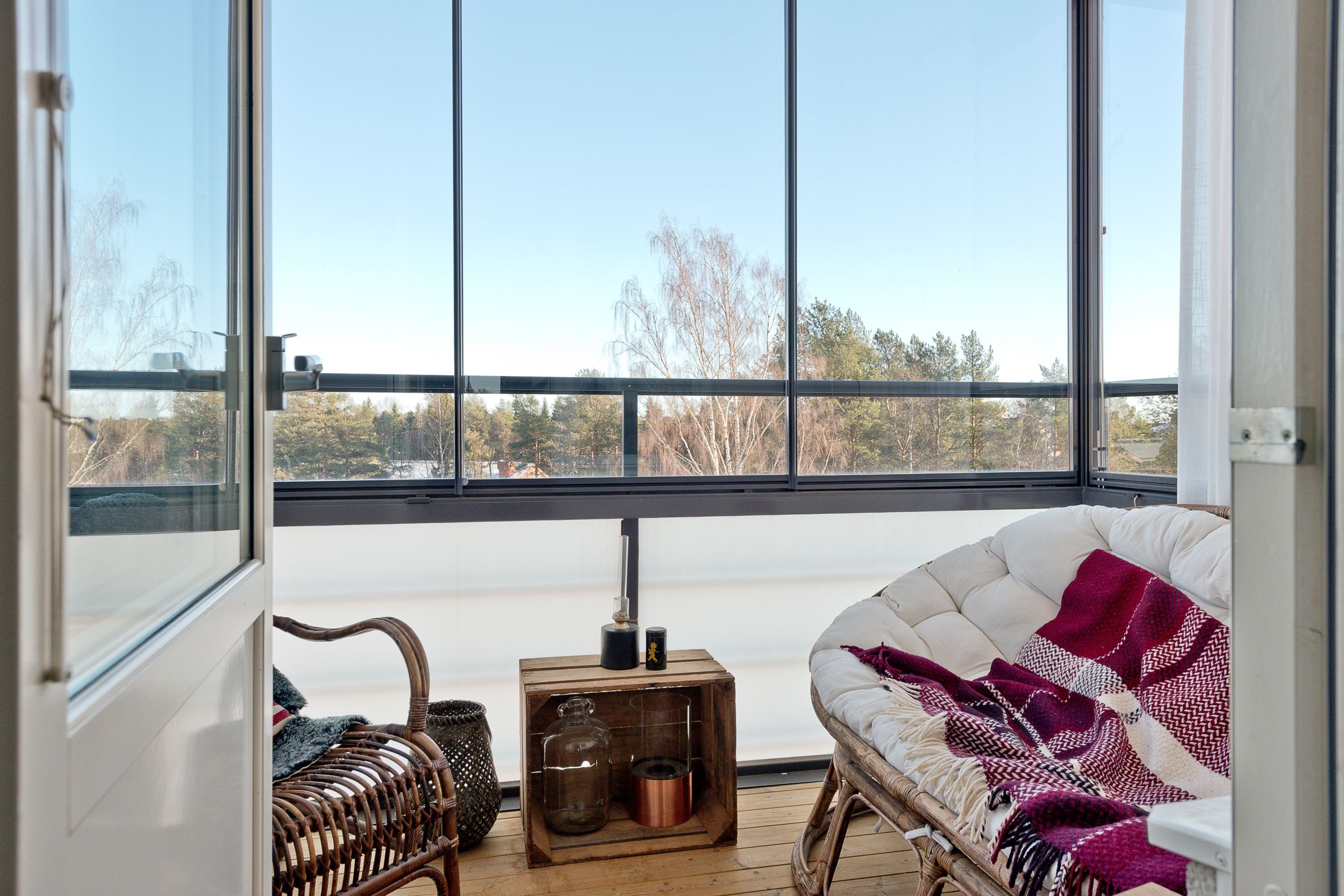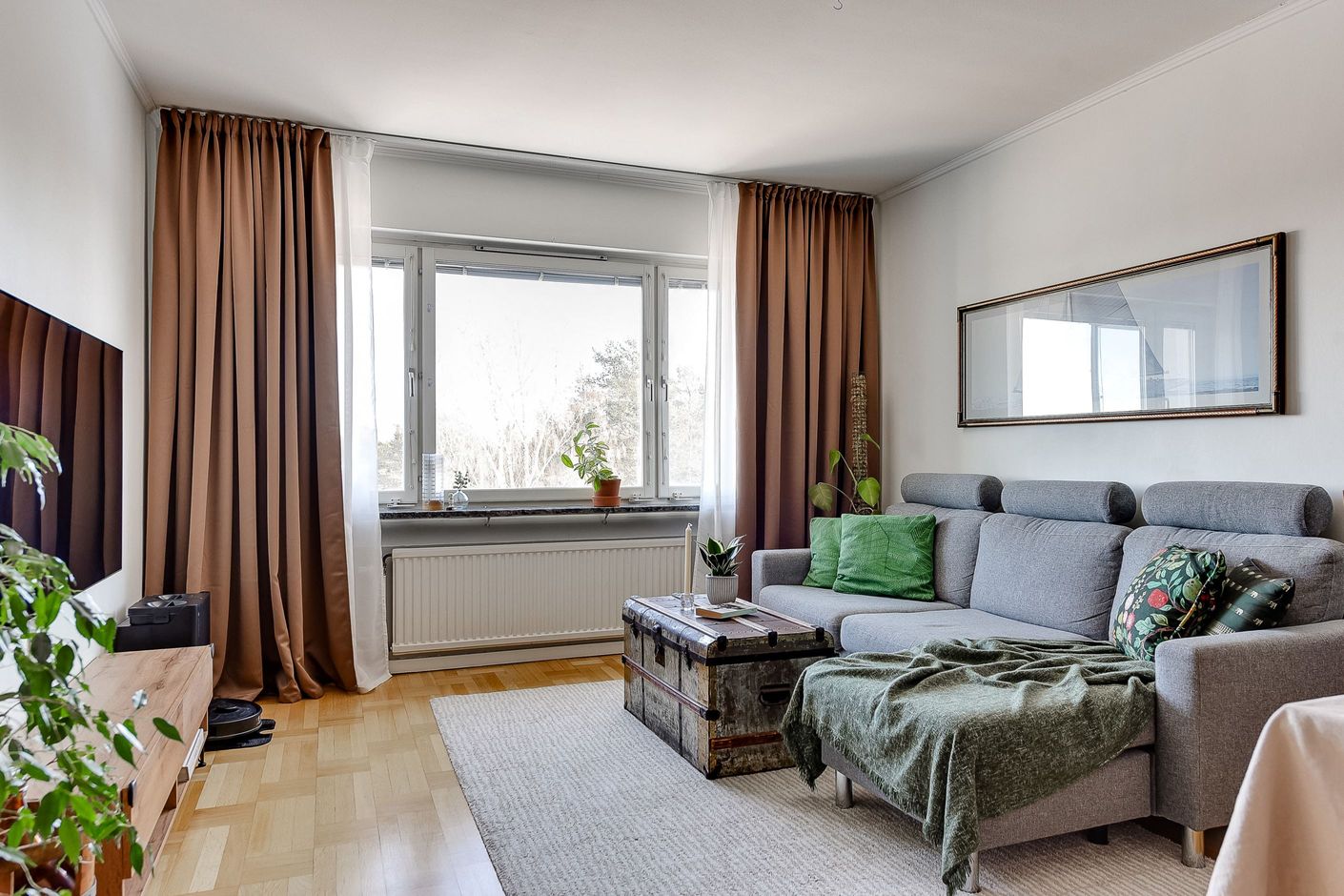 Bostaden omfattar 69 välplanerade kvadratmeter med en genomtänkt disposition. Två rymliga sovrum ger flexibilitet för familj, arbete eller gäster. Från det ena sovrummet nås den inglasade balkongen – en skyddad plats med fri vy där du kan följa årstidernas skiftningar från första parkett. Vardagsrummet är luftigt och lättmöblerat, med stora fönsterpartier som släpper in rikligt med ljus och förstärker känslan av rymd. Köket har en naturlig matplats och bra arbetsytor, och det helkaklade badrummet med komfortabel golvvärme ger ett stilrent och praktiskt intryck.