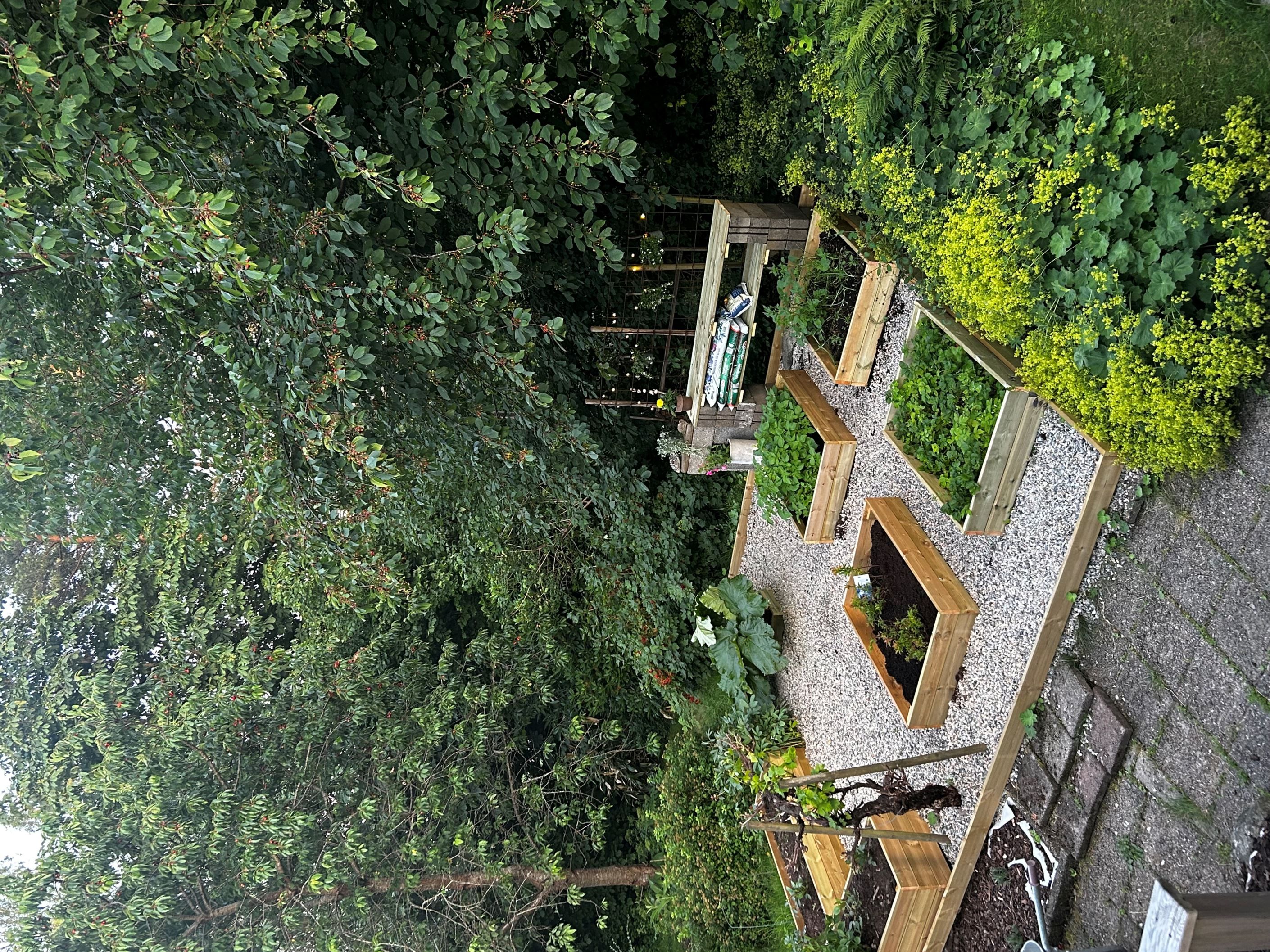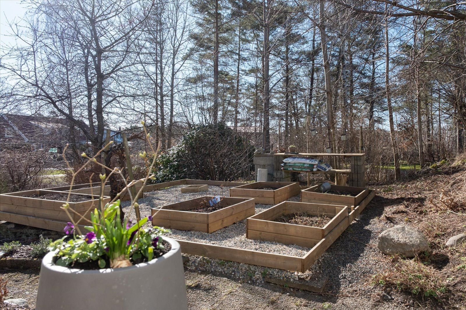 Redan vid första steget in möts du av en generös och trivsam trädgård med fantastiska odlingsmöjligheter. Flera odlingslådor finns redan på plats och ett praktiskt trädgårdsskjul ger gott om förvaring för redskap och projekt. Här finns generösa ytor för lek, umgänge och aktiviteter året runt.