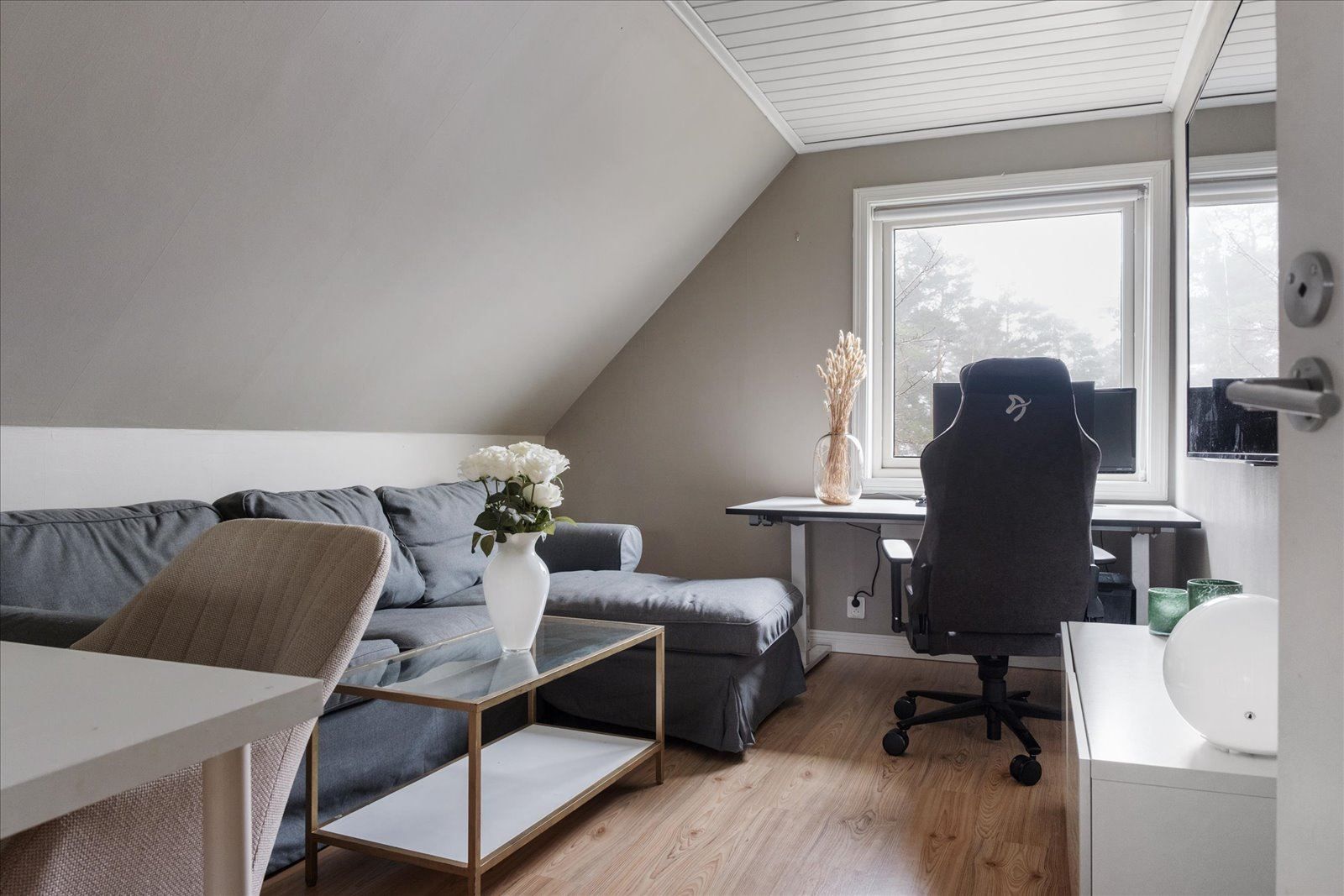 Bostaden rymmer tre sovrum, varav ett med flera inbyggda garderober, samt ett separat kontor – perfekt för hemarbete eller studier. Förvaringsmöjligheterna är mycket goda med två entréer som förenklar familjens vardag, klädkammare i anslutning till vardagsrummet samt flera genomtänkta lösningar.