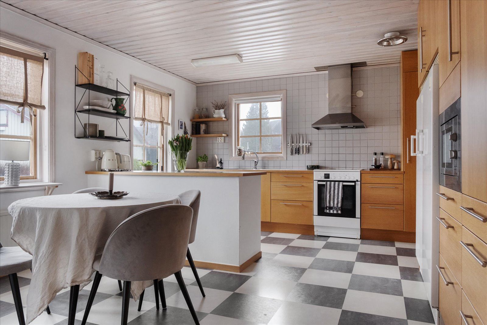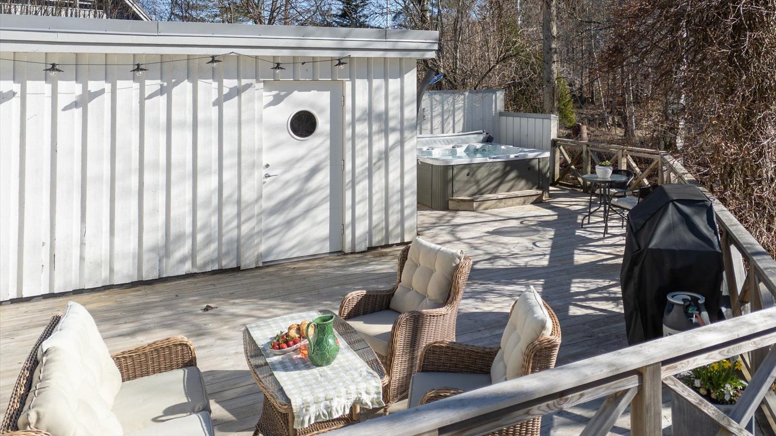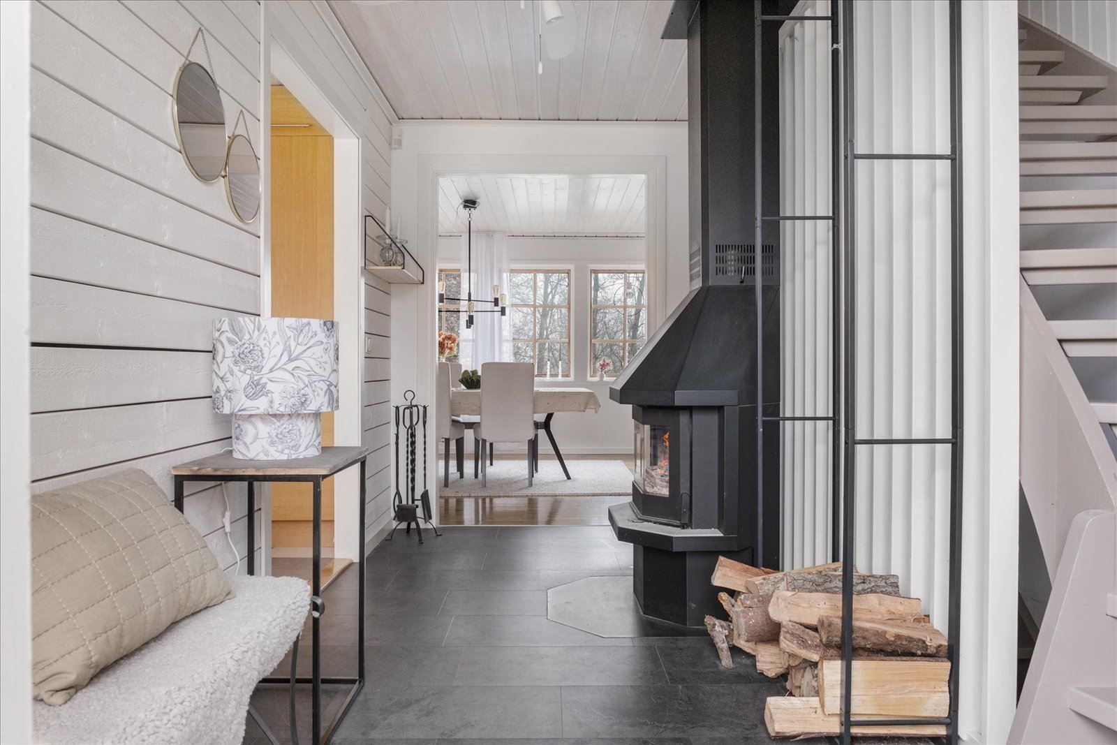 Invändigt erbjuds ett rymligt kök med stor matplats – hemmets självklara samlingspunkt. Den inbjudande matsalen bjuder in till både vardagsmys och festligare tillfällen, och härifrån nås den generösa altanen som förlänger de sociala ytorna under årets varmare månader.