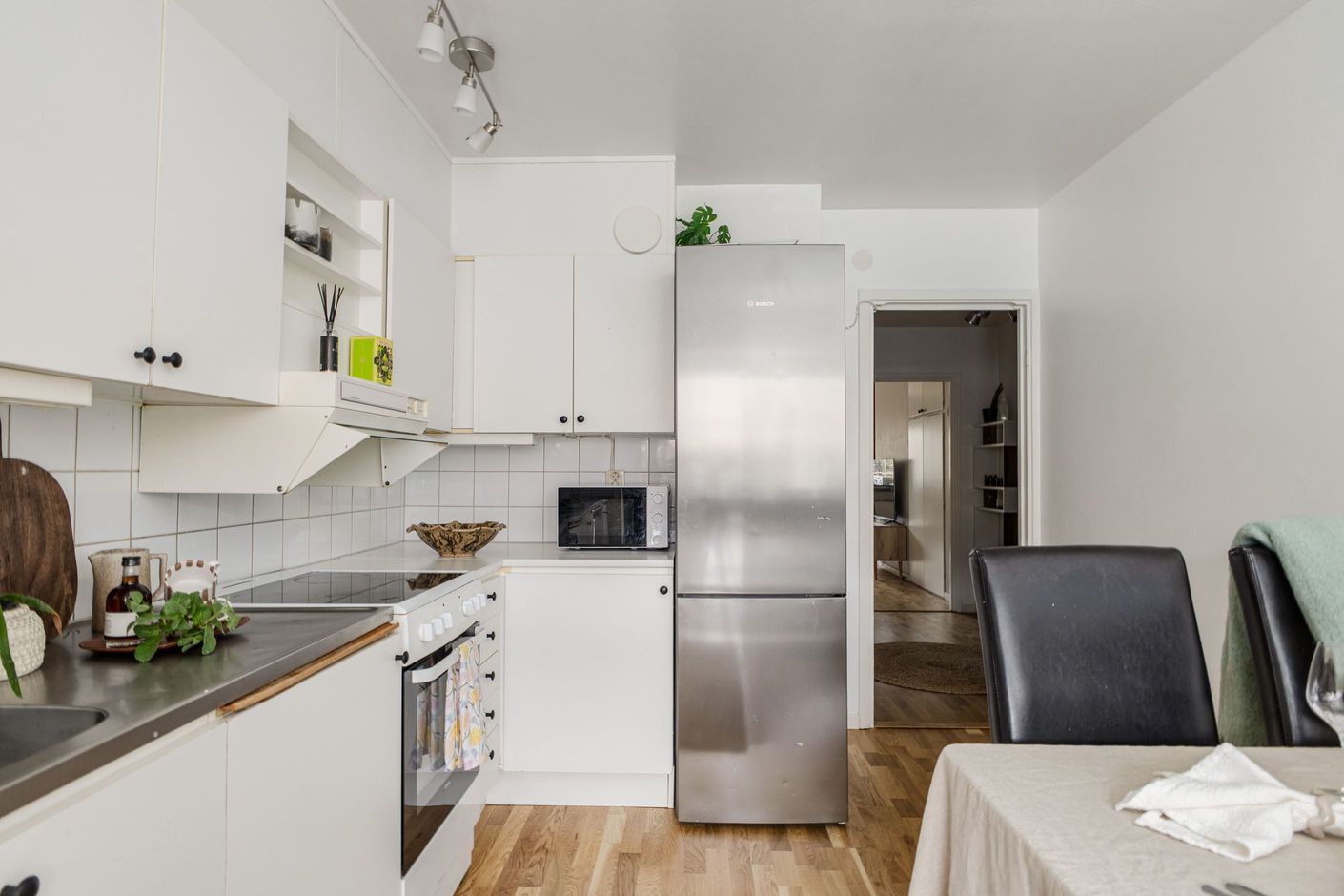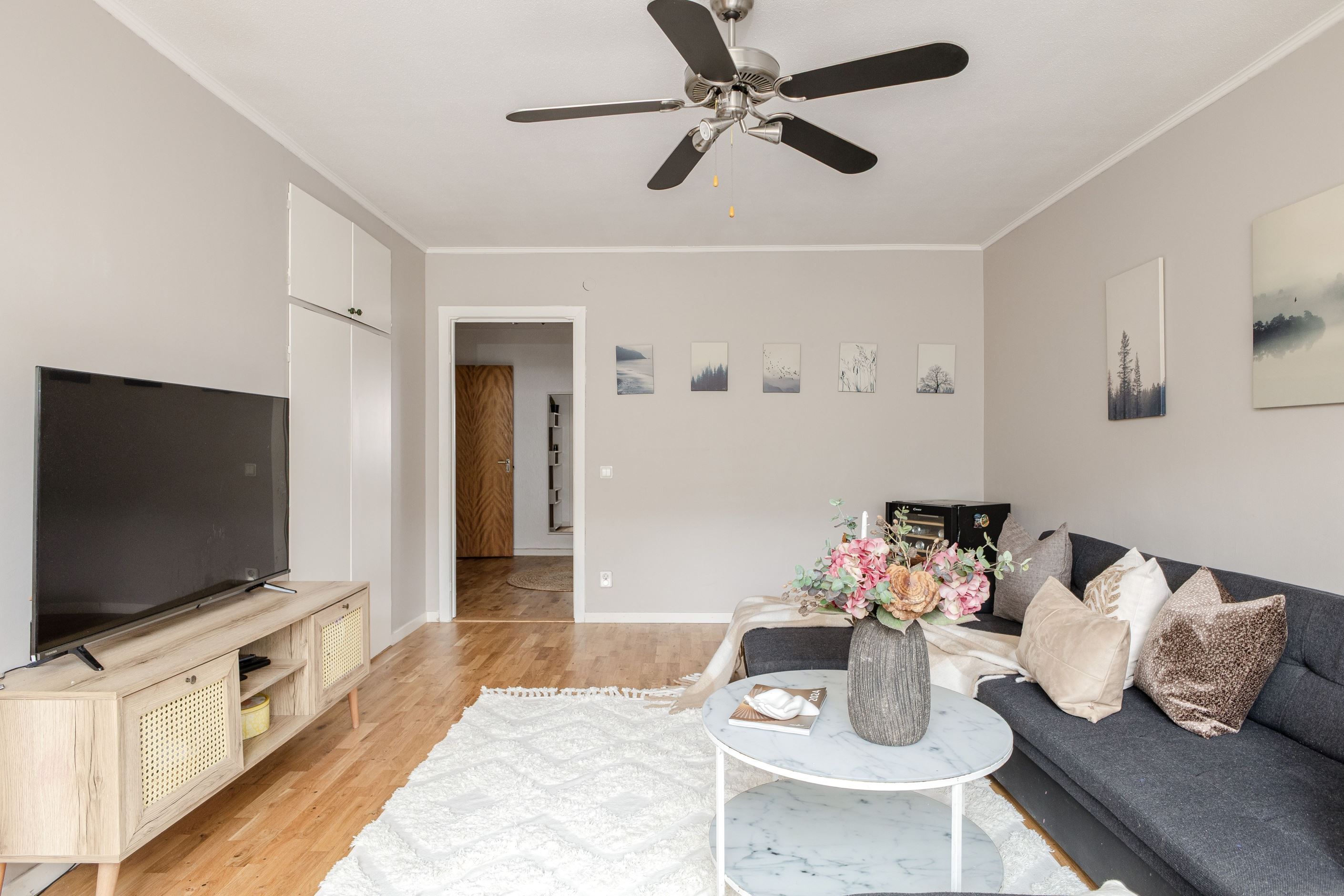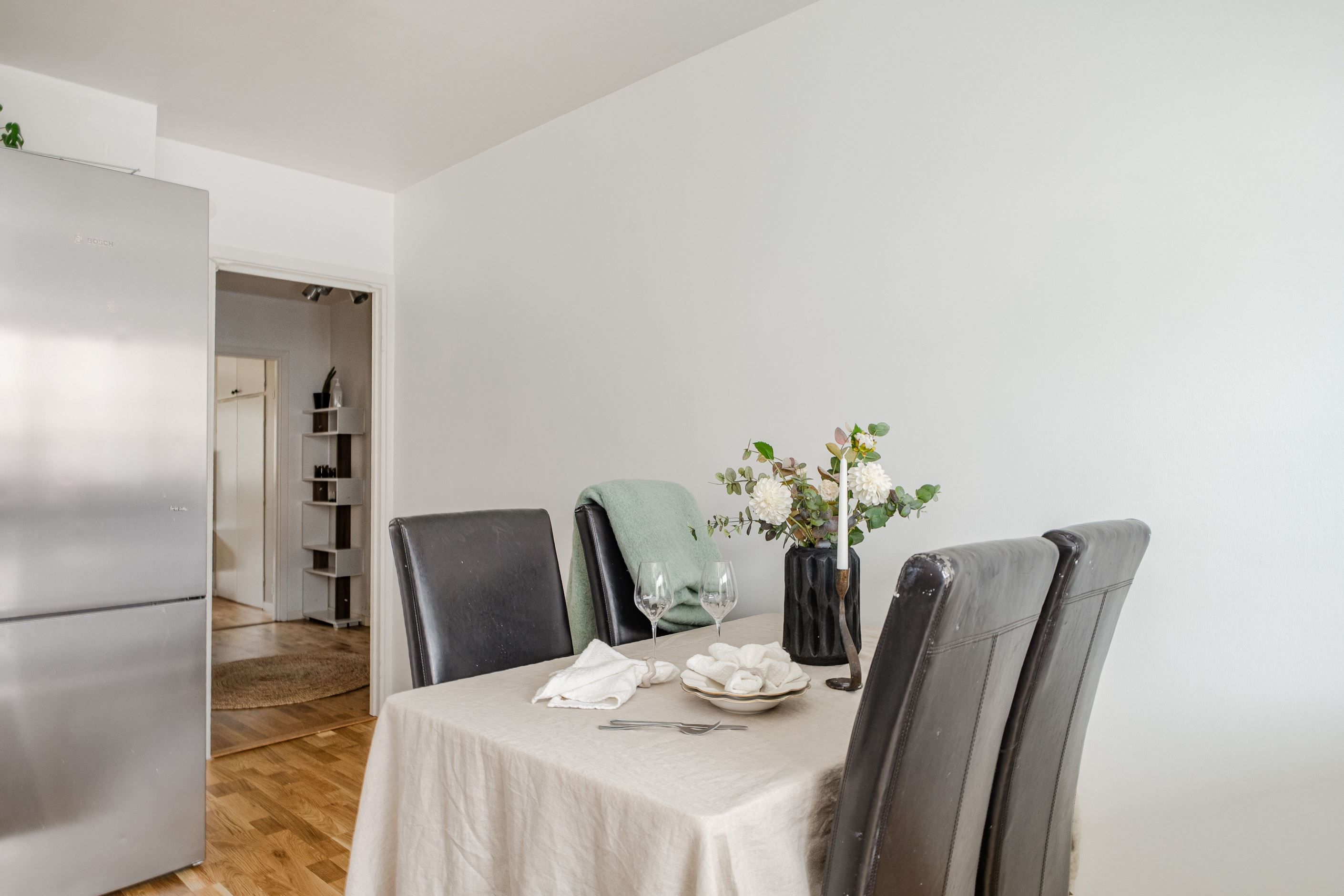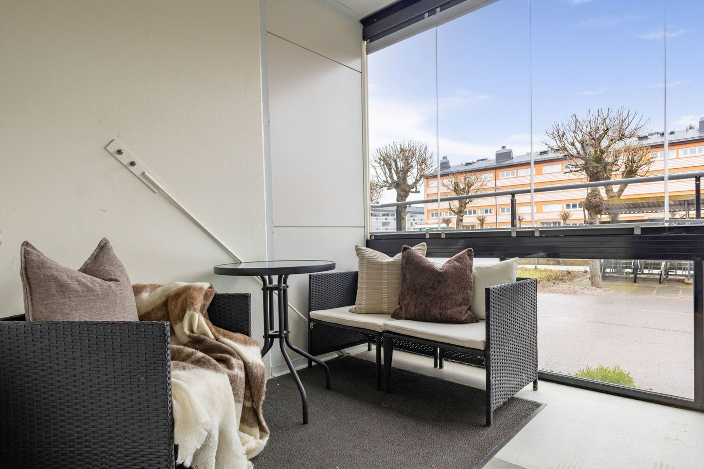 Redan när du kliver in möts du av en rymlig hall med goda förvaringsmöjligheter genom flera platsbyggda garderober. Vidare in i bostaden öppnar det lättmöblerade vardagsrummet upp sig som blir en social och inbjudande yta med plats för både soffgrupp och önskat möblemang efter dina behov. Köket är smart planerat med gott om arbetsyta och förvaring, samt en naturlig plats för matgrupp där du kan samla familj och vänner till både vardagsmiddagar och helgfrukostar. Härifrån nås den generösa inglasade balkongen i soligt söderläge, där du kan njuta av många härliga soltimmar. Vidare finner du det rofyllda sovrummet som med enkelhet rymmer en dubbelsäng. Badrummet är stilrent helkaklat och utrustat med tvättmaskin - en bekvämlighet som förenklar vardagen.