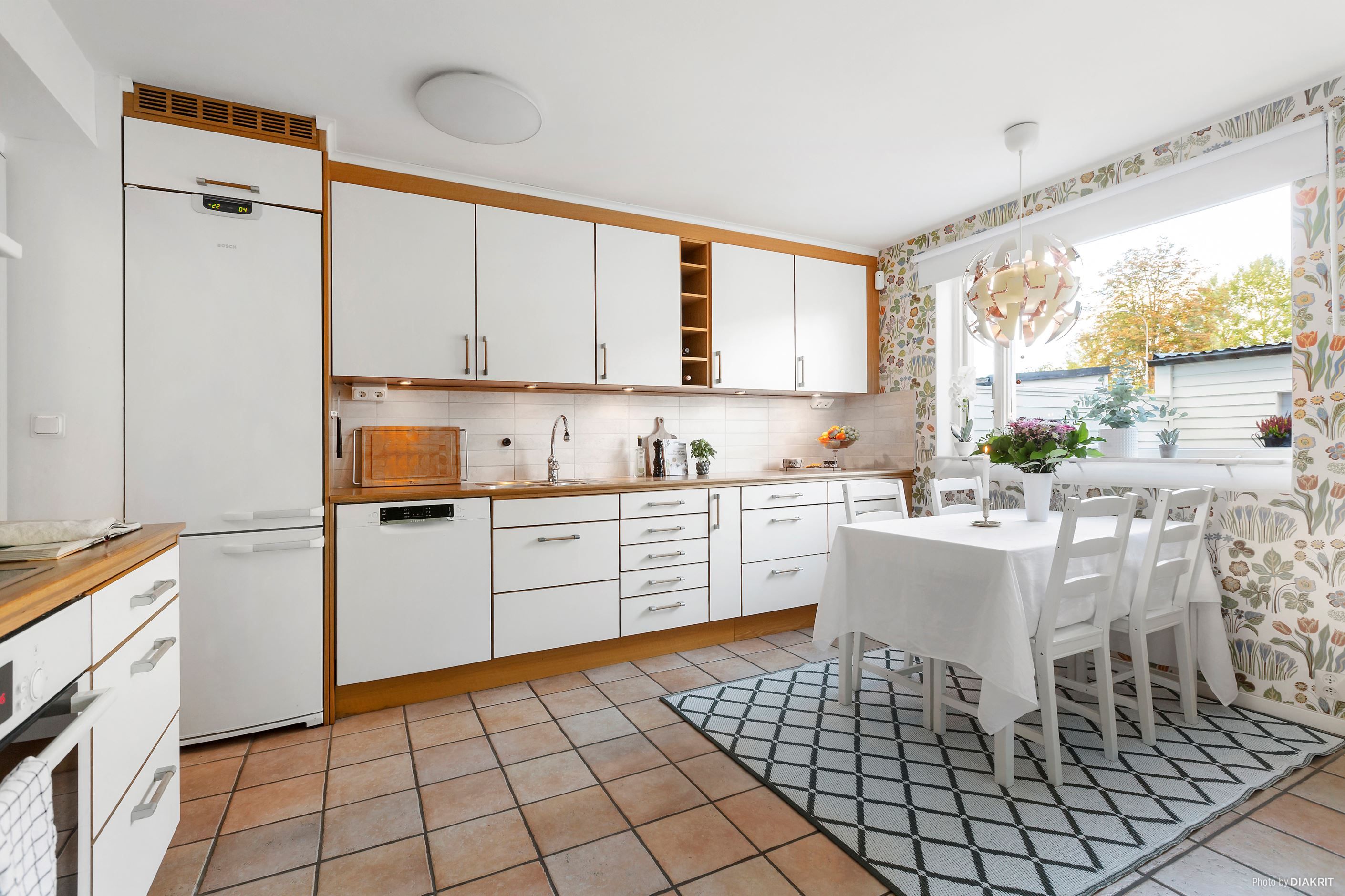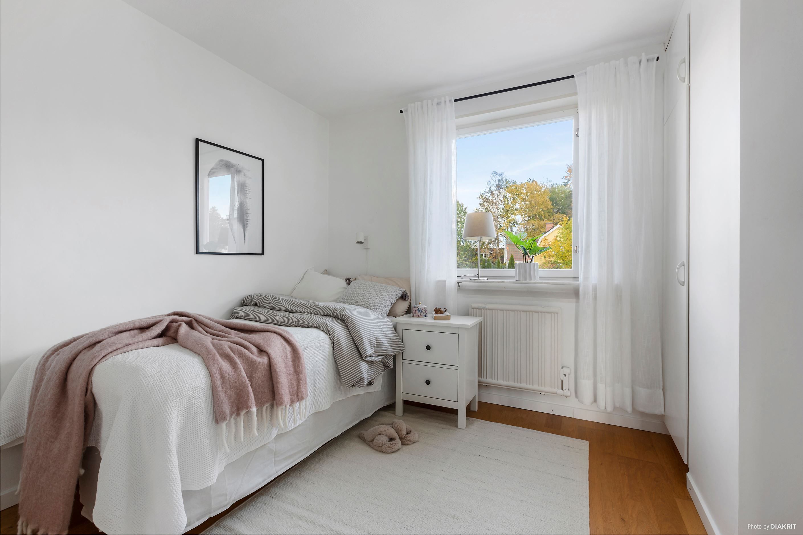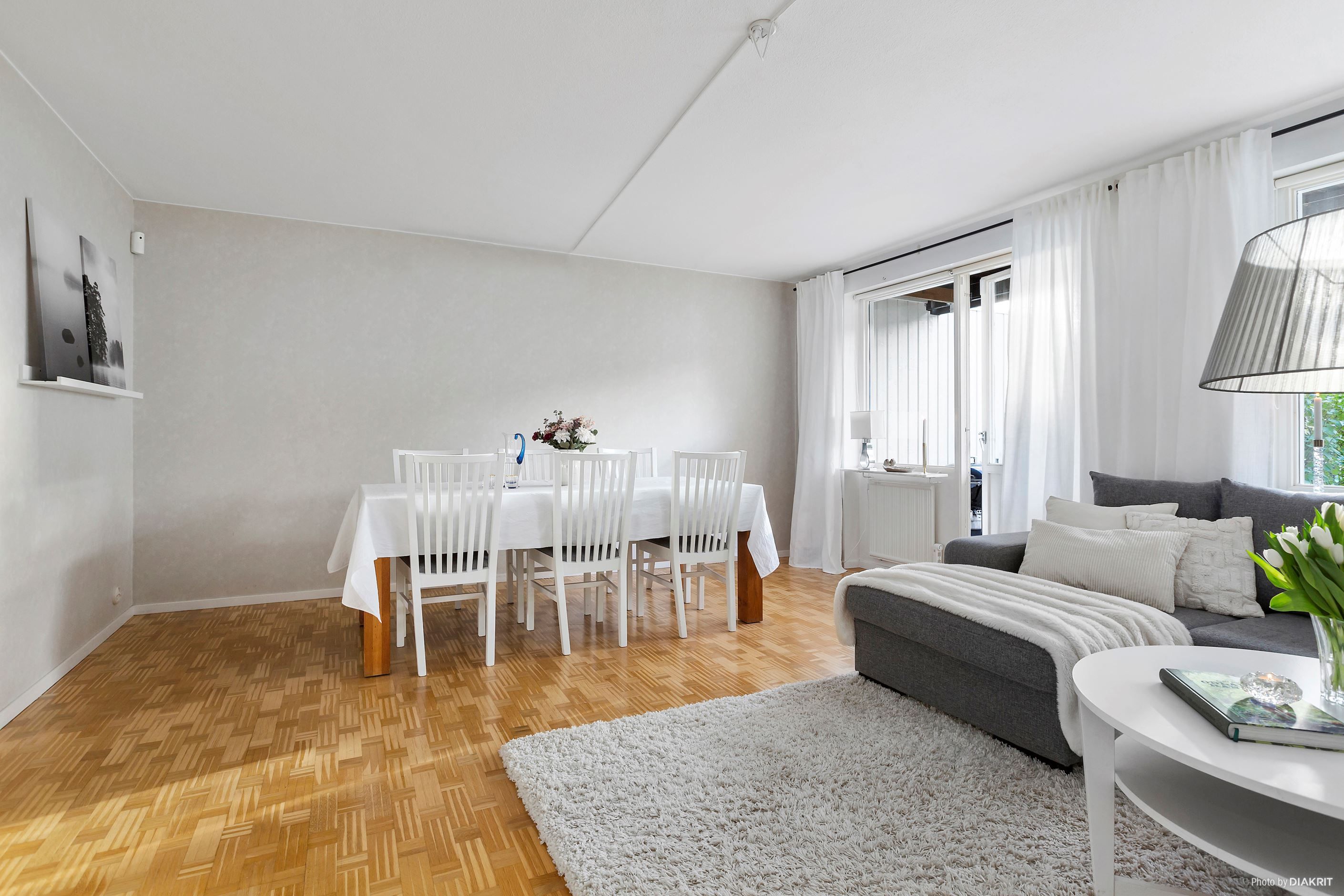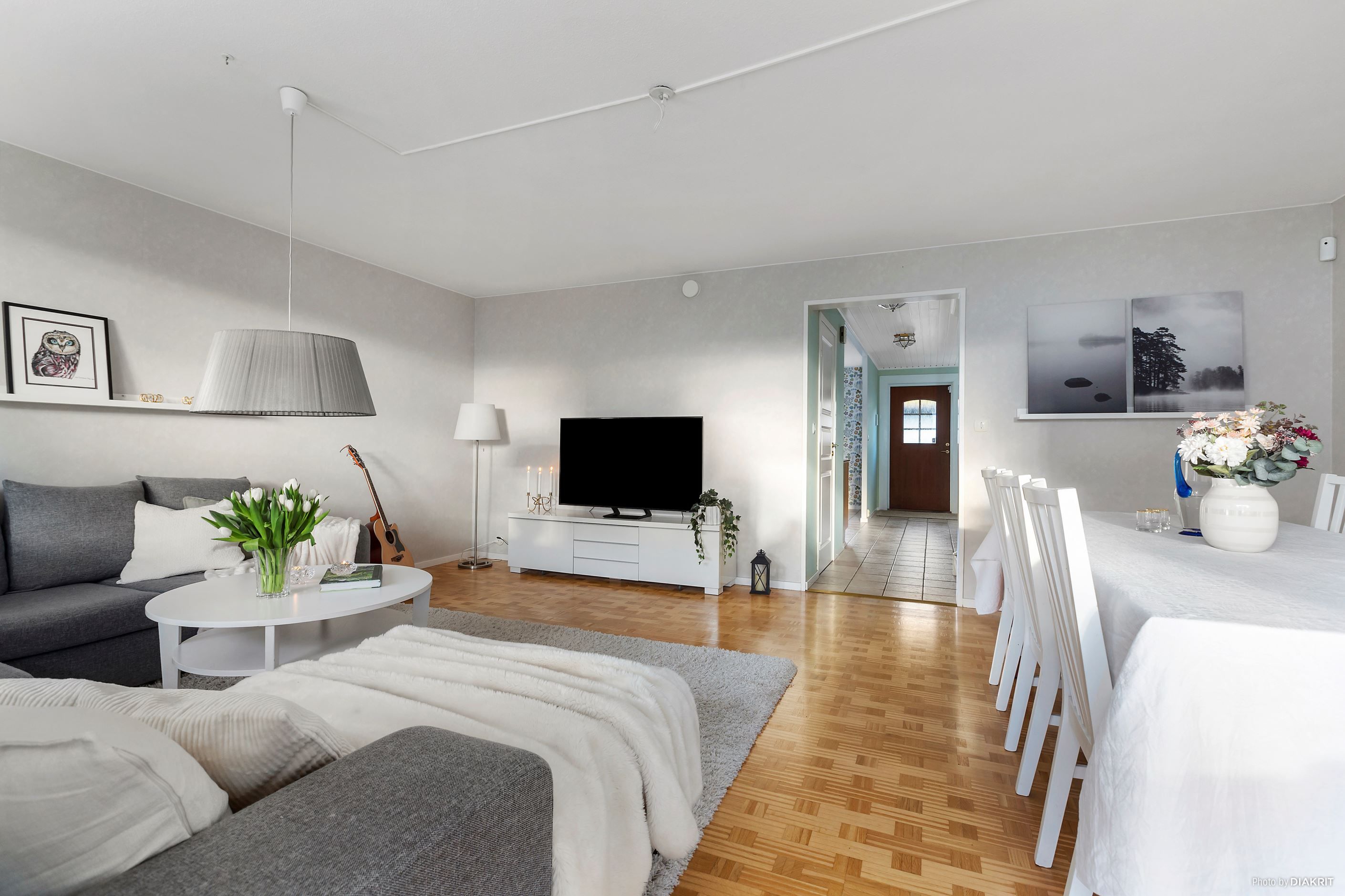 Fint och mycket välskött 2-plansradhus i populära Fågelsången. Bostaden är på 124 kvm fördelat på 5 rok varav 4 sovrum. Genomgående fina ekparkett och klinkergolv. Renoverat kök år 2007. Renoverat badrum år 2014. Garageplats i länga med elektrisk port. Lugnt barnvänligt område nära dagis, buss och lekplatser.