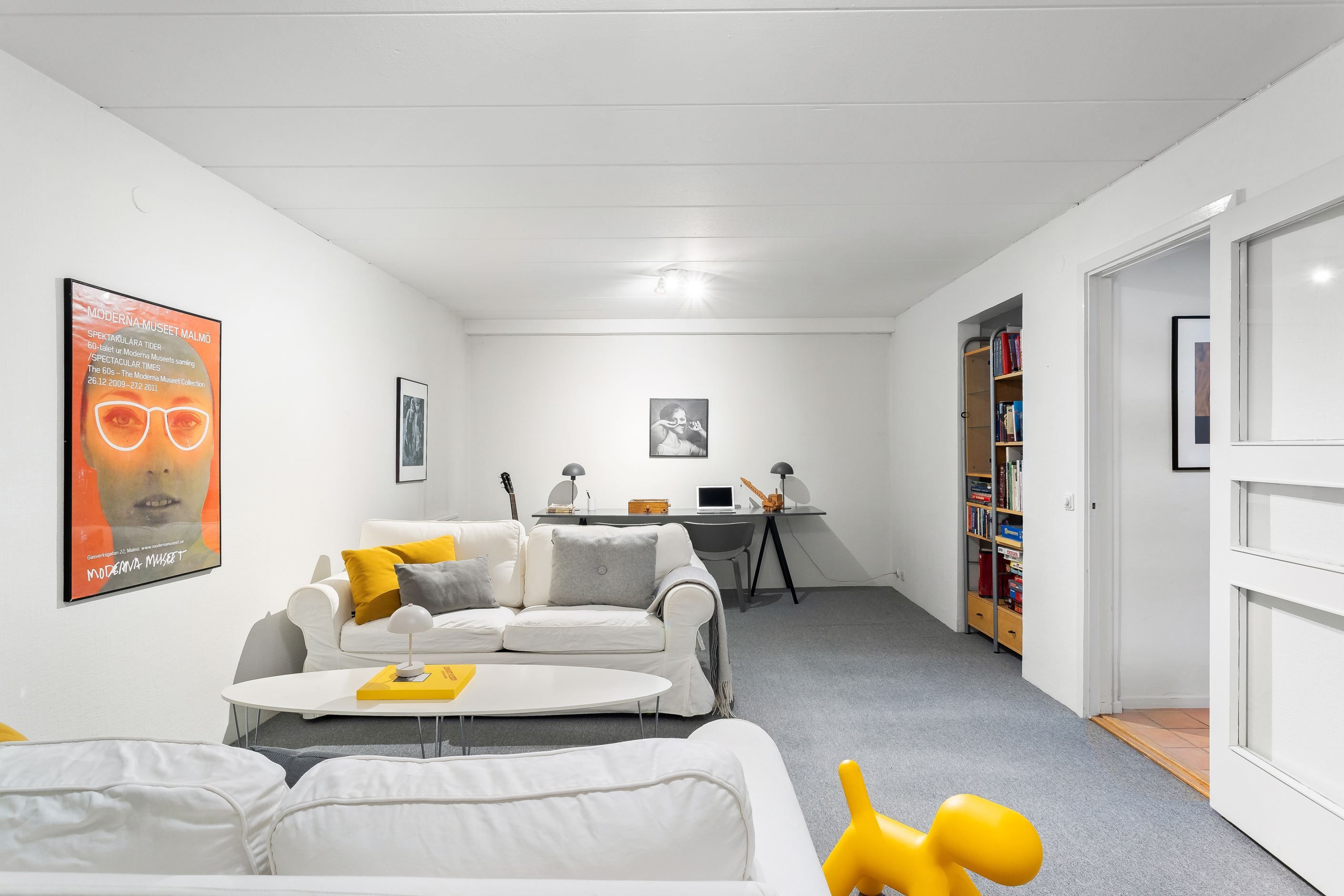 Tonårsrum, tänkbart femte sovrum, i källarplan