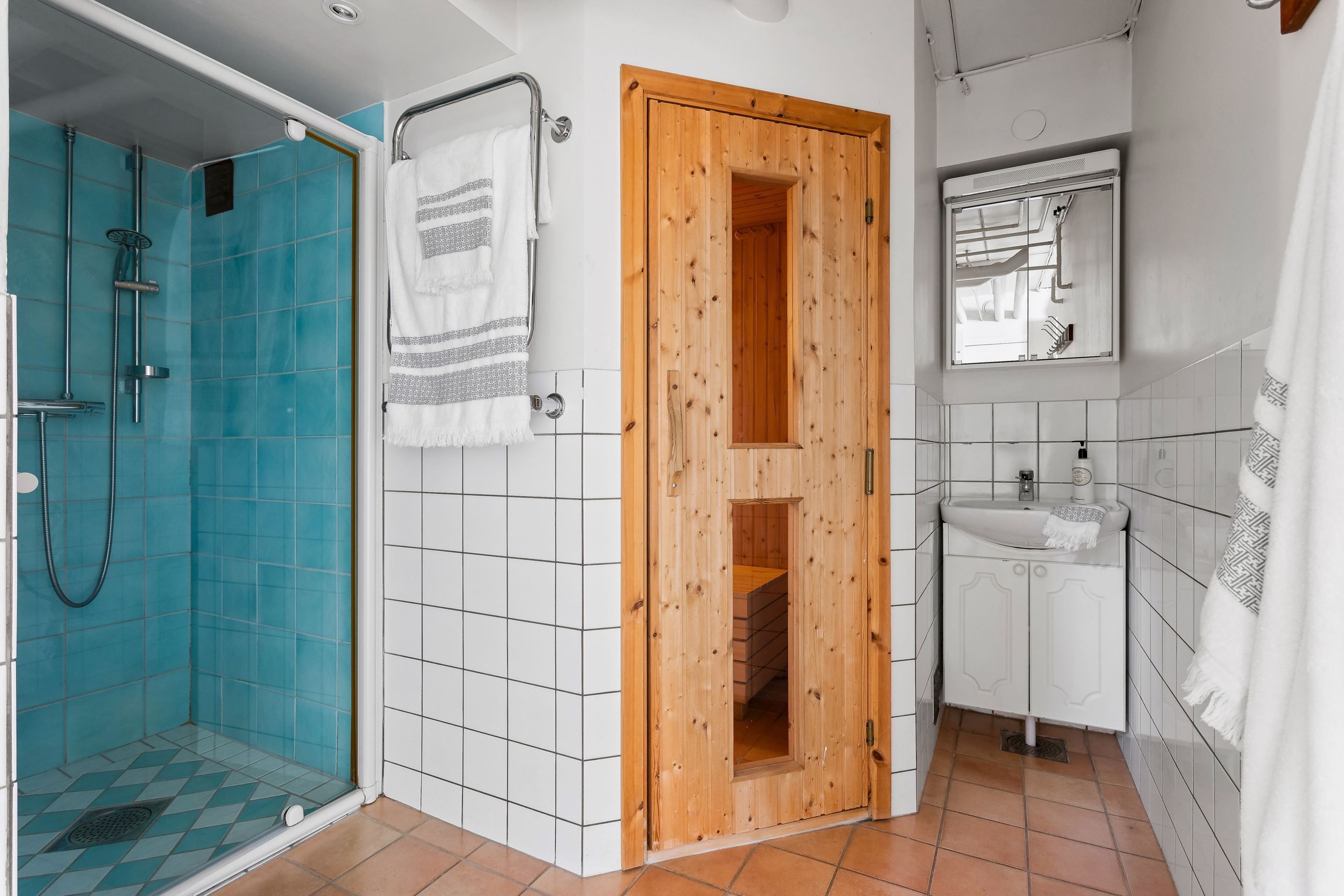 DUSCHRUM/BASTU - Generös bastu samt dusch och handfat.