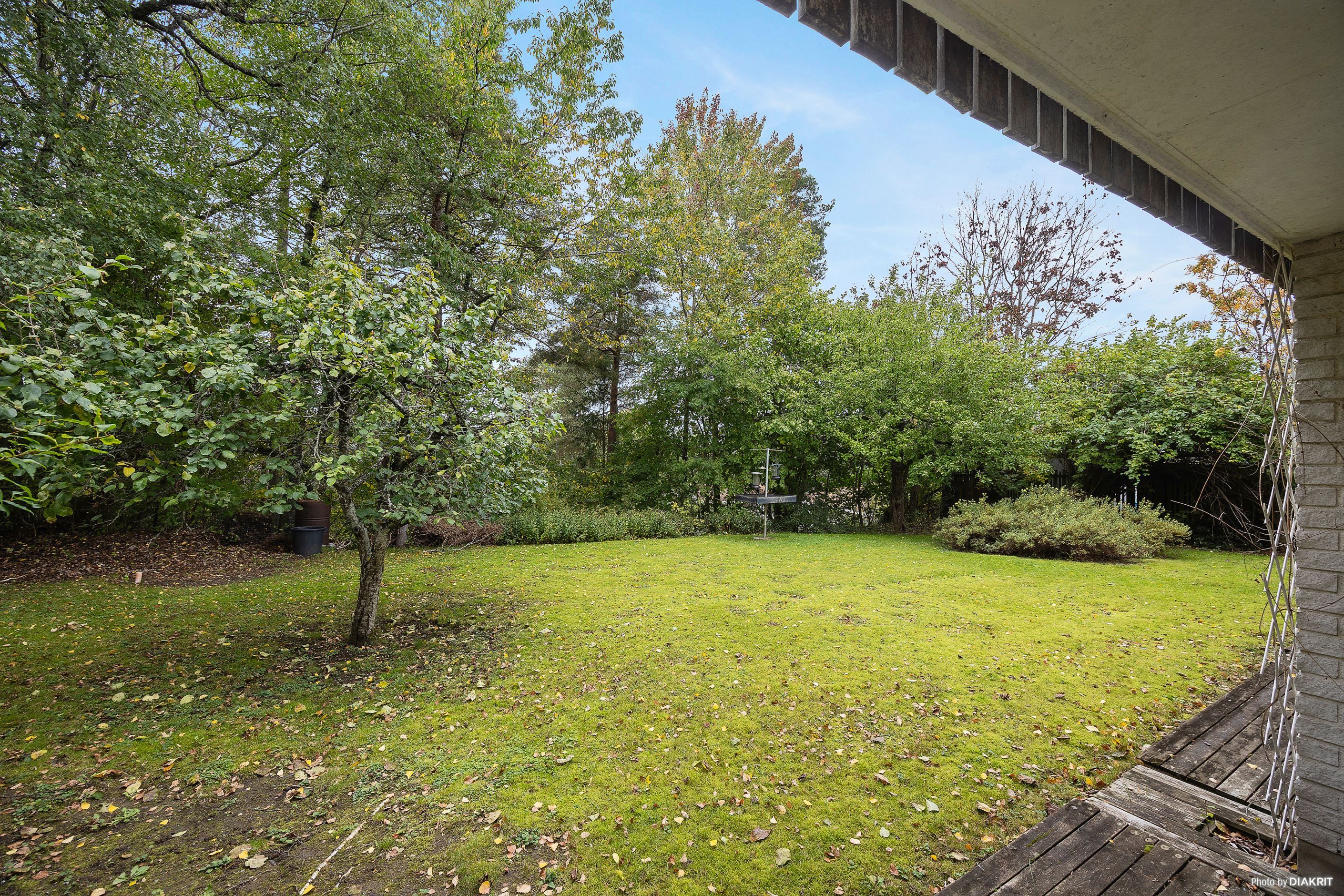 Den friköpta tomten är lättskött med stora gräsytor och goda planeringsmöjligheter där endast fantasin kan sätta gränserna. Det rymliga garaget gör vardagen smidigare – med gott om plats för bilen, säsongsförvaring och hobbyprojekt. Under garaget finns dessutom ett generöst förvaringsutrymme om ca 23 kvm.
