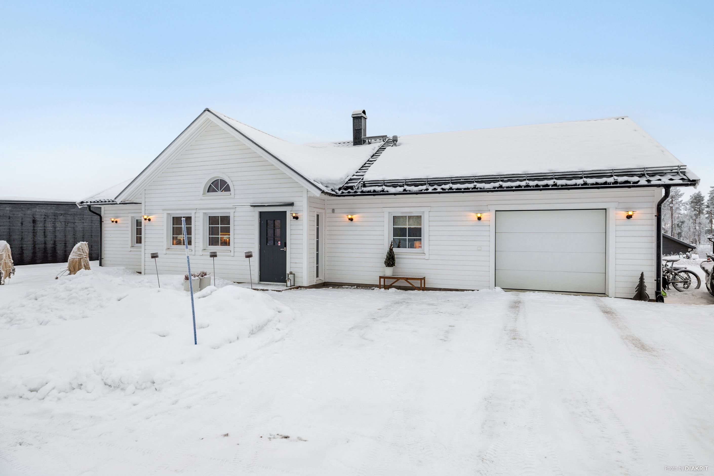 Utöver dessa finner du en praktisk tvättstuga och ett integrerat varmgarage med plats för både bil och förvaring. Villan är uppförd 2022 och fri från fastighetsavgift fram till 2037.