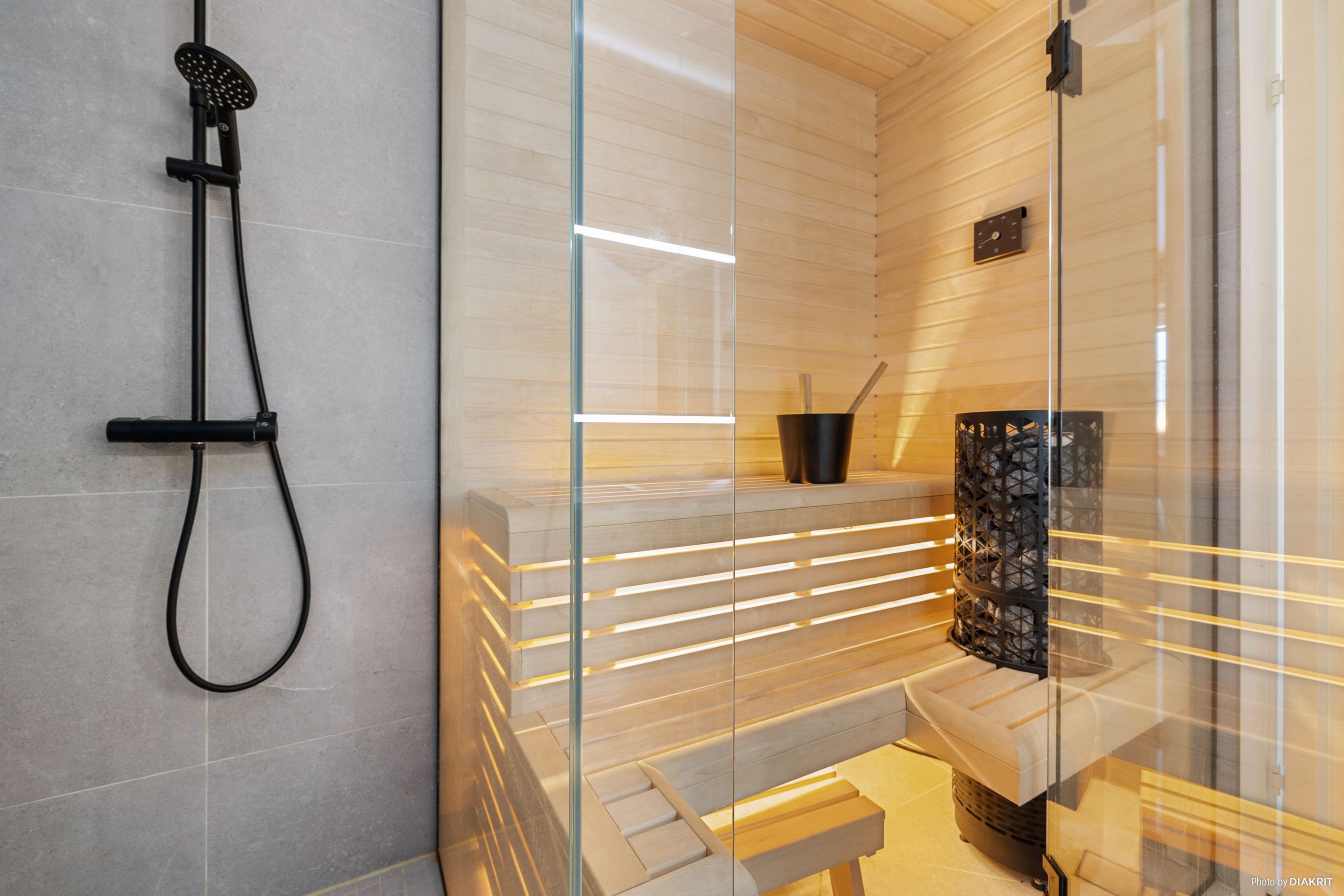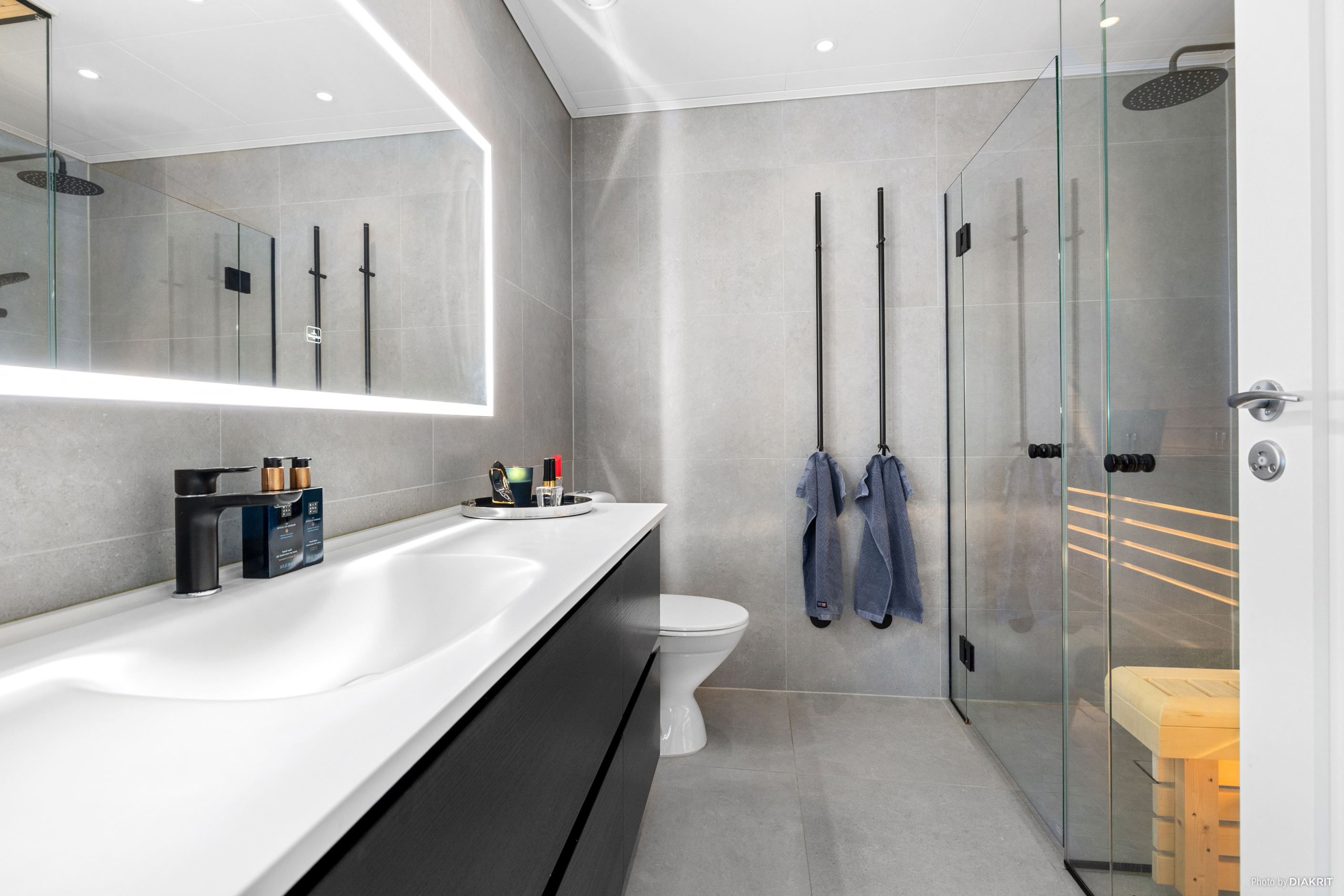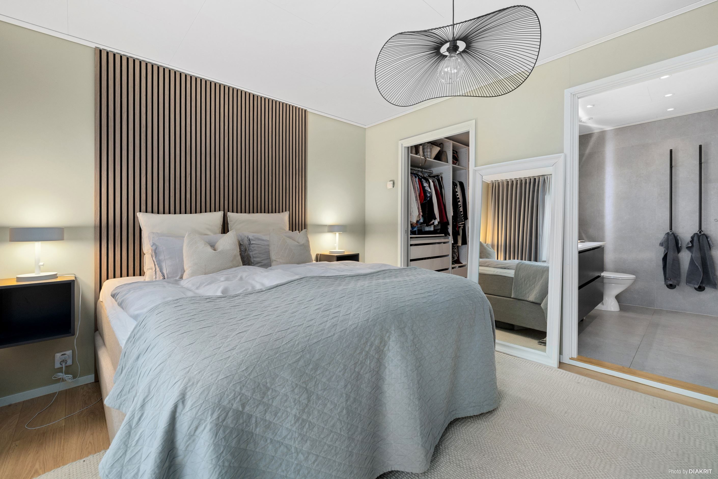 Tre sovrum finns i huset, varav huvudsovrummet har direkt access till ett exklusivt badrum med bastu och klädkammare. Badrummen har stilrena materialval, klinker och kvalitetsinredning från Vedum och Villeroy & Boch. För den som behöver fyra sovrum finns ett inrett sovrum med entré från garaget.