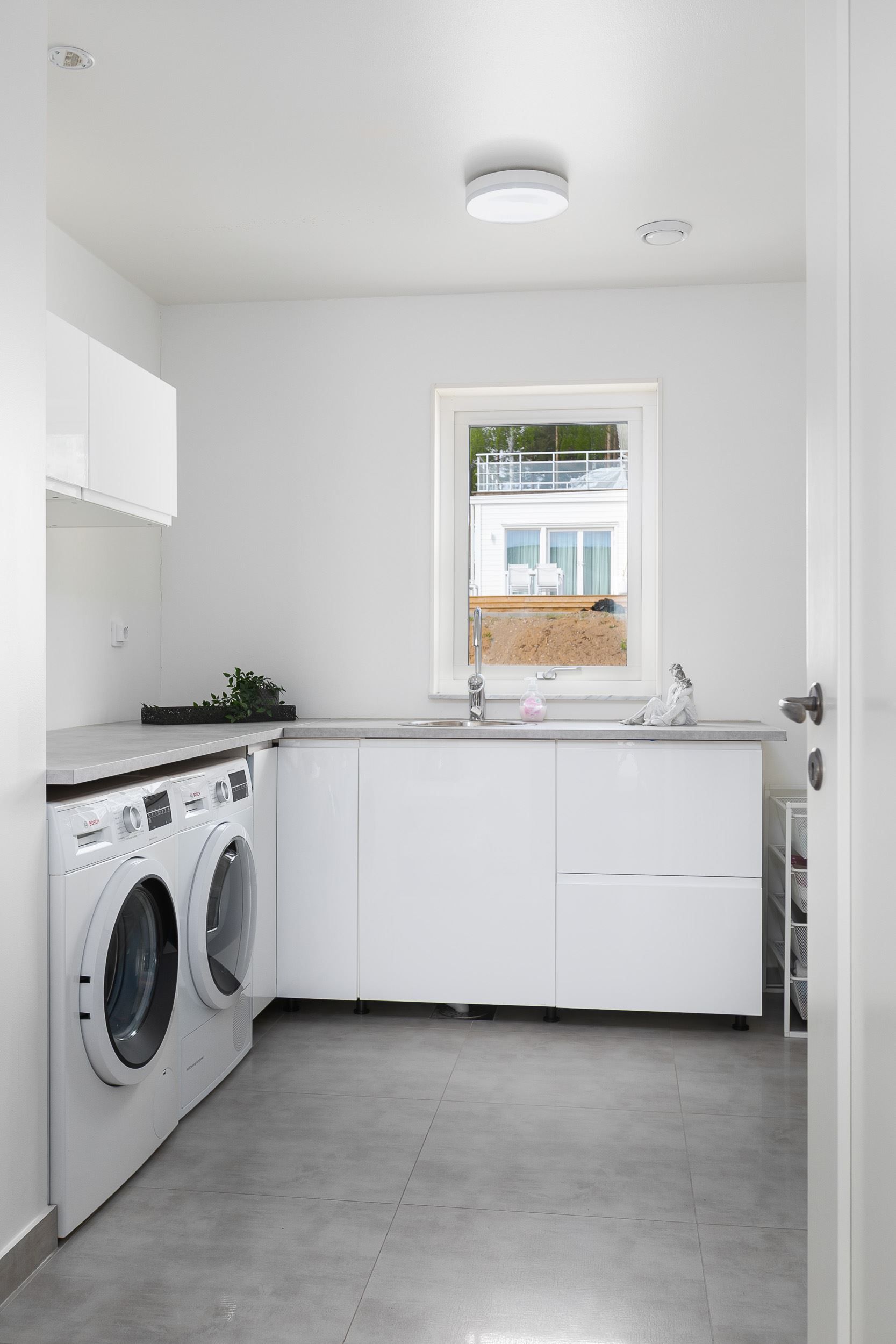 De två exklusiva badrummen är rymliga och omsorgsfullt inredda med moderna materialval, perfekt för den som efterfrågar något utöver det förväntade. Även husets tekniska hjärta håller hög standard – uppvärmning sker genom bergvärme, en lösning som kombinerar hög energieffektivitet, låg miljöpåverkan och minimalt underhåll. Resultatet blir ett bekvämt och hållbart boende – både ekonomiskt och miljömässigt.