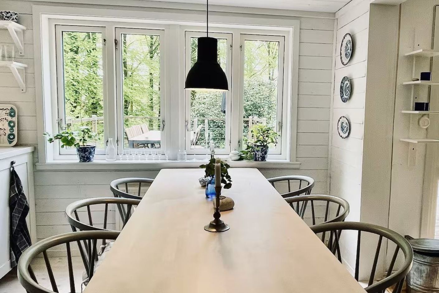 Med härlig grönska utanför fönstret