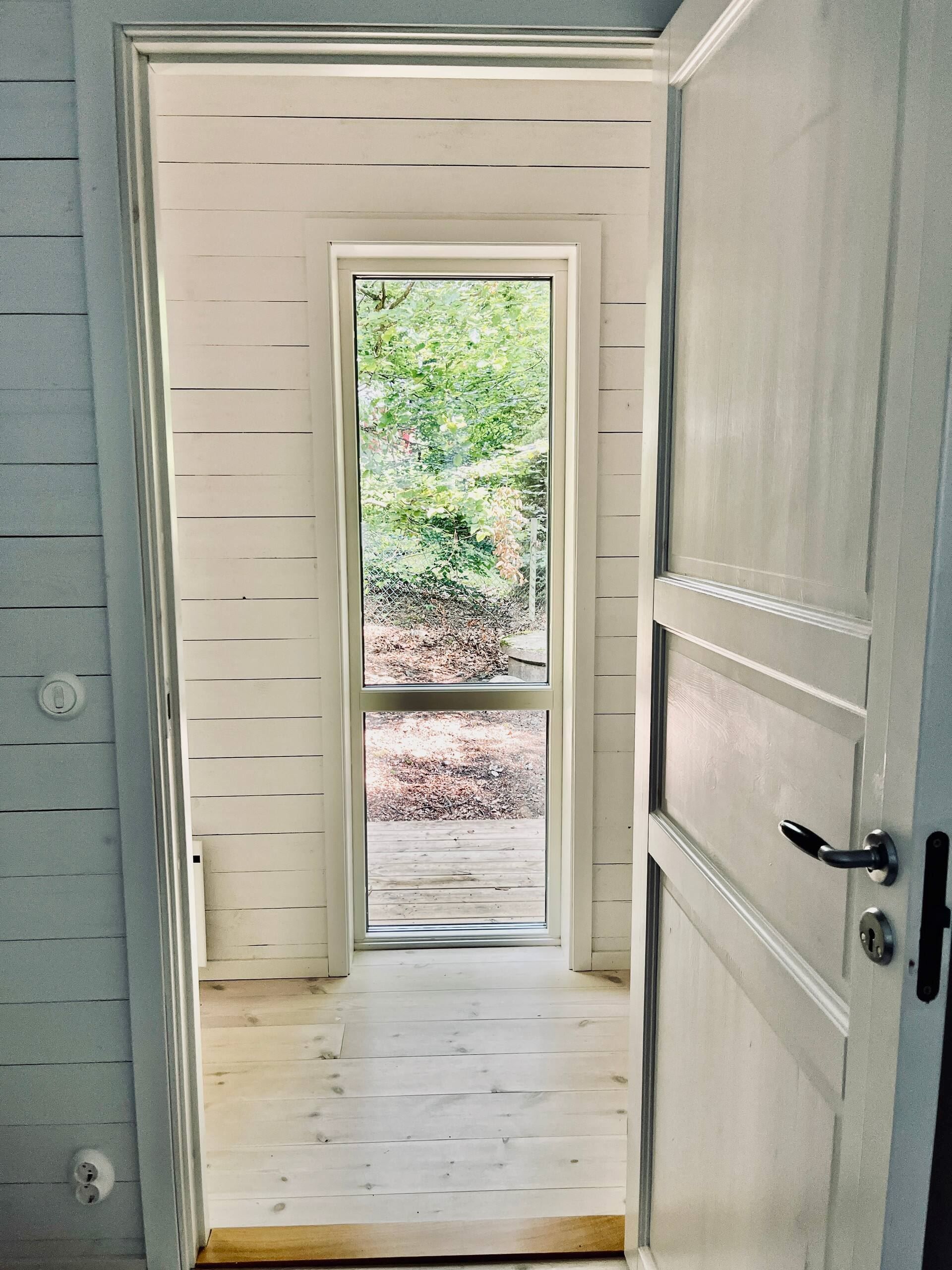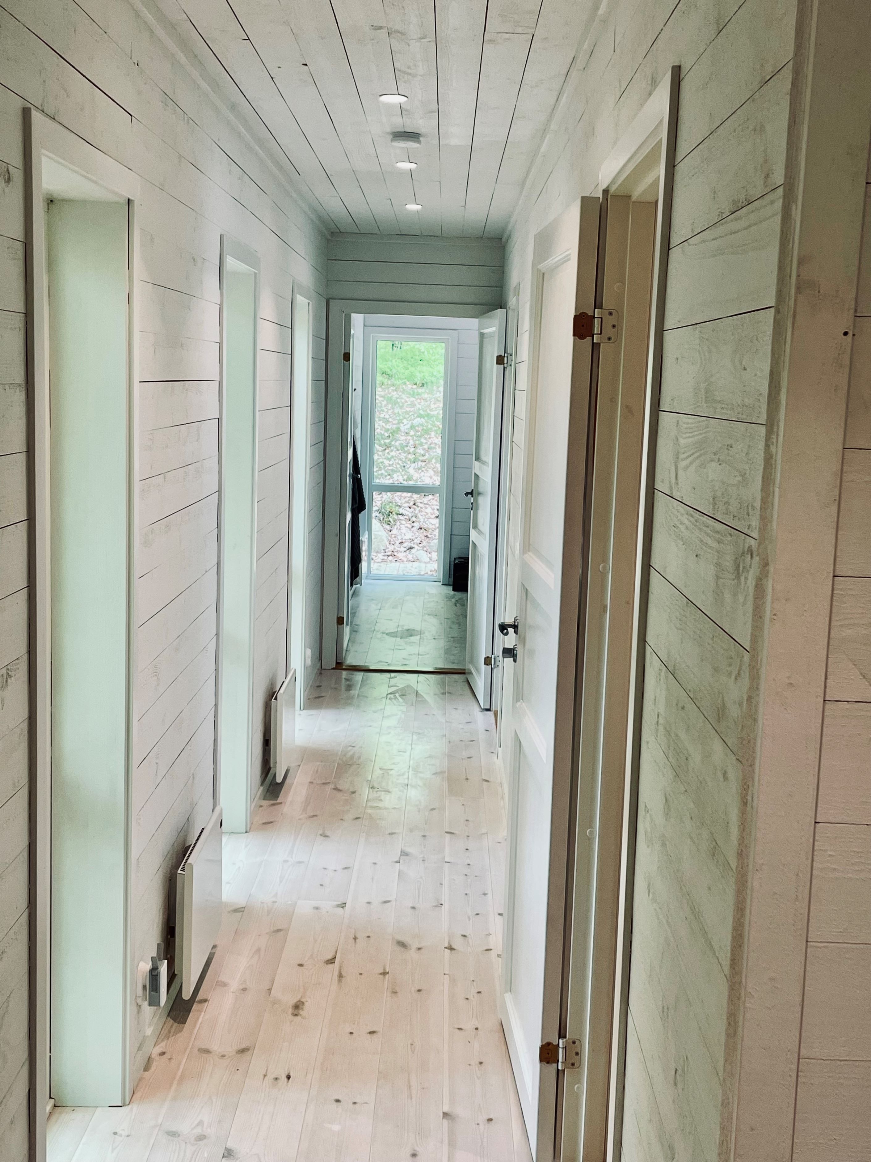 Från sovrum 2 mot korridoren som har två stora fönster som ger härlig naturnära känsla