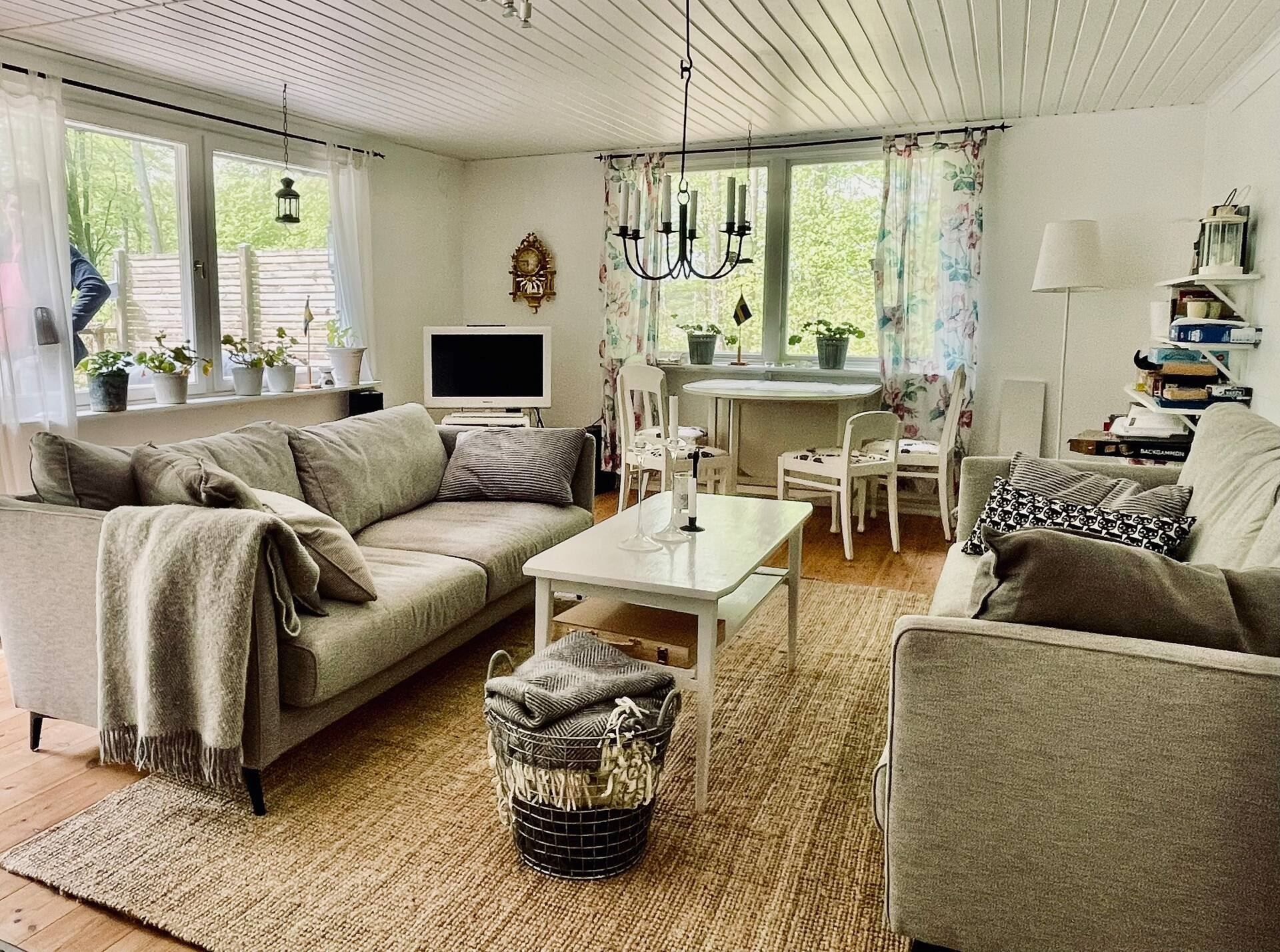 Huset erbjuder tre rogivande sovrum och ett generöst vardagsrum i öppen planlösning med ett stilrent kök – en perfekt samlingspunkt för både familj och vänner. Två kaminer skapar en varm och inbjudande atmosfär året om, oavsett säsong.