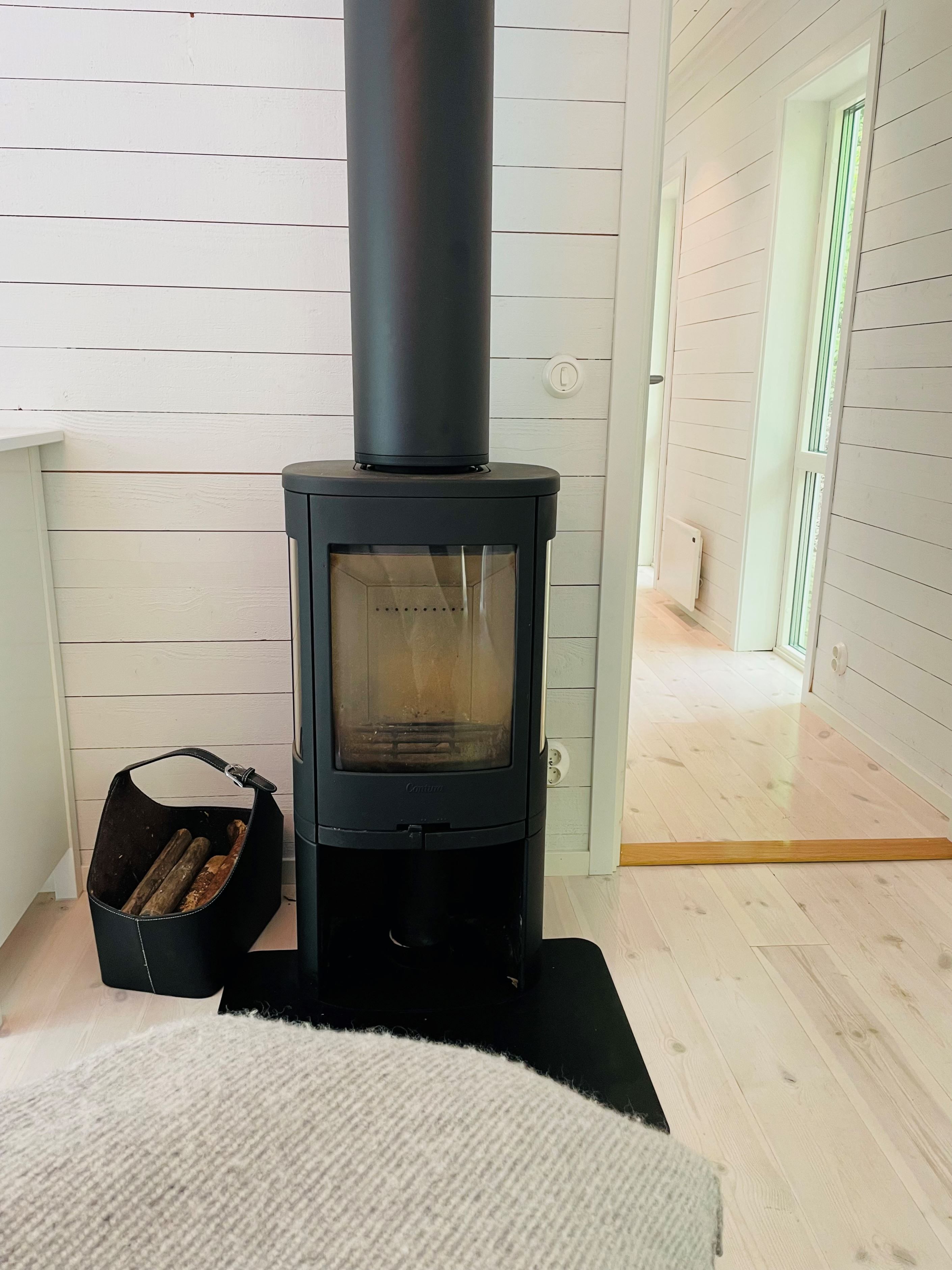 En gammal gjutjärnskamin som värmer gott en regnig dag