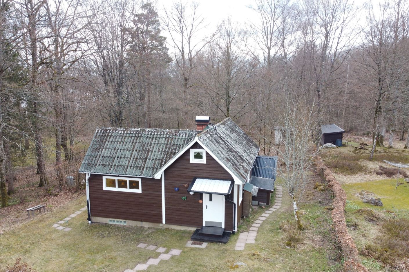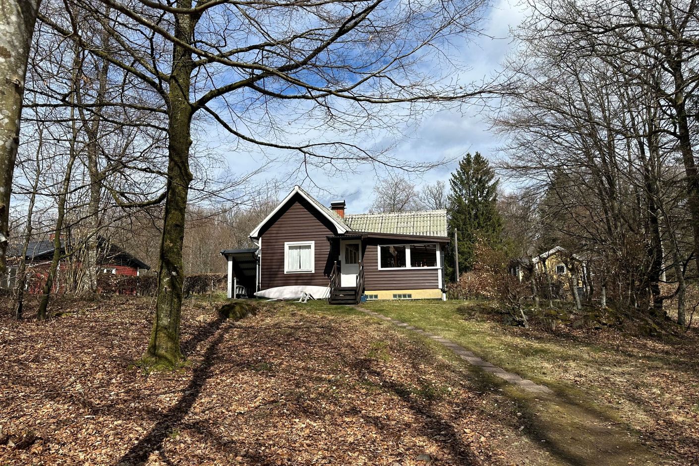 Här, omgiven av bokskog, ligger en insynsskyddad tomt med en stuga som smälter in fint i den omgivande naturen. Träden ramar in tomten på ett naturligt sätt och skapar en behaglig, privat plats där det är lätt att slappna av och bara vara. En perfekt miljö för dig som uppskattar stillhet och närhet till naturen.