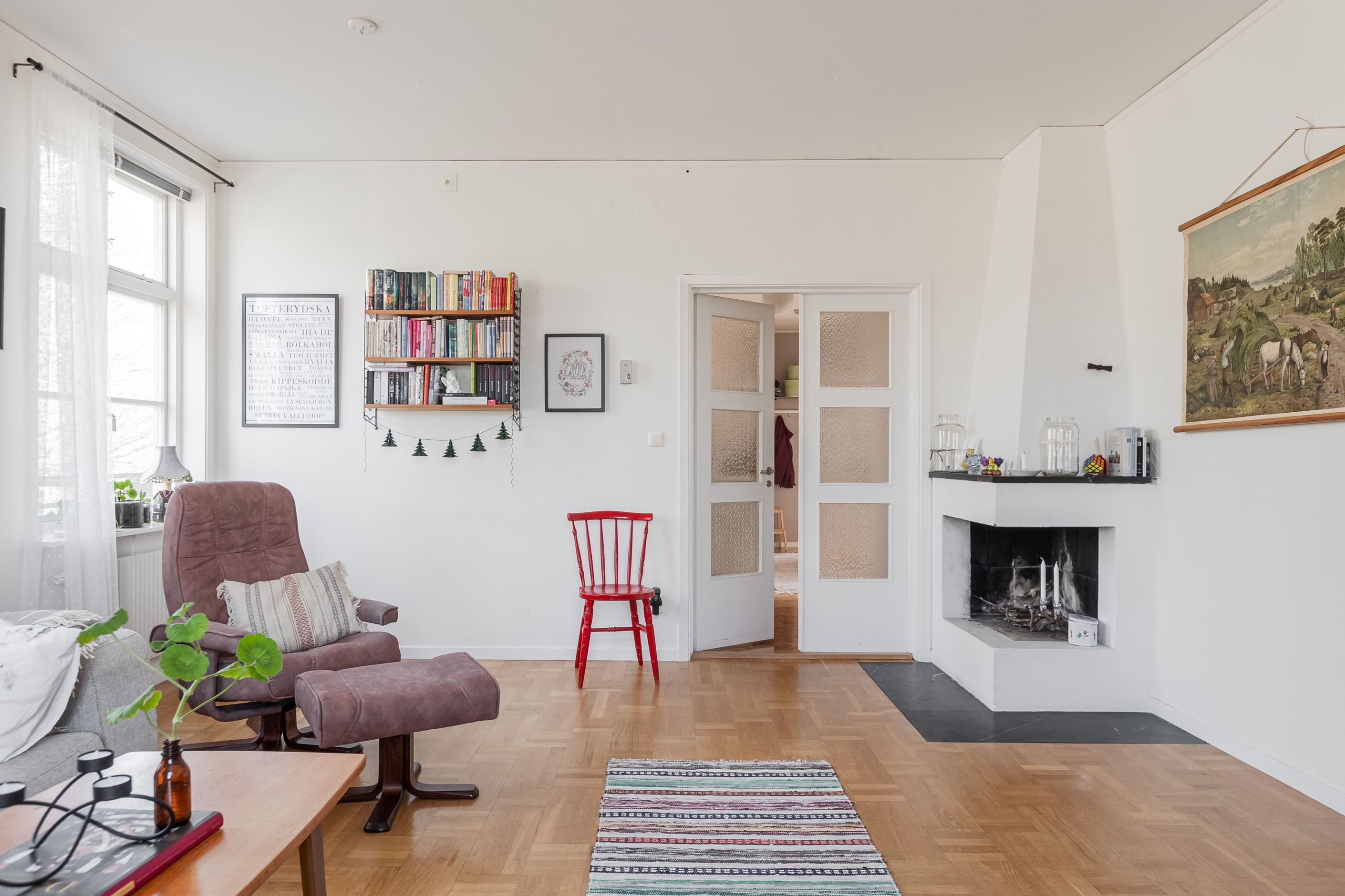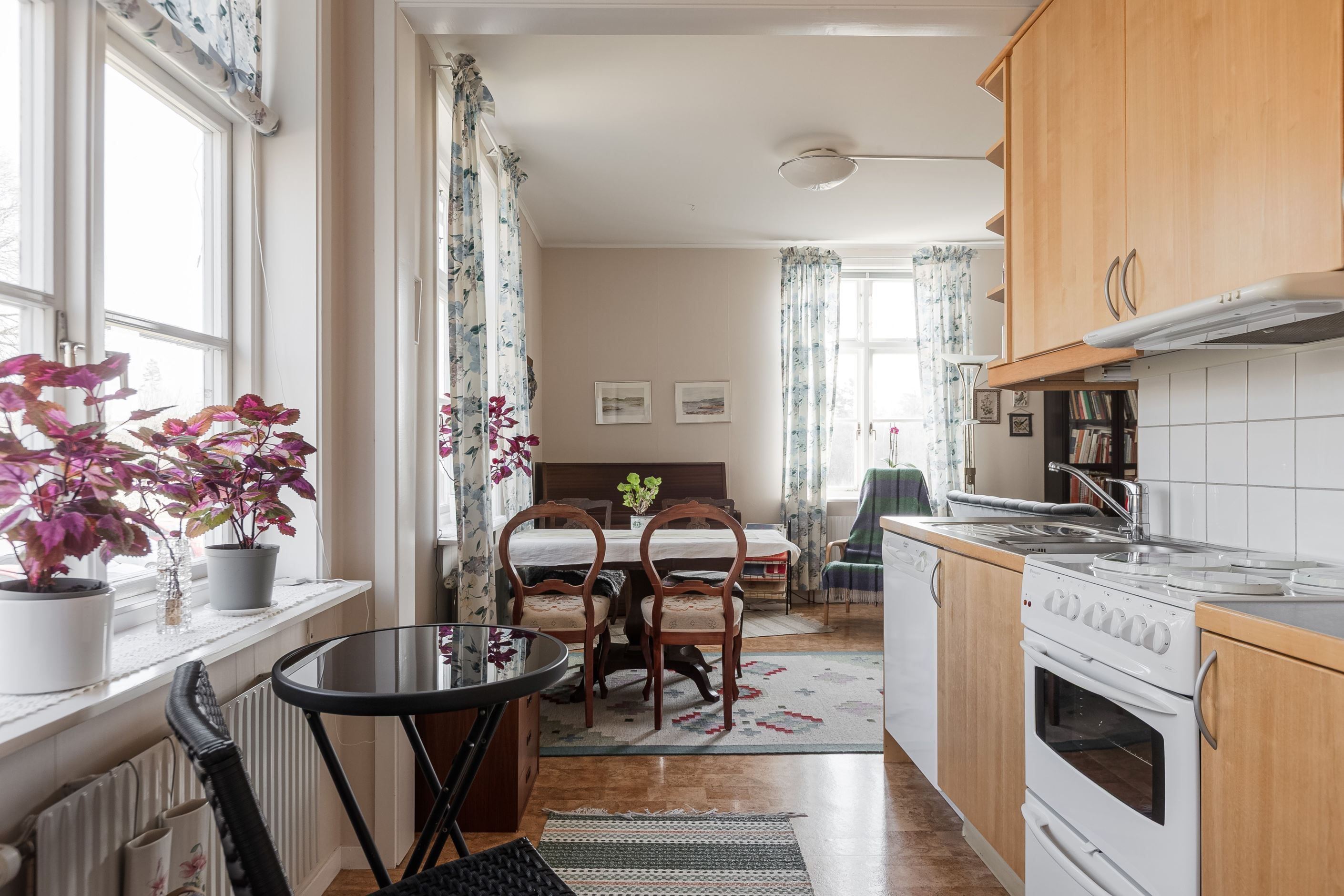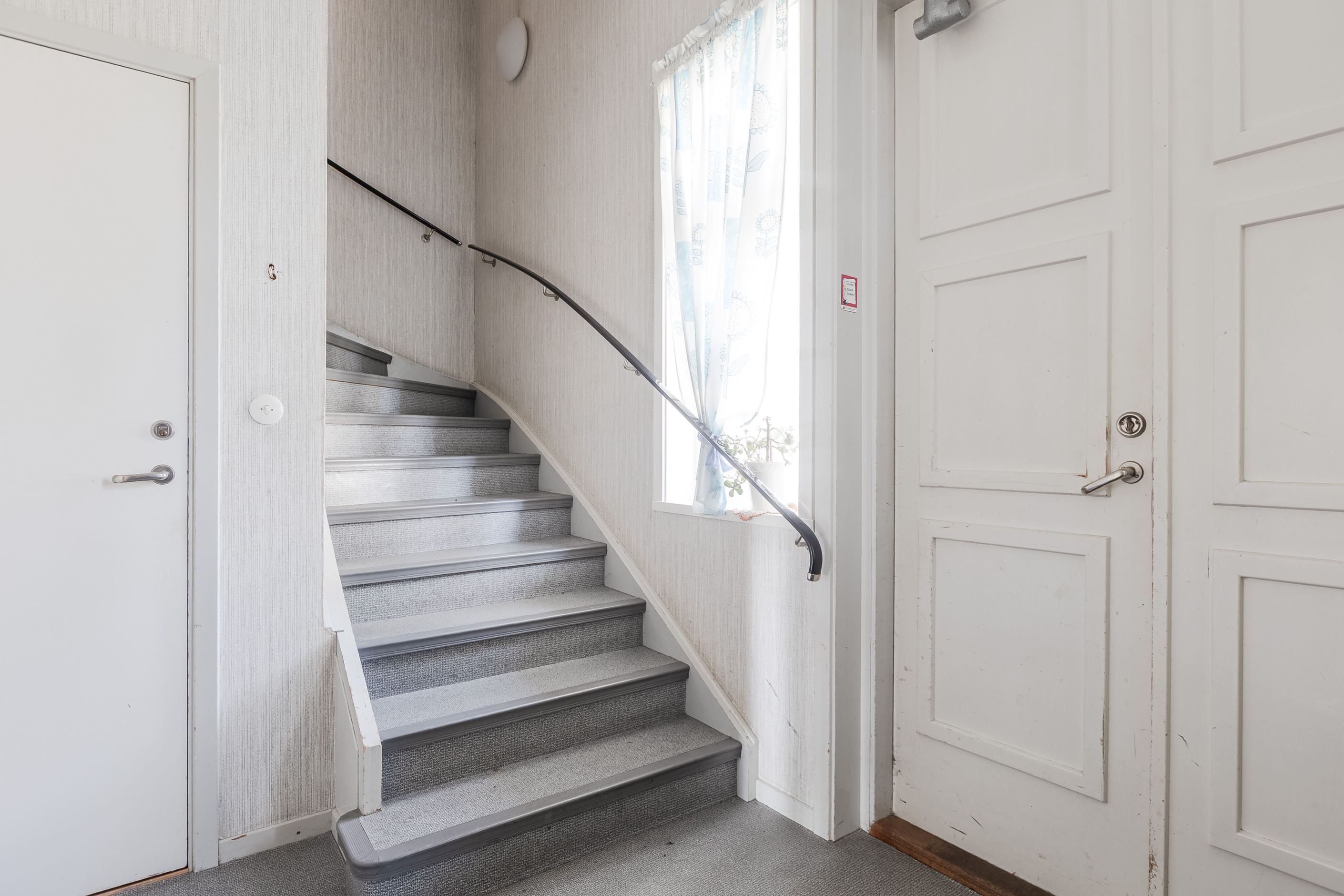 Lägenhet 3 på övre plan om 3 r.o.k på ca 95kvm. Stort och luftigt kök, badrum med plastmatta samt mindre sovrum. Två stora rum som förr var sällskapsrum i fil med dubbeldörrar som plockats bort och satts igen. Dörrarna finns kvar på vinden. I ett rum finns en eldstad som behöver provtryckning och godkännande för att få användas igen.