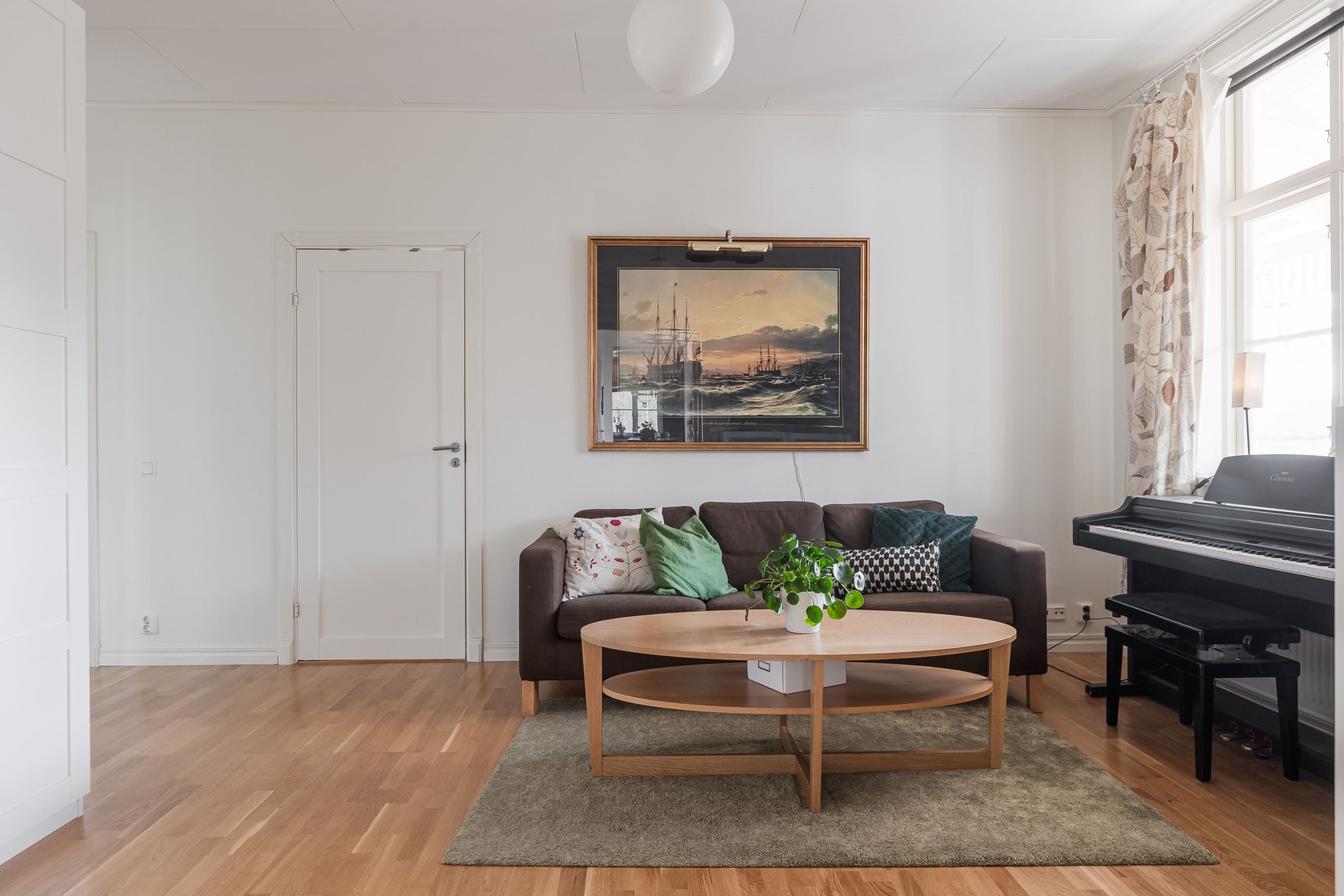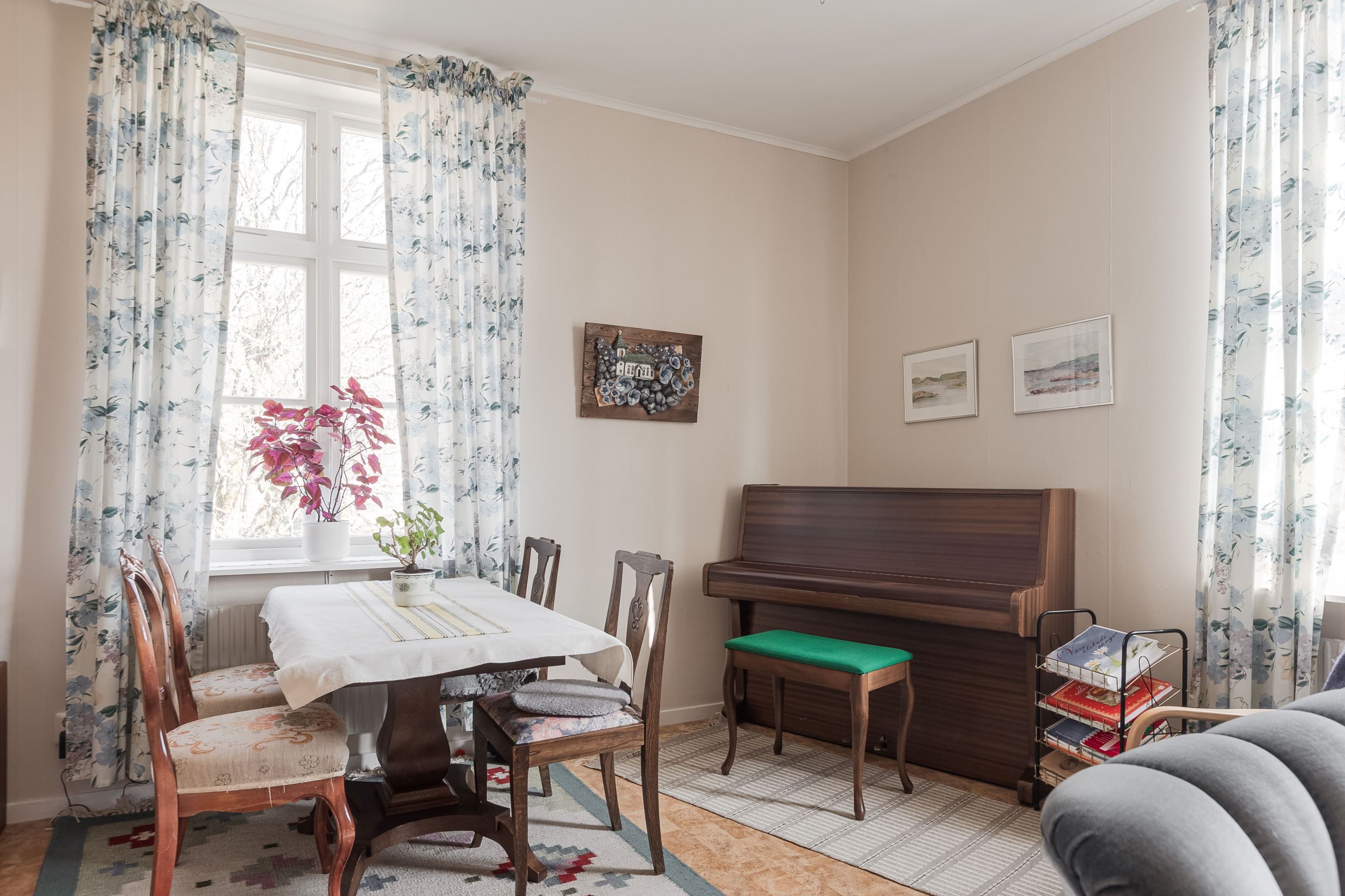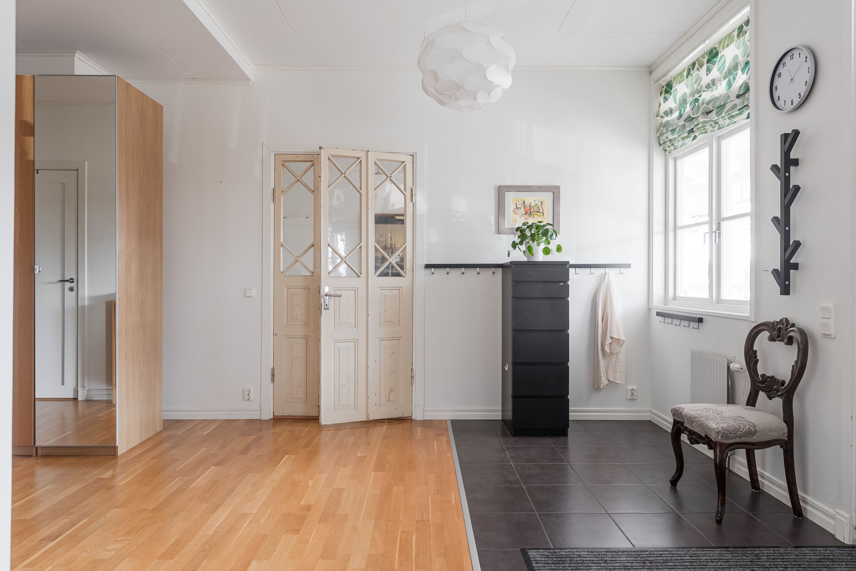 Lägenhet 3 på övre plan om 3 r.o.k på ca 95kvm. Stort och luftigt kök, badrum med plastmatta samt mindre sovrum. Två stora rum som förr var sällskapsrum i fil med dubbeldörrar som plockats bort och satts igen. Dörrarna finns kvar på vinden. I ett rum finns en eldstad som behöver provtryckning och godkännande för att få användas igen.