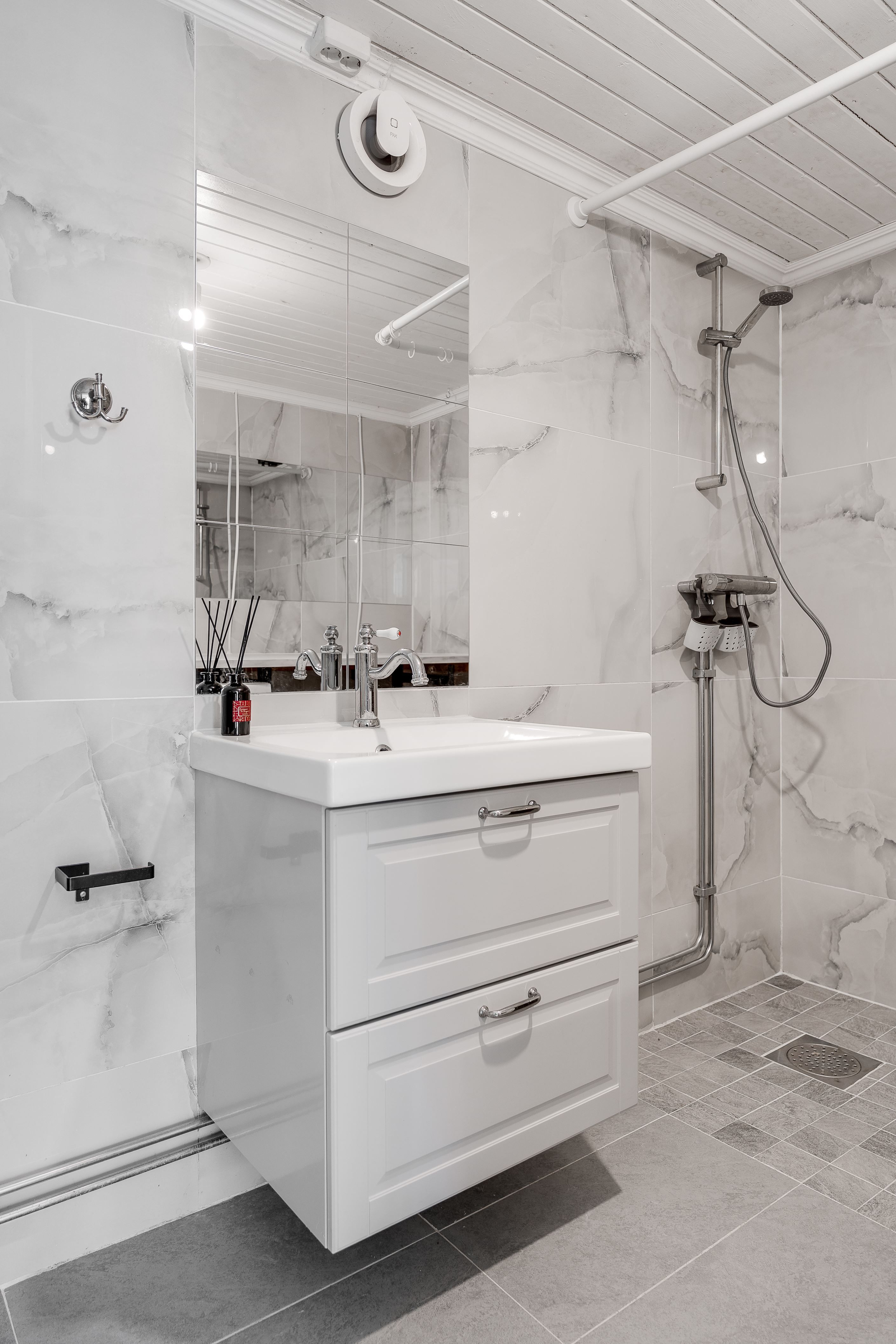 En av stugorna är idag uthyrd – ett utmärkt tillskott som skapar ekonomisk trygghet och god avkastningsmöjlighet. Samtliga badrum och köksutrymmen är renoverade av nuvarande ägare och ytskikten är ljusa och fräscha.