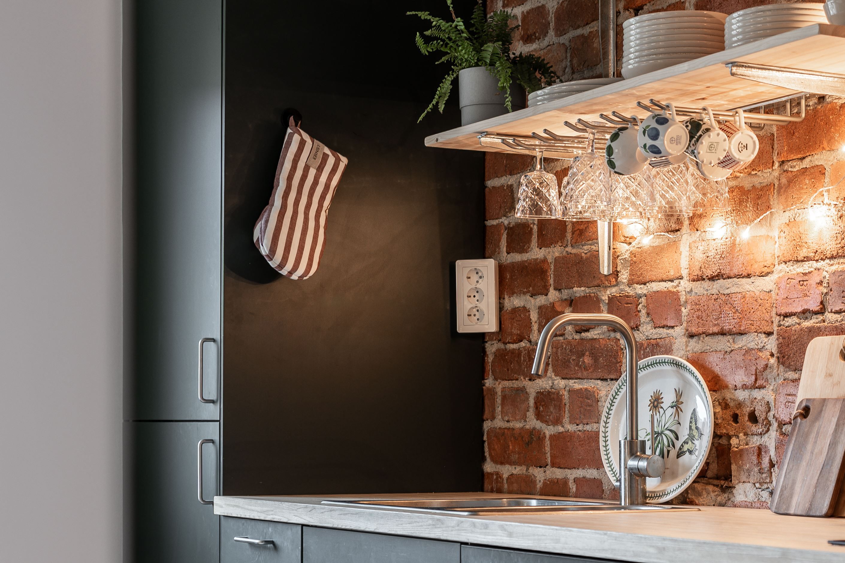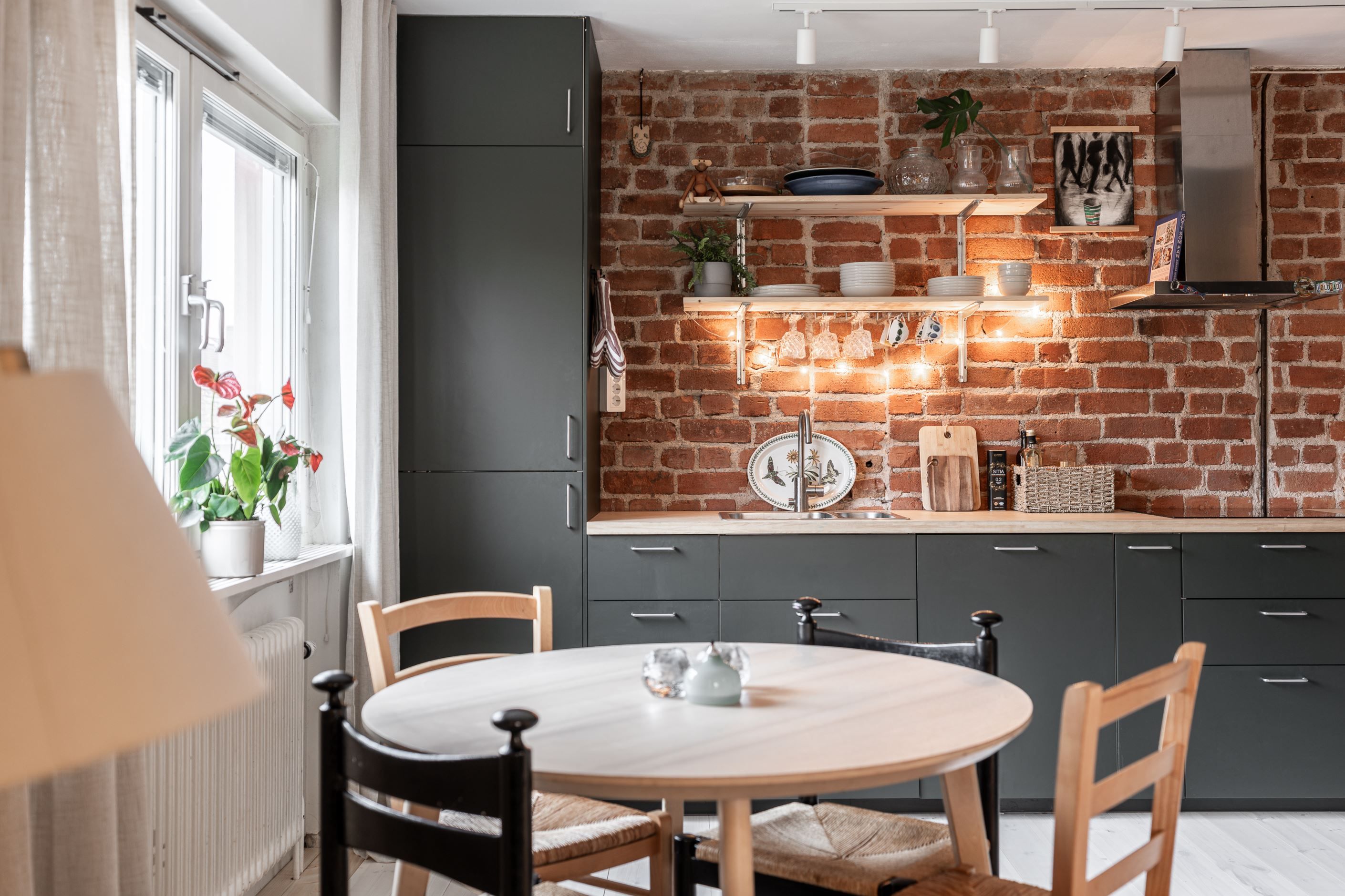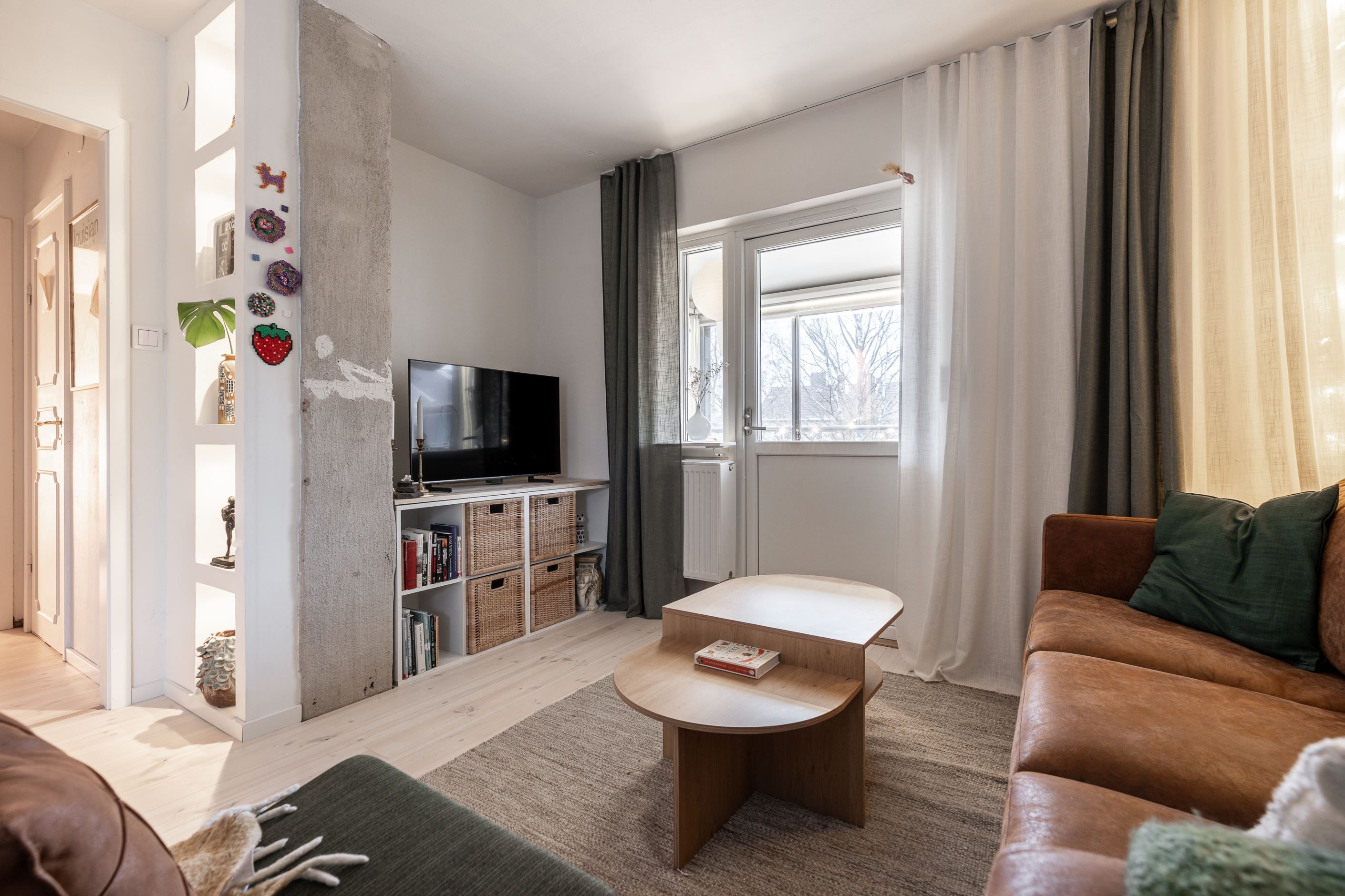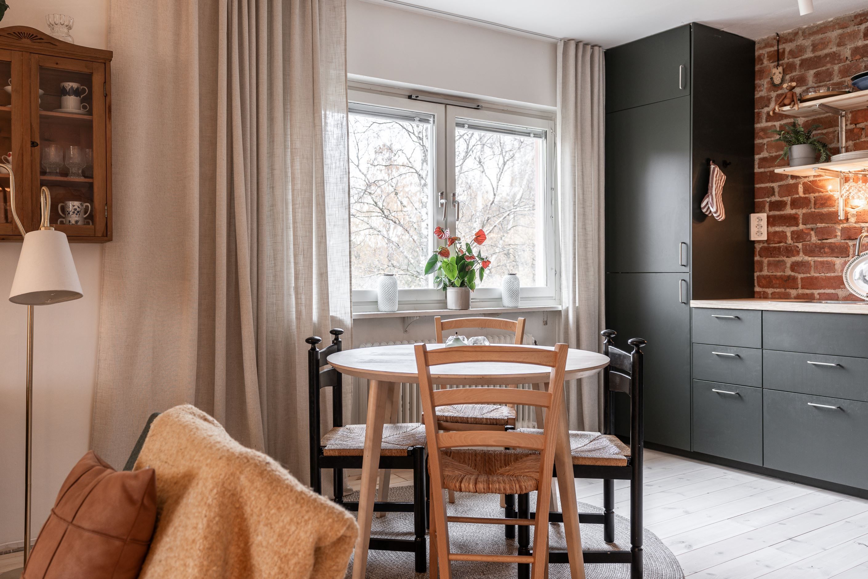 Bostaden har nyligen genomgått en totalrenovering där stil och kvalitet stått i fokus. Resultatet är ett modernt hem med ljusa ytskikt, nya golv och genomtänkta materialval. Köket har fått en uppdaterad design med snygga tegeldetaljer som skapar stark karaktär och värme, medan det härliga trägolvet adderar en tidlös charm.