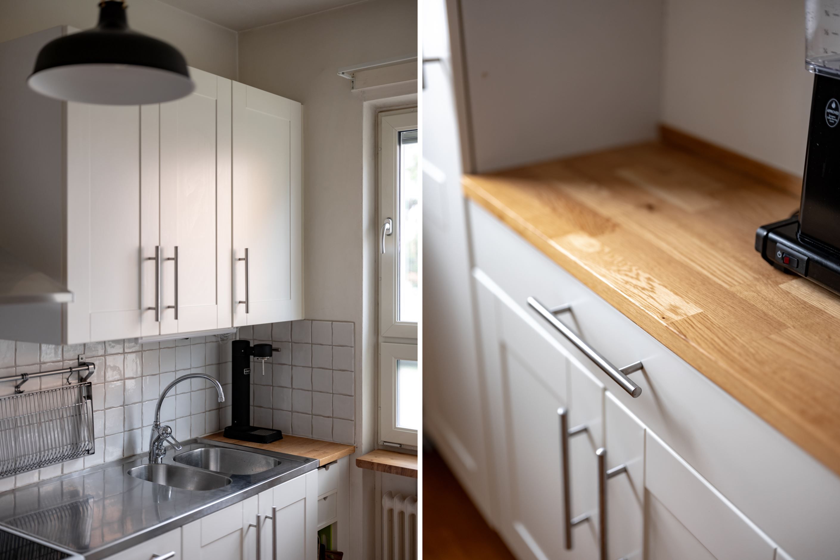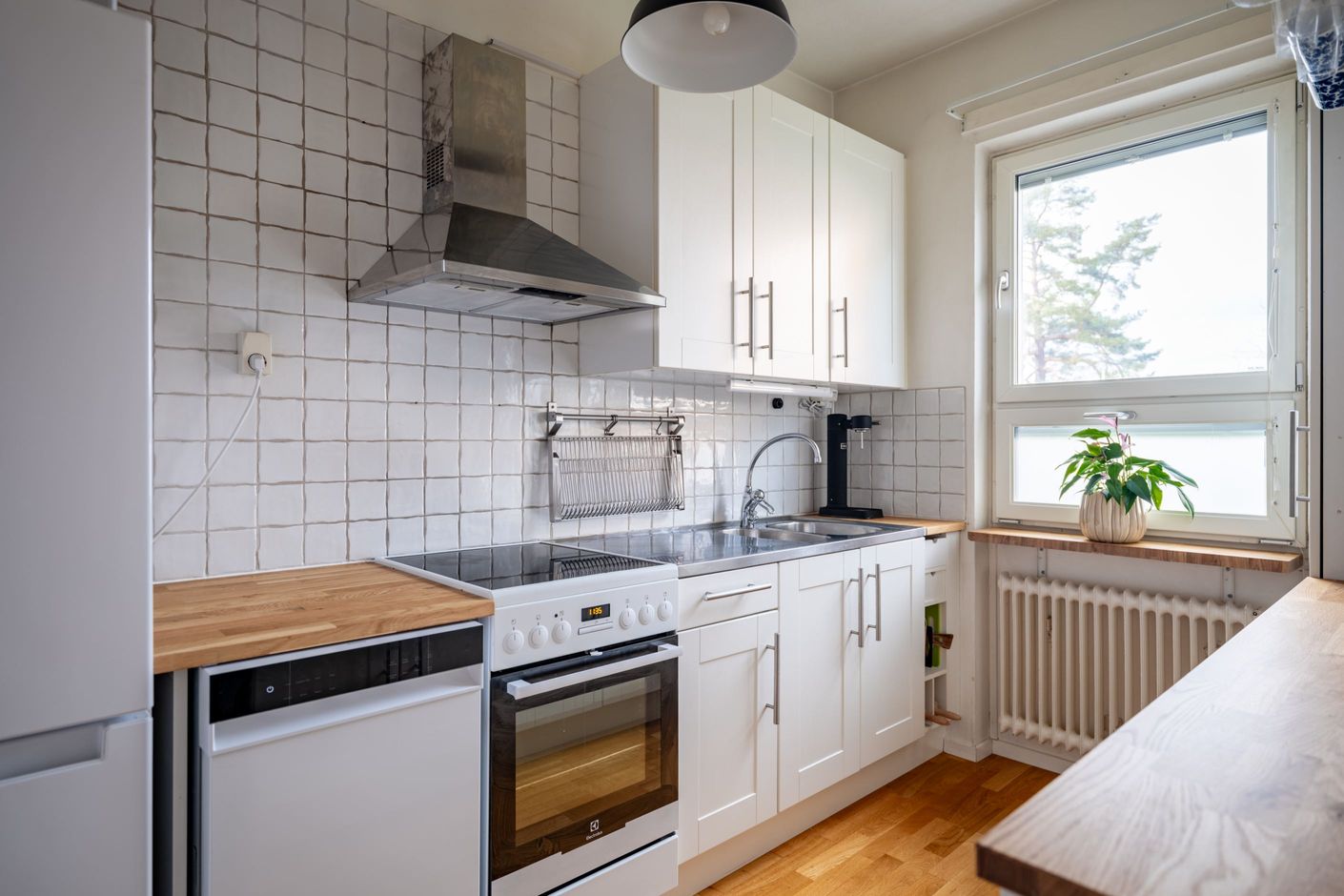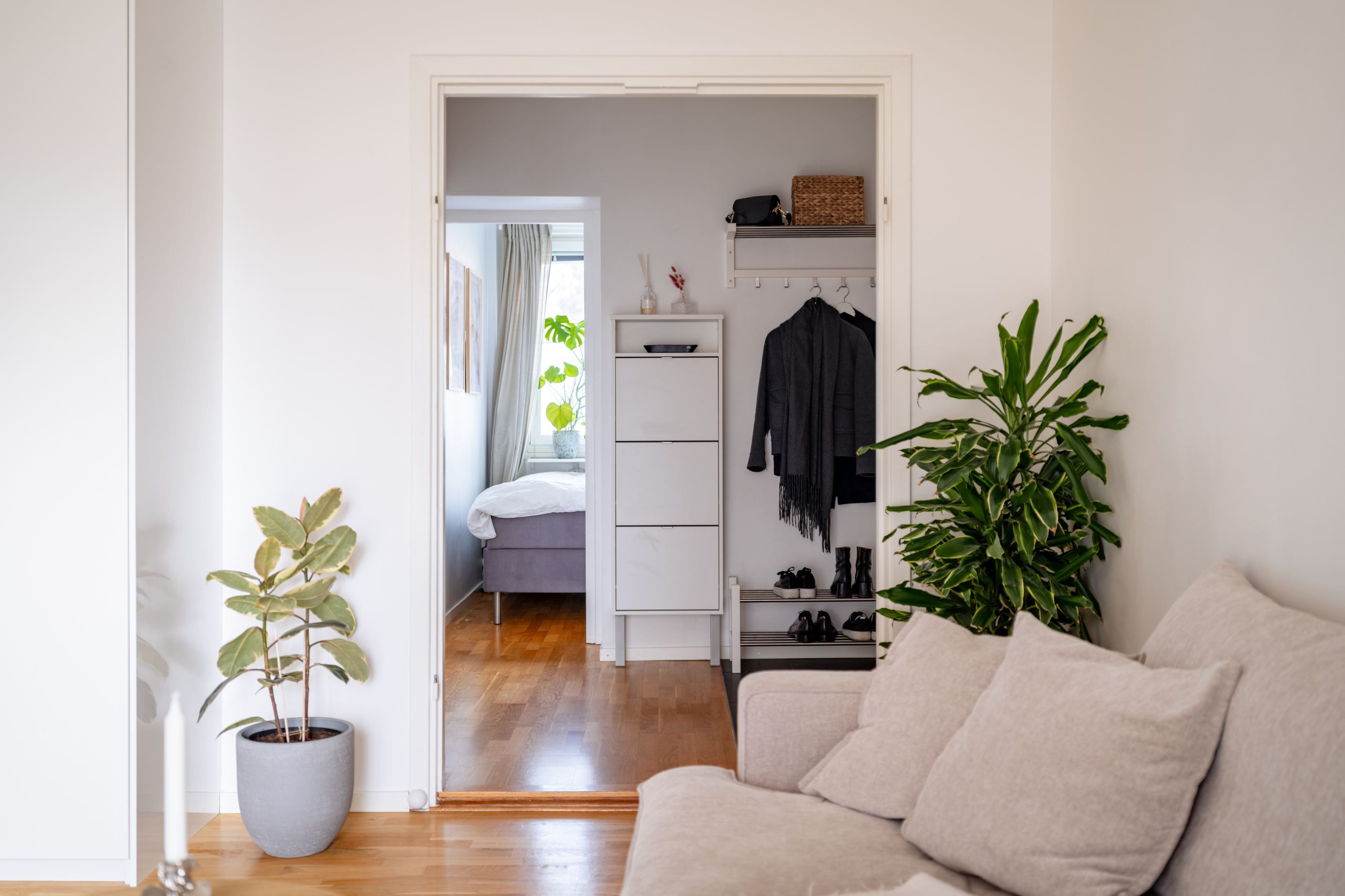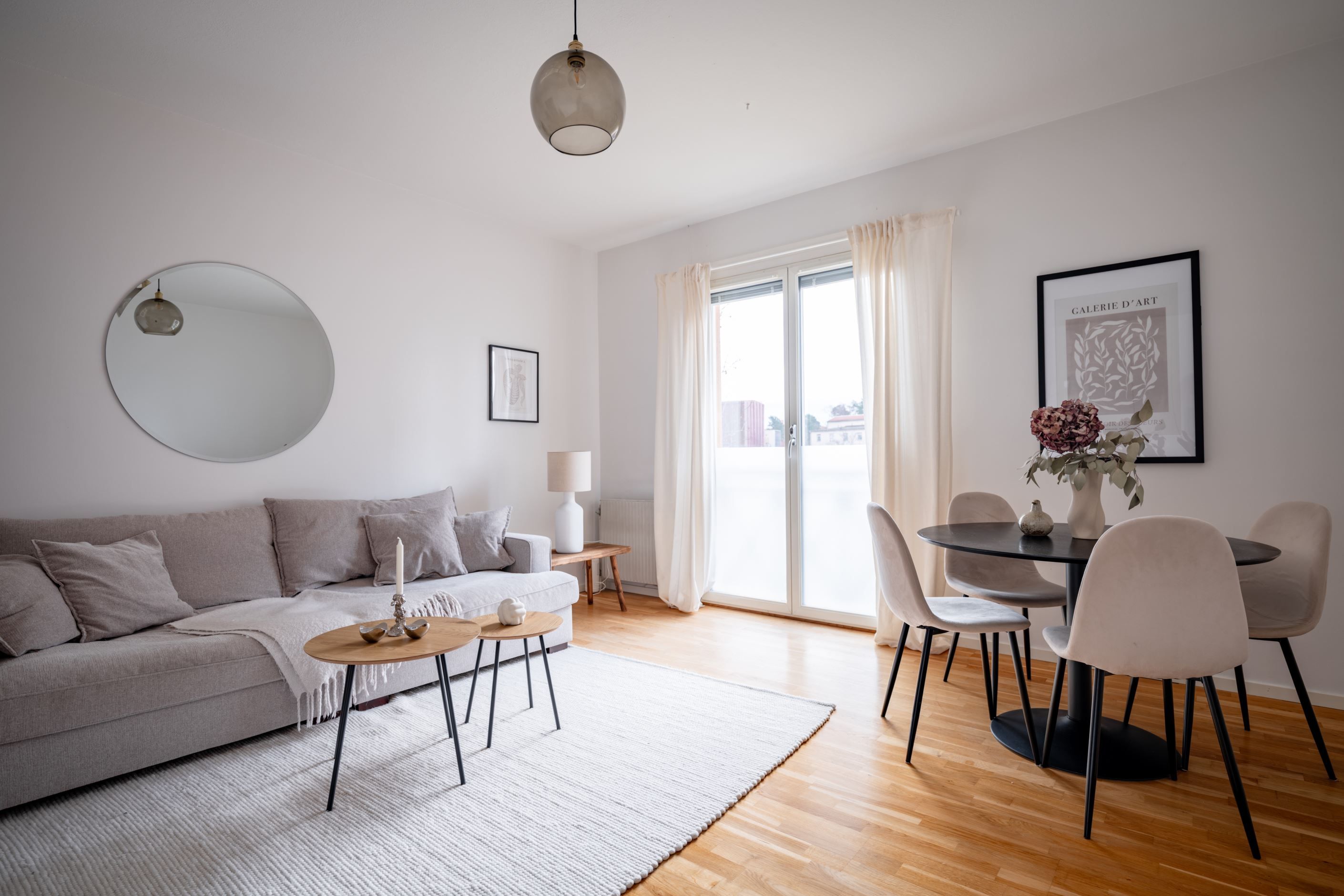 Det stilrena köket bjuder in till matlagning, medan vardagsrummet med sin franska balkong blir hemmets naturliga samlingspunkt. Här kan du slå upp balkongdörrarna och njuta av ljuset. Sovrummet erbjuder plats för dubbelsäng, garderob och till och med ett mindre skrivbord – perfekt för den som arbetar hemifrån.