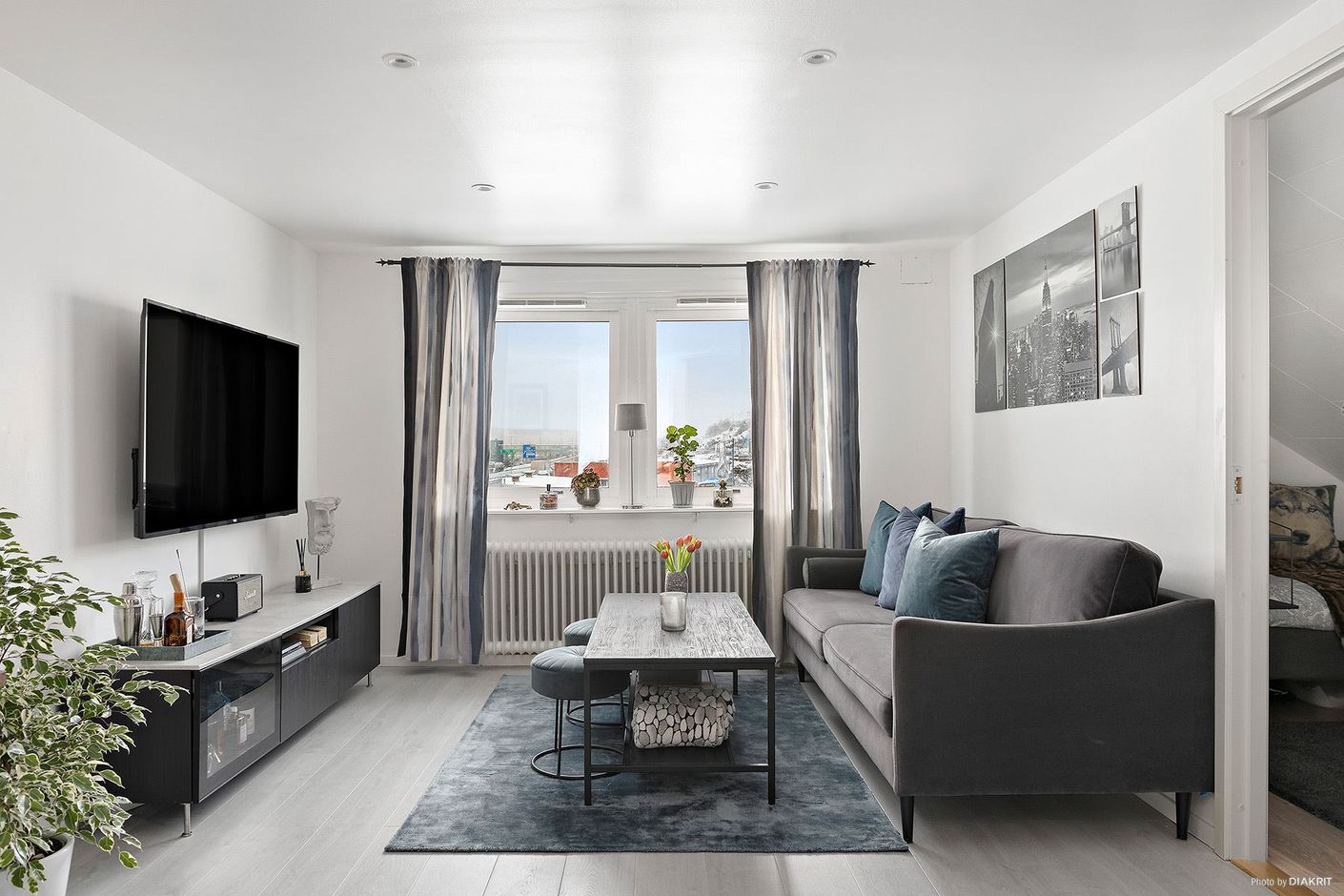 Lägenheten är ljus och modern. Hemmets hjärta köket är modernt och stilrent. Smart och funktionellt, med gott om förvaring och arbetsyta. Snygga materialval, och fint ljusinsläpp. Vardagsrummet är rymligt och ger plats åt både soffgrupp och matbord, dessutom smart avdelat för att ge plats åt eget krypin, med säng och klädförvaring. Badrummet är fräscht och här finns även tvättmaskin installerat.
