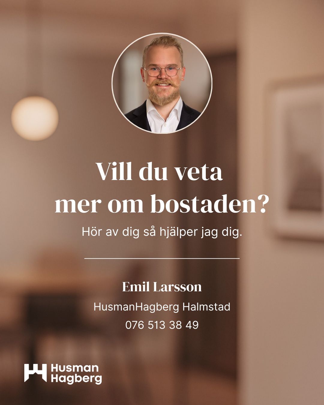 Läget är perfekt för dig som vill ha närhet till både studier och stadsliv. Högskolan nås på bara ett par minuter med cykel och Halmstad centrum ligger cirka 8 minuter bort.