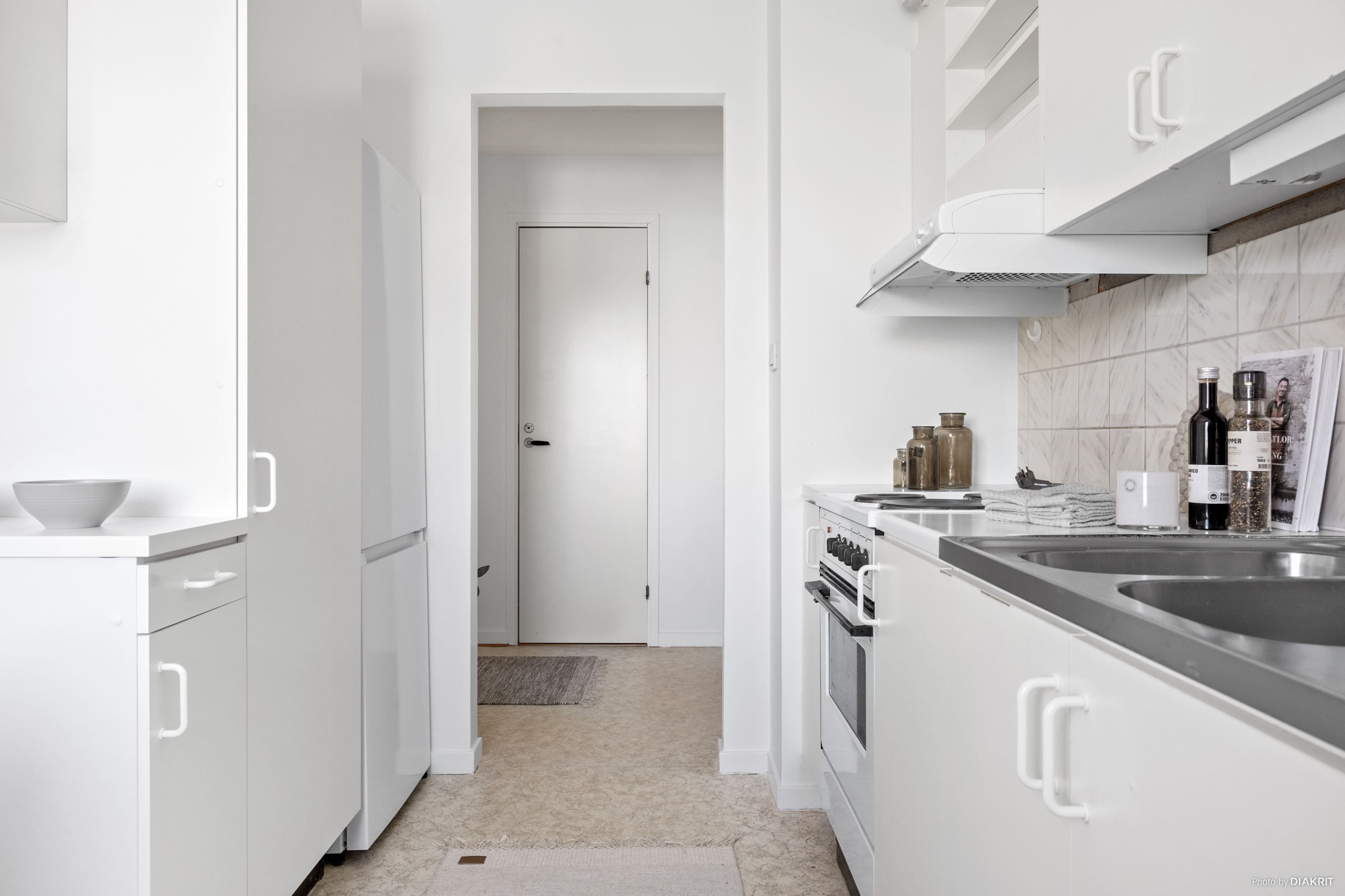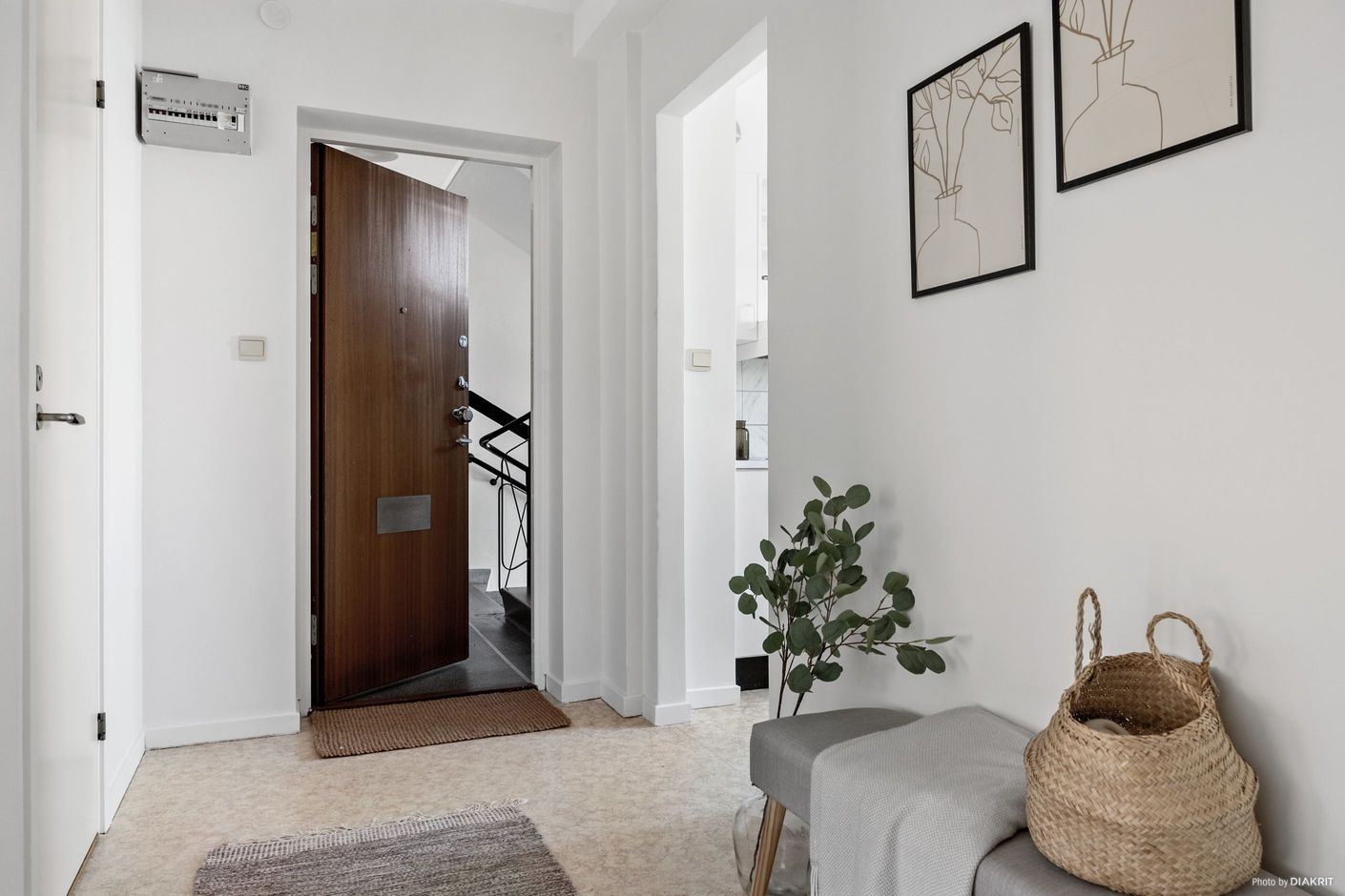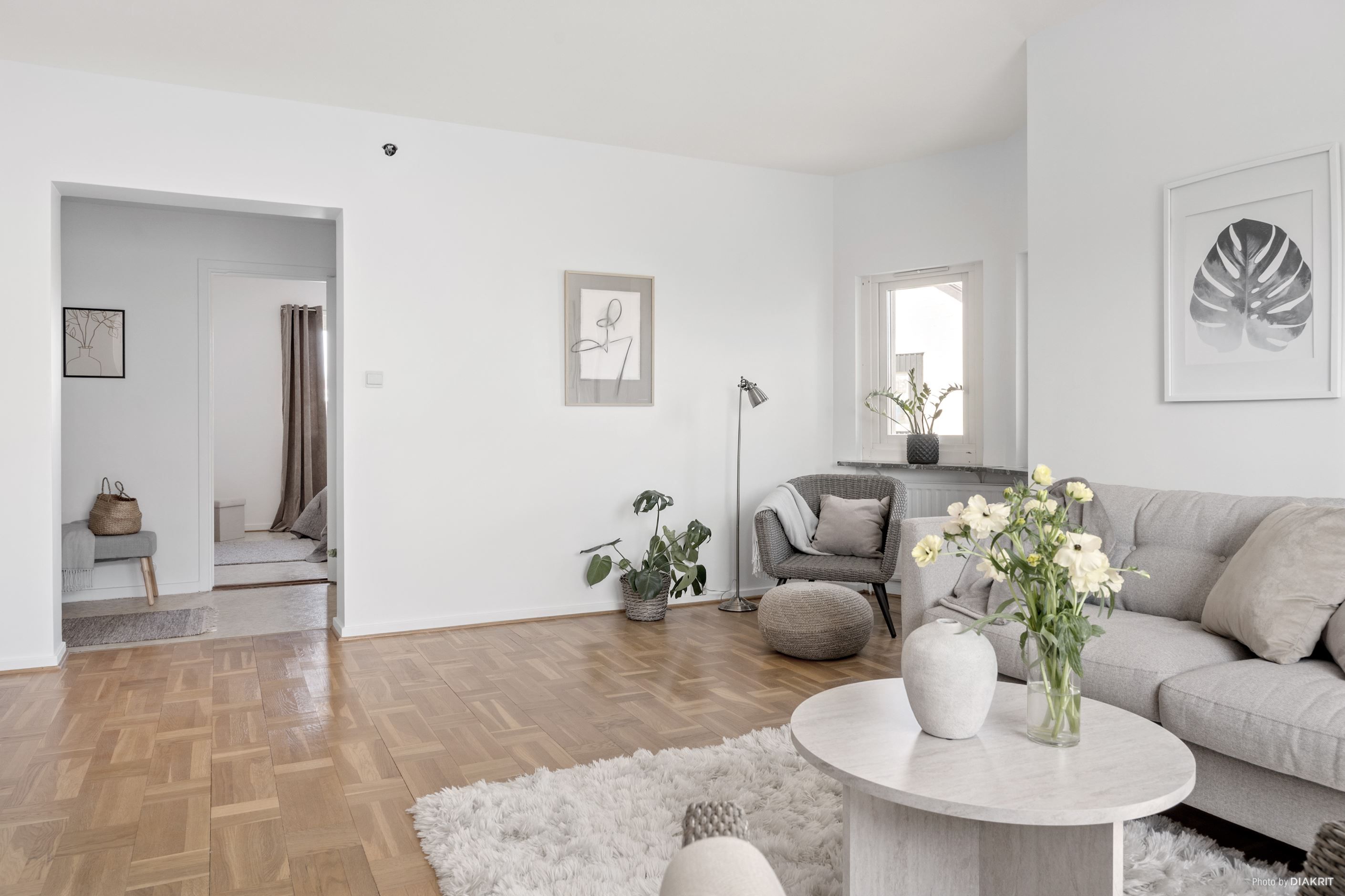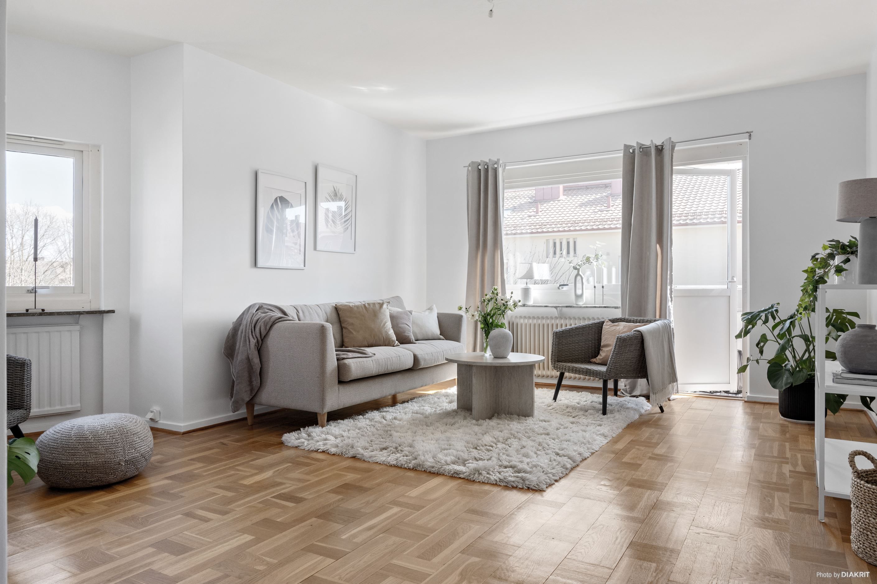 Välkommen till en trivsam tvåa högst upp i huset – här bor du ostört med ett fint ljusinsläpp och genomgående fräscha ytskikt tack vare nyligen målade väggar. Bostaden erbjuder generösa sällskapsytor med ett stort vardagsrum där ett tidsenligt burspråk skapar en inbjudande känsla. Från bostaden nås även en balkong som ger extra rymd och möjlighet till avkoppling.