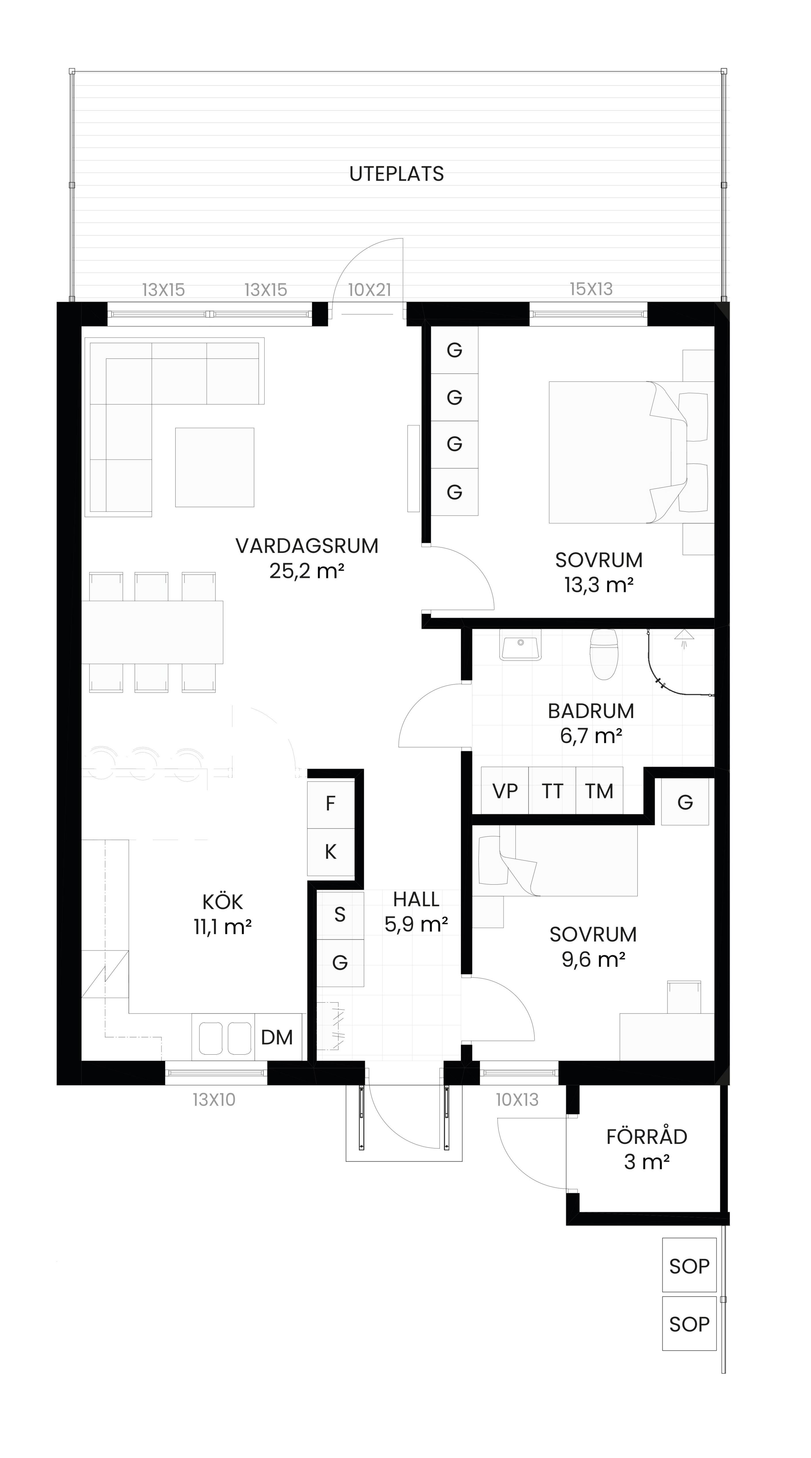 Belägen i markplan, vilket ger en lättillgänglig och praktisk boendemiljö. Varje lägenhet har egen p-plats och förråd för extra förvaring och bekvämlighet.