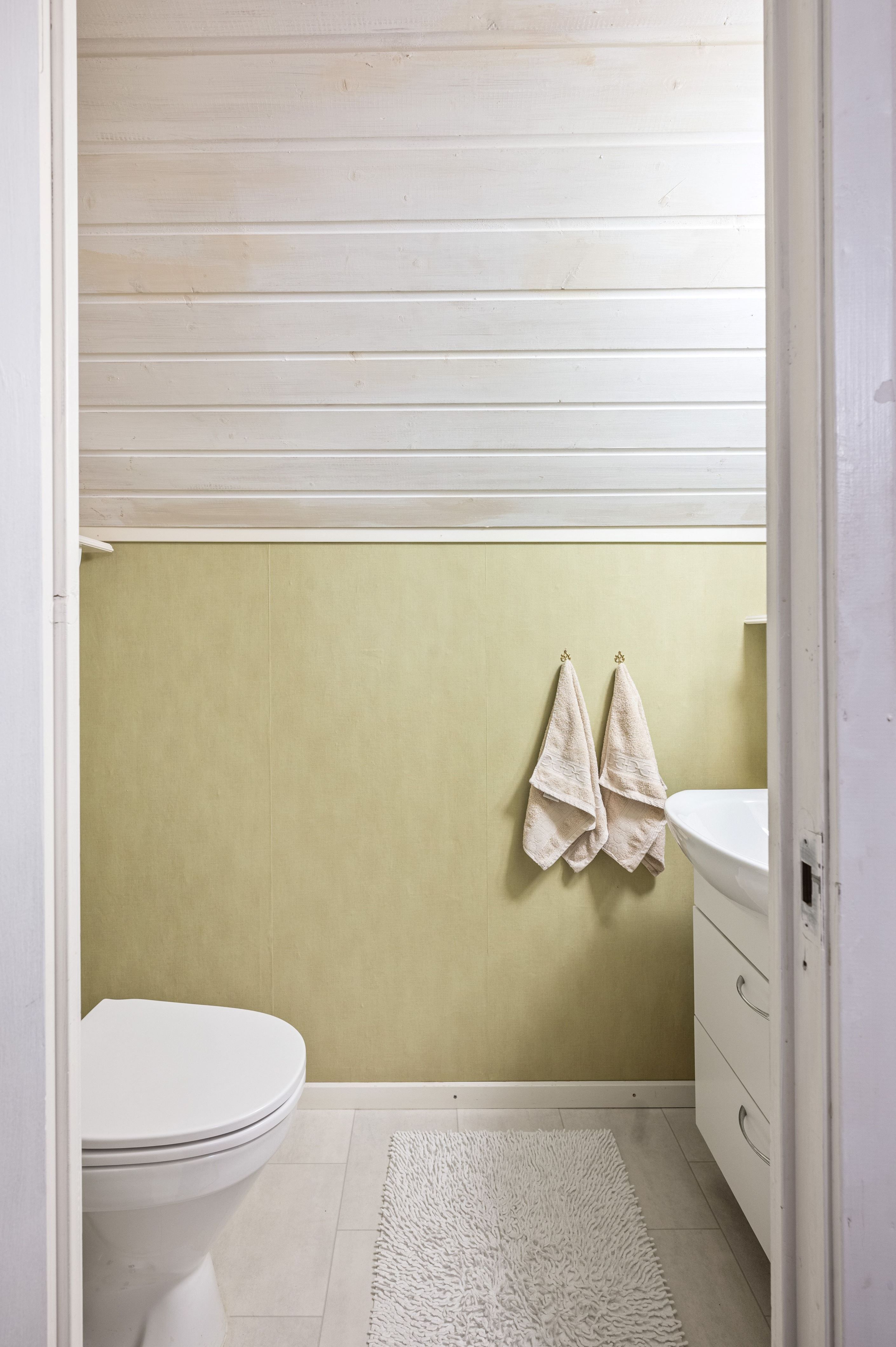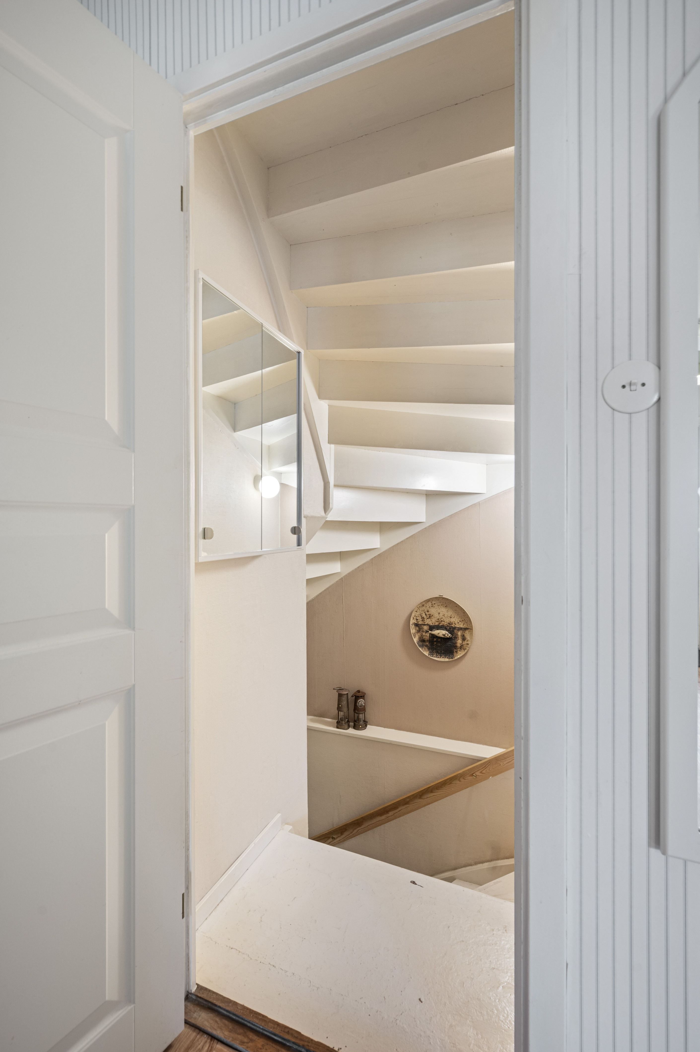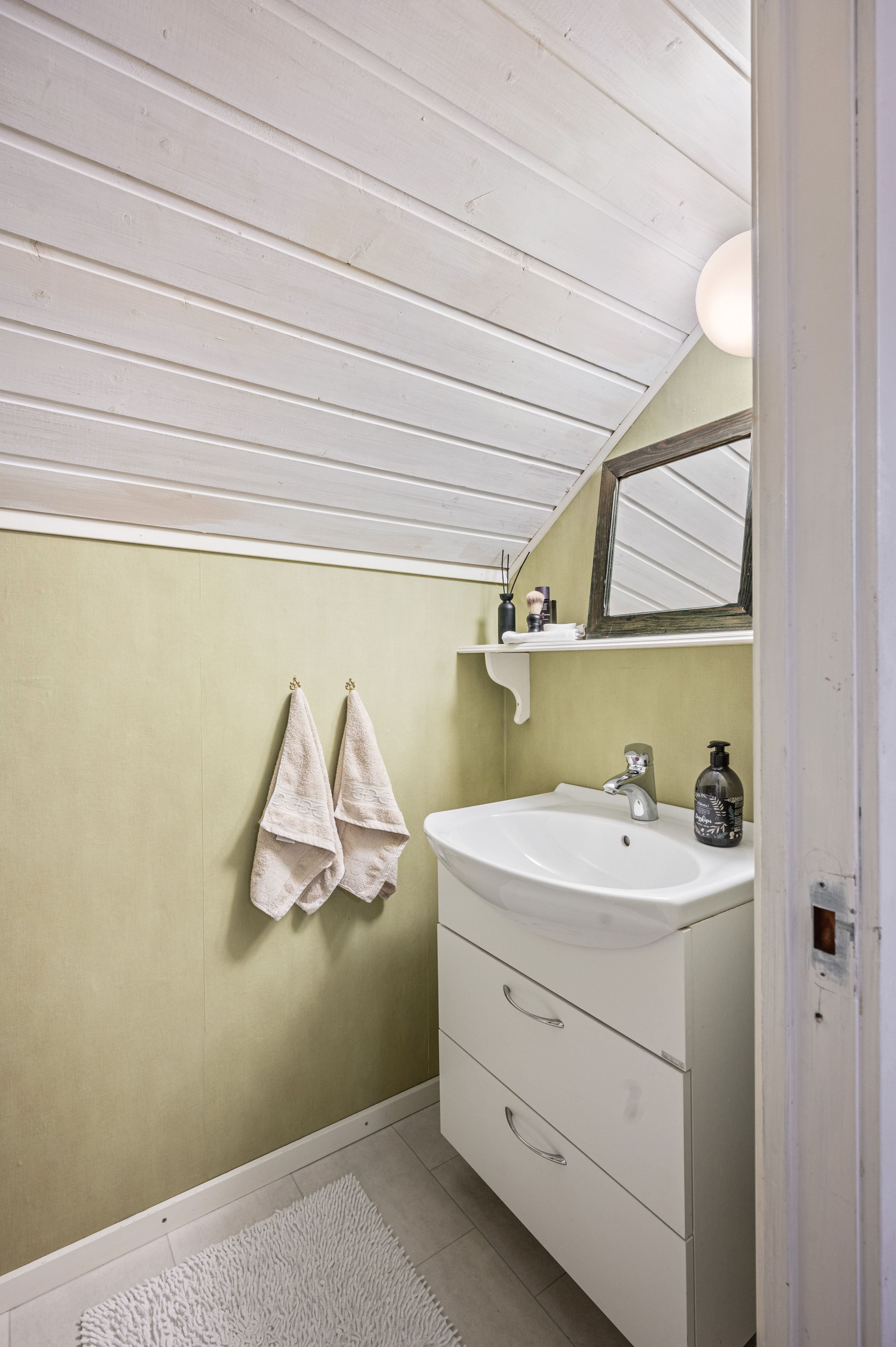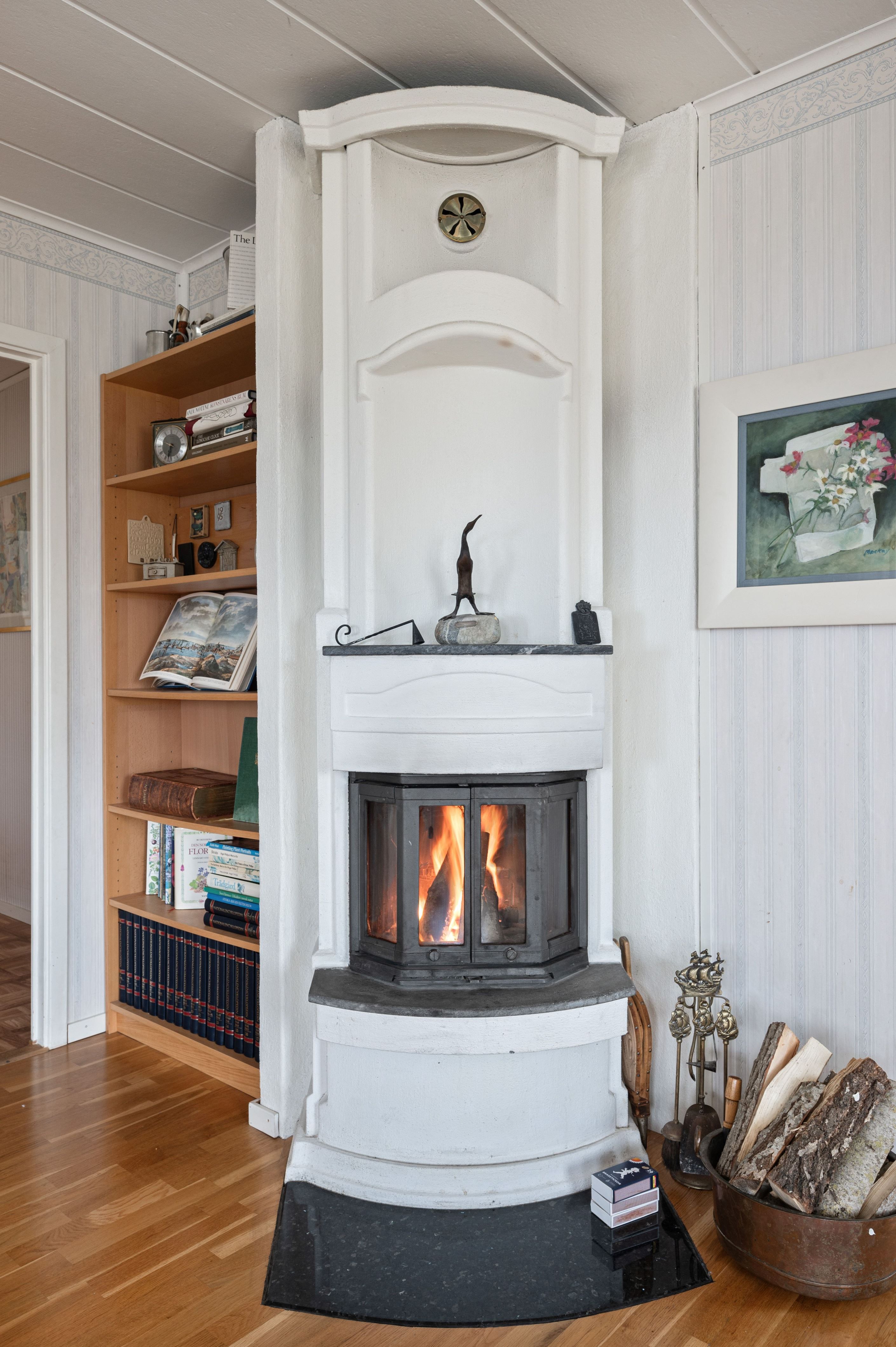 Övre plan inrymmer två sovrum samt toalett, på entréplan finns kök (2014) samt helkaklat badrum (2014) men också två sovrum, matrum och allrum. Från allrummet med eldstad når vi altanen i söderläge med sitt inglasade uterum vilket förlänger säsongen.