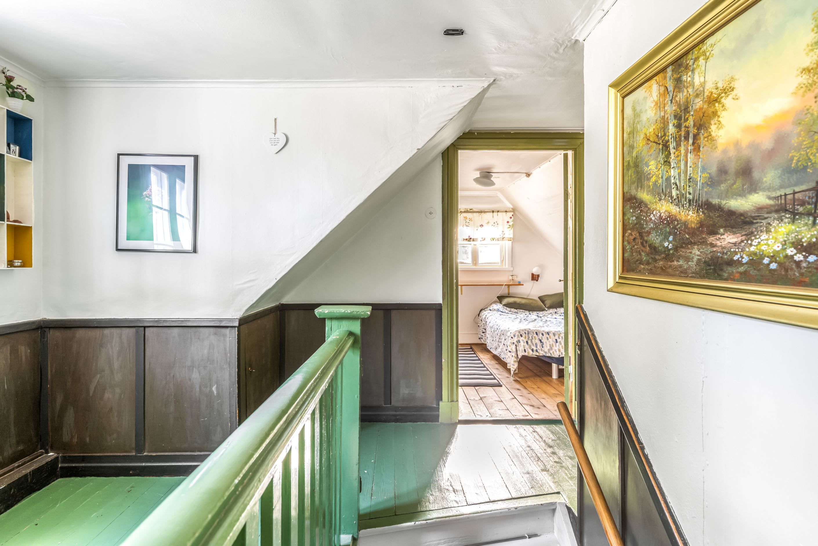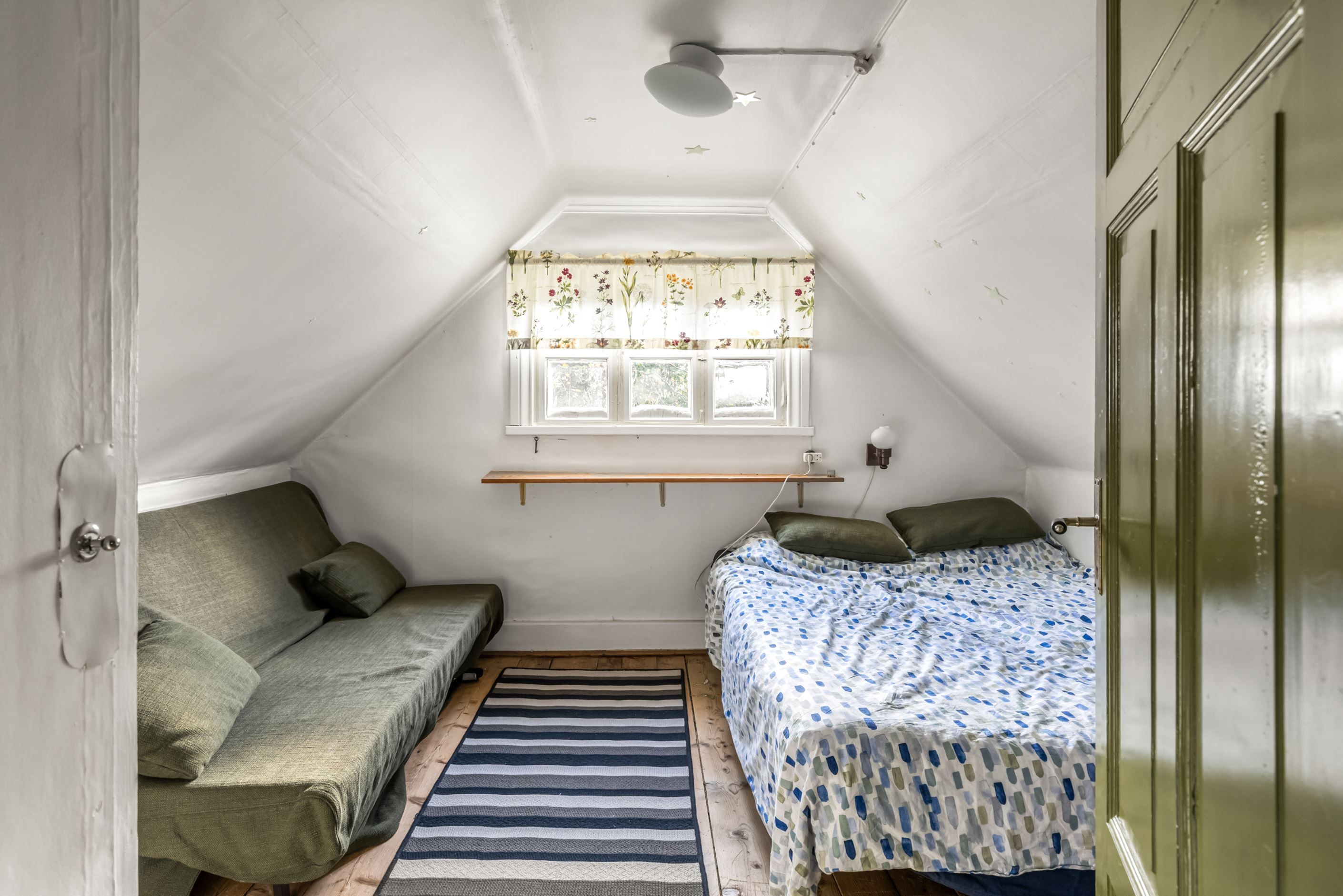 Övervåningen erbjuder 2-3 sovrum, badrum och balkonger i två väderstreck. Det finns även en mindre källardel som nås utifrån med plats till förvaring där ved/ oljepannan är placerad.