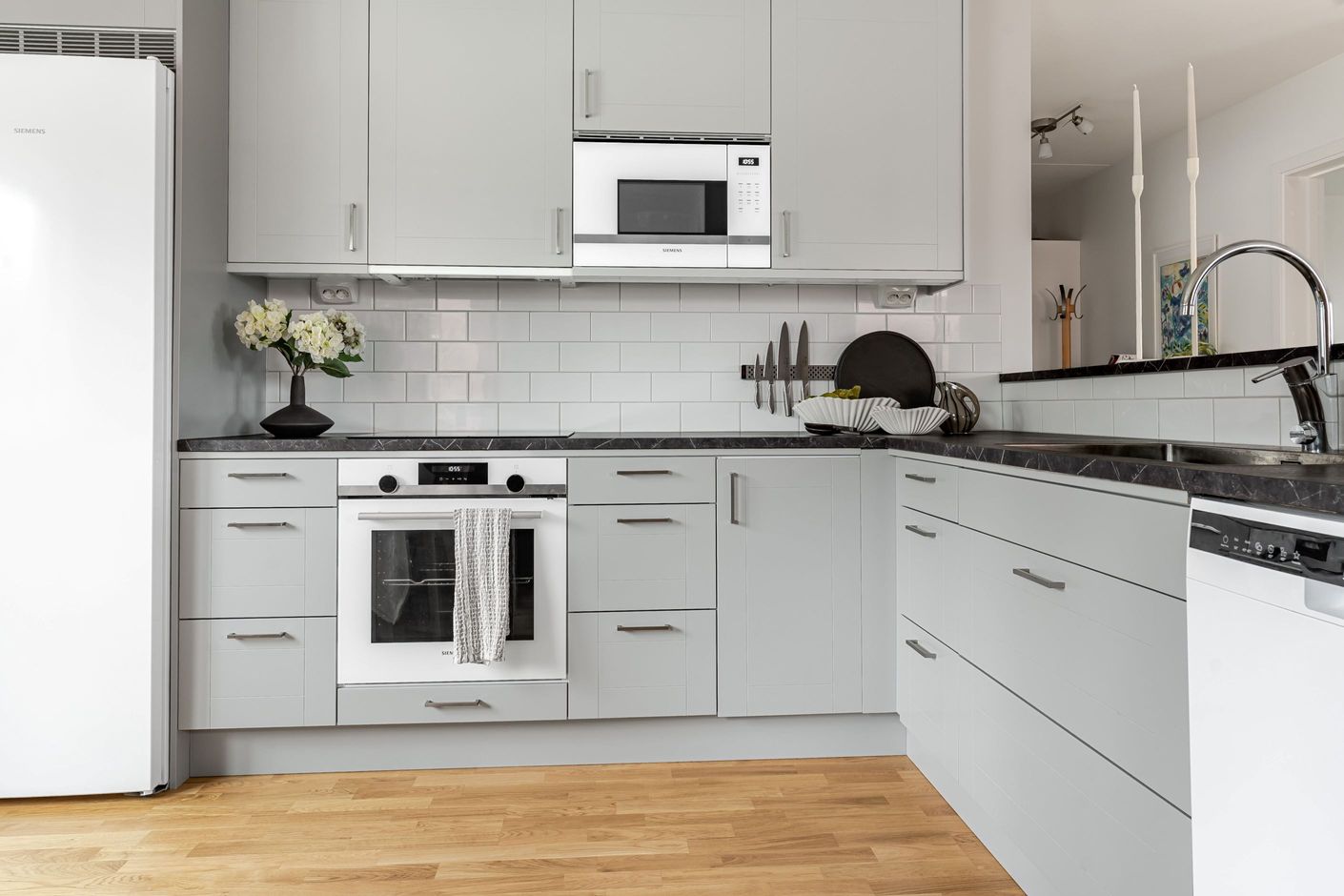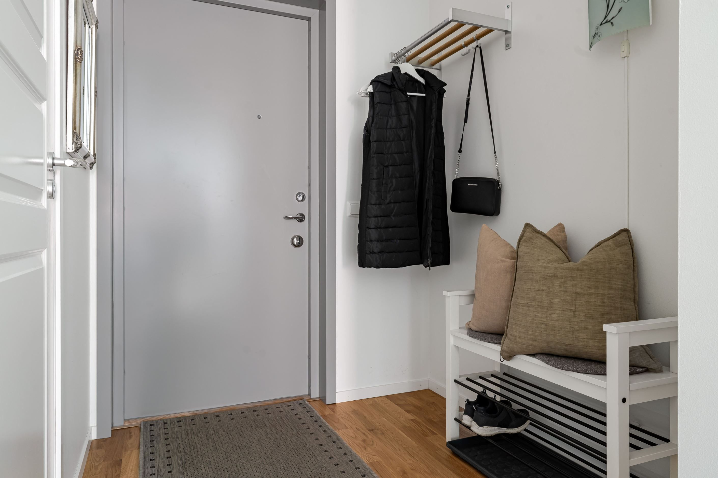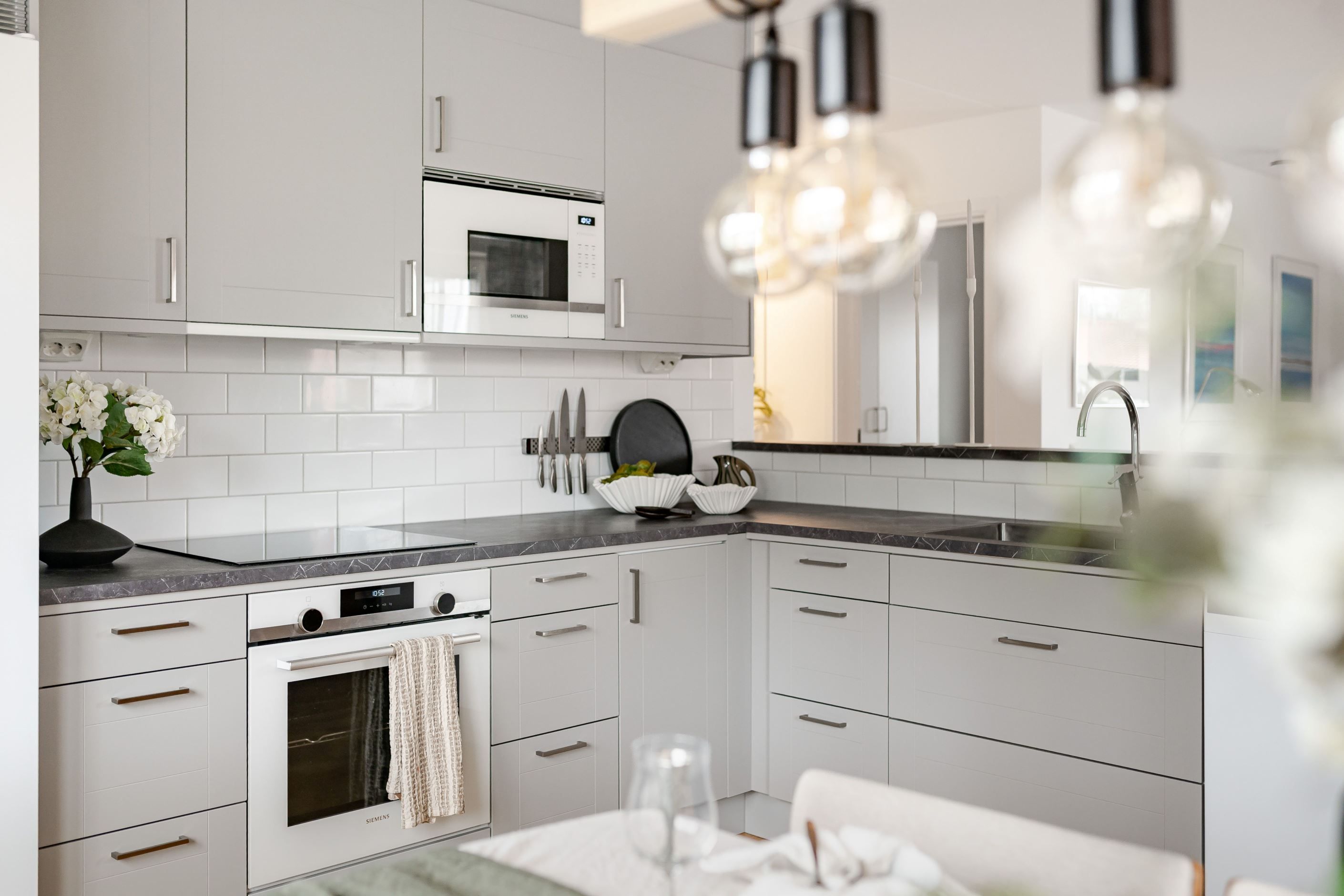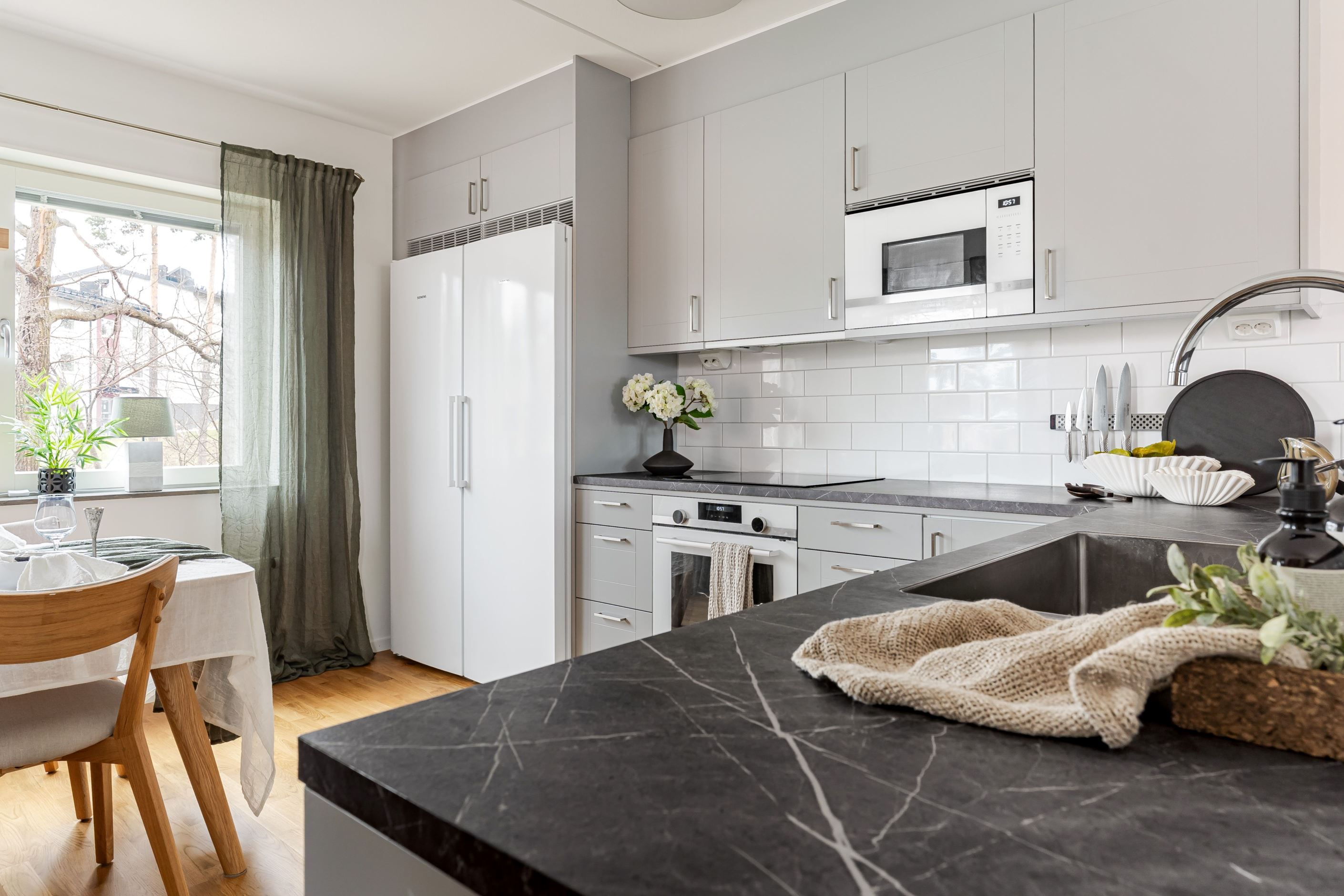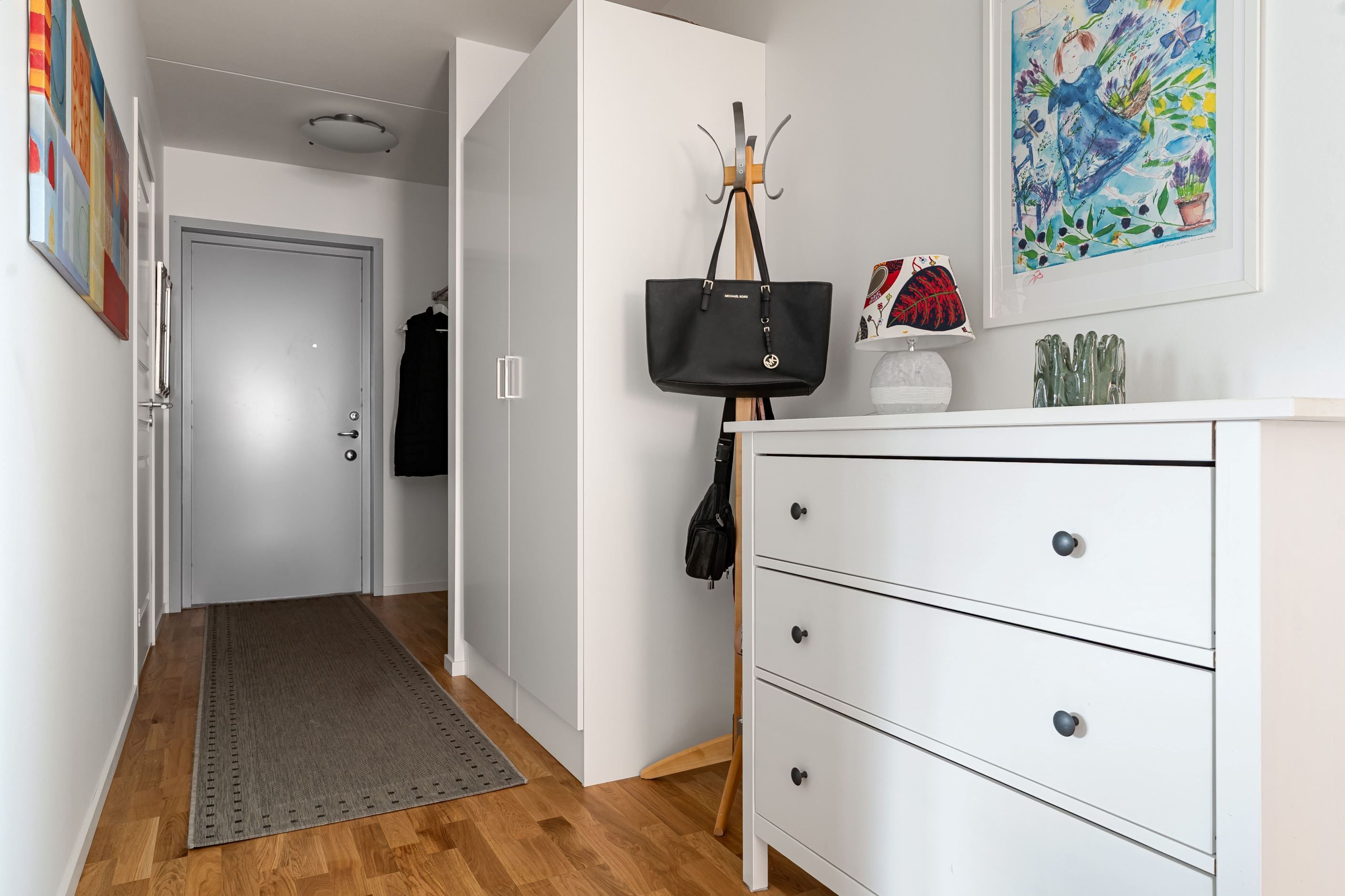 Redan i hallen möts du av en välkomnande känsla med gott om plats för både avhängning och förvaring. Bostaden präglas av en genomgående ljus och enhetlig interiör där parkettgolv och ljusa ytskikt skapar en trivsam helhet. Köket smälter fint samman med vardagsrummet i en öppen och social planlösning, där stora fönsterpartier ger ett fantastiskt ljusinsläpp och en naturlig plats för både matlagning och umgänge. Vardagsrummet bjuder in till avkoppling och sociala stunder, med direkt access till den inglasade balkongen som fungerar som en förlängning av bostaden under stora delar av året. Här kan du njuta av allt från morgonkaffet till långa, ljumma kvällar. Bostaden rymmer två rofyllda sovrum med bra förvaring och flexibla användningsmöjligheter, samt ett fräscht badrum med egna tvättmöjligheter som förenklar vardagen.