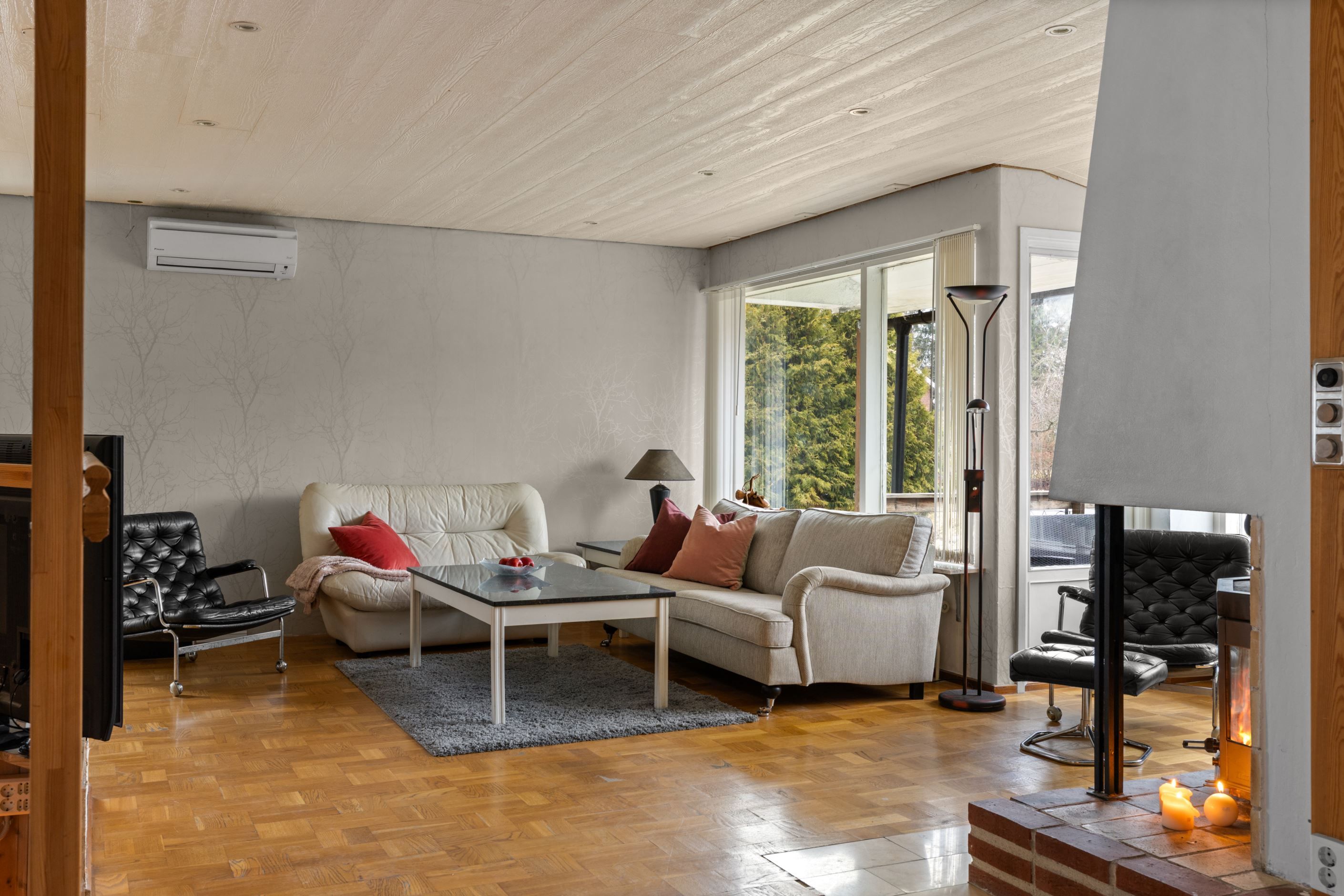 Välkommen till Slåttervägen 50 i Tyresö – en rymlig enplansvilla med källare om totalt ca 190 kvm, belägen på en tomt om 1 090 kvm. Här erbjuds ett hem med gott om utrymme för familjeliv, umgänge och hobby, och med en tydlig möjlighet för dig som vill skapa något riktigt fint genom att sätta din egen prägel. Entréplanet tar emot med hall och WC och öppnar vidare upp mot vardagsrummet där kaminens värme sätter stämningen, kompletterat med luftvärmepump för extra komfort. Köket har bra arbetsytor och en naturlig koppling till uteplatsen med utgång till altan och trädgård, vilket gör det enkelt att låta vardagen flyta ut under sommarhalvåret. Intill finns en matplats som passar både vardagsmiddagar och större sällskap. På planet finns dessutom badrum med golvvärme samt två sovrum. För den som uppskattar avkoppling och livskvalitet finns både bastu och pool som ger hemmet en extra dimension och fina möjligheter till återhämtning hemma.