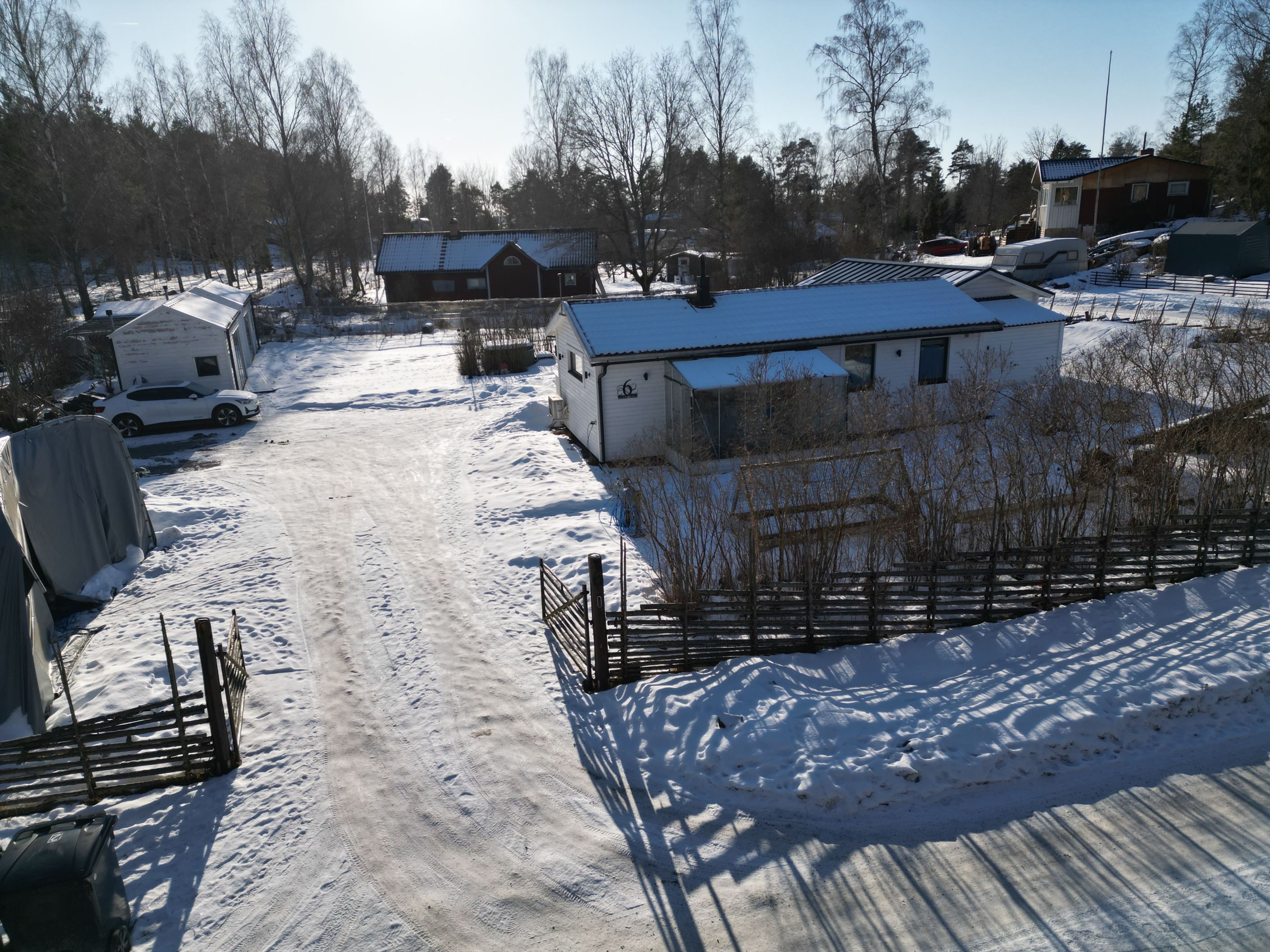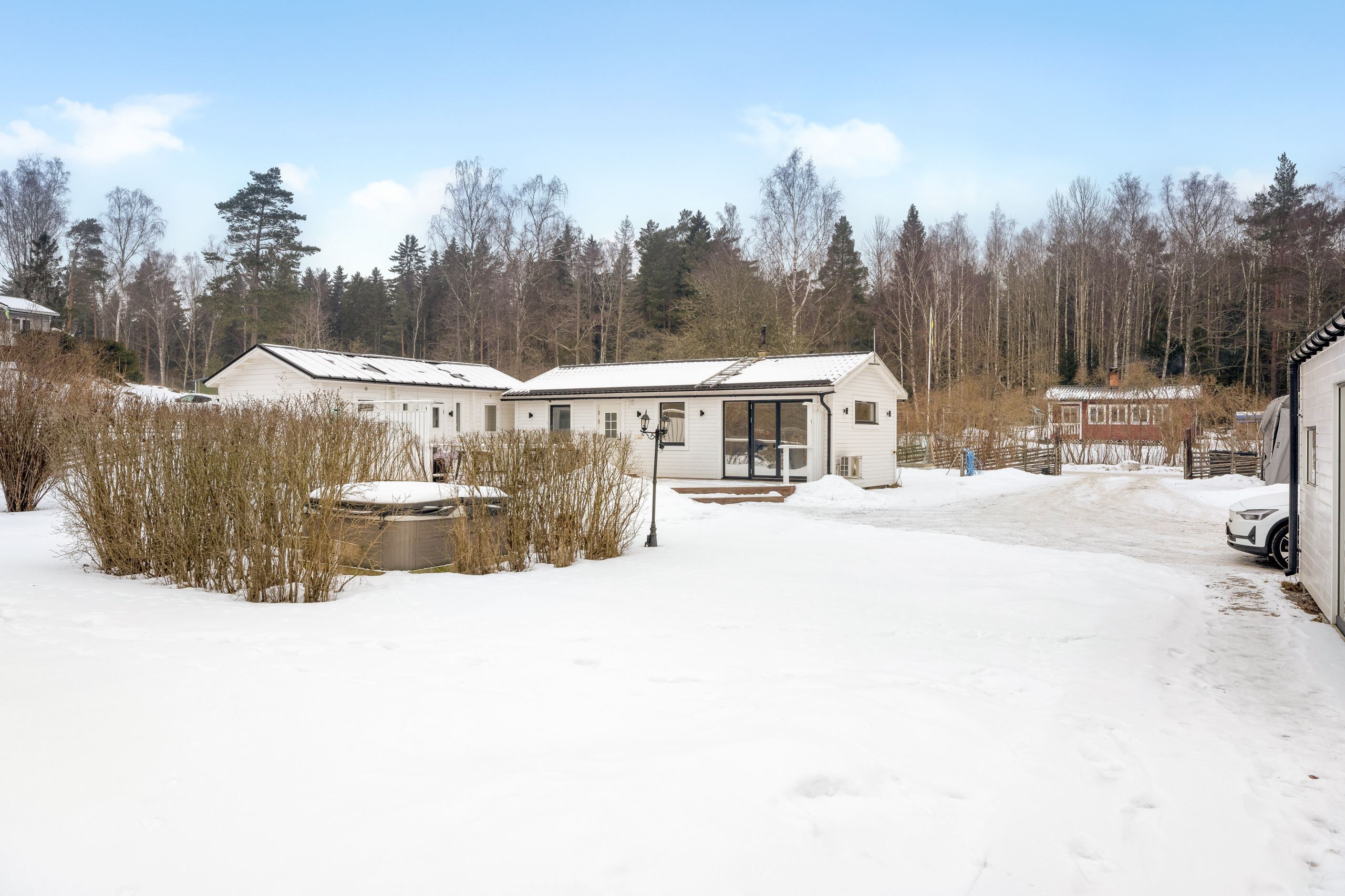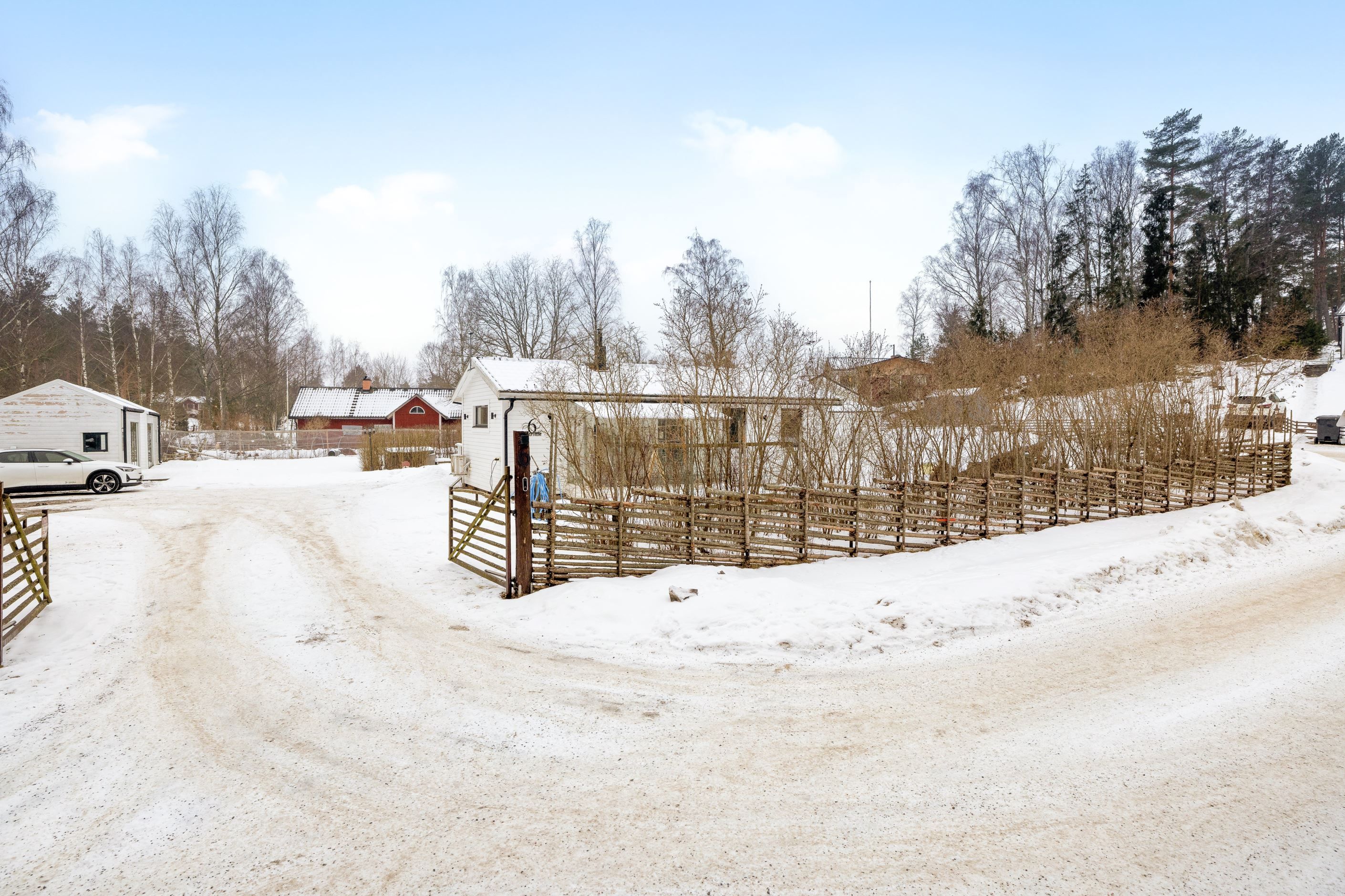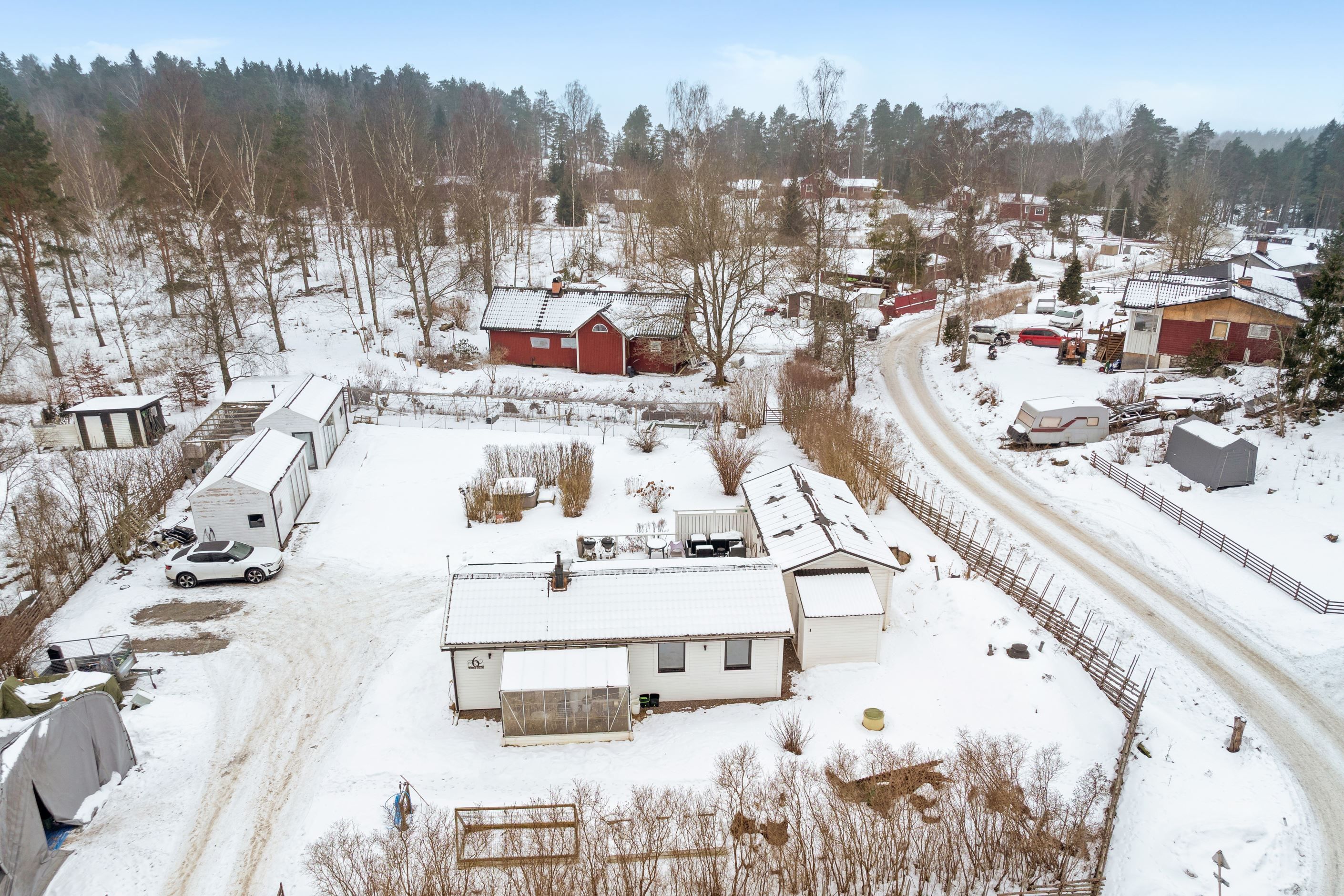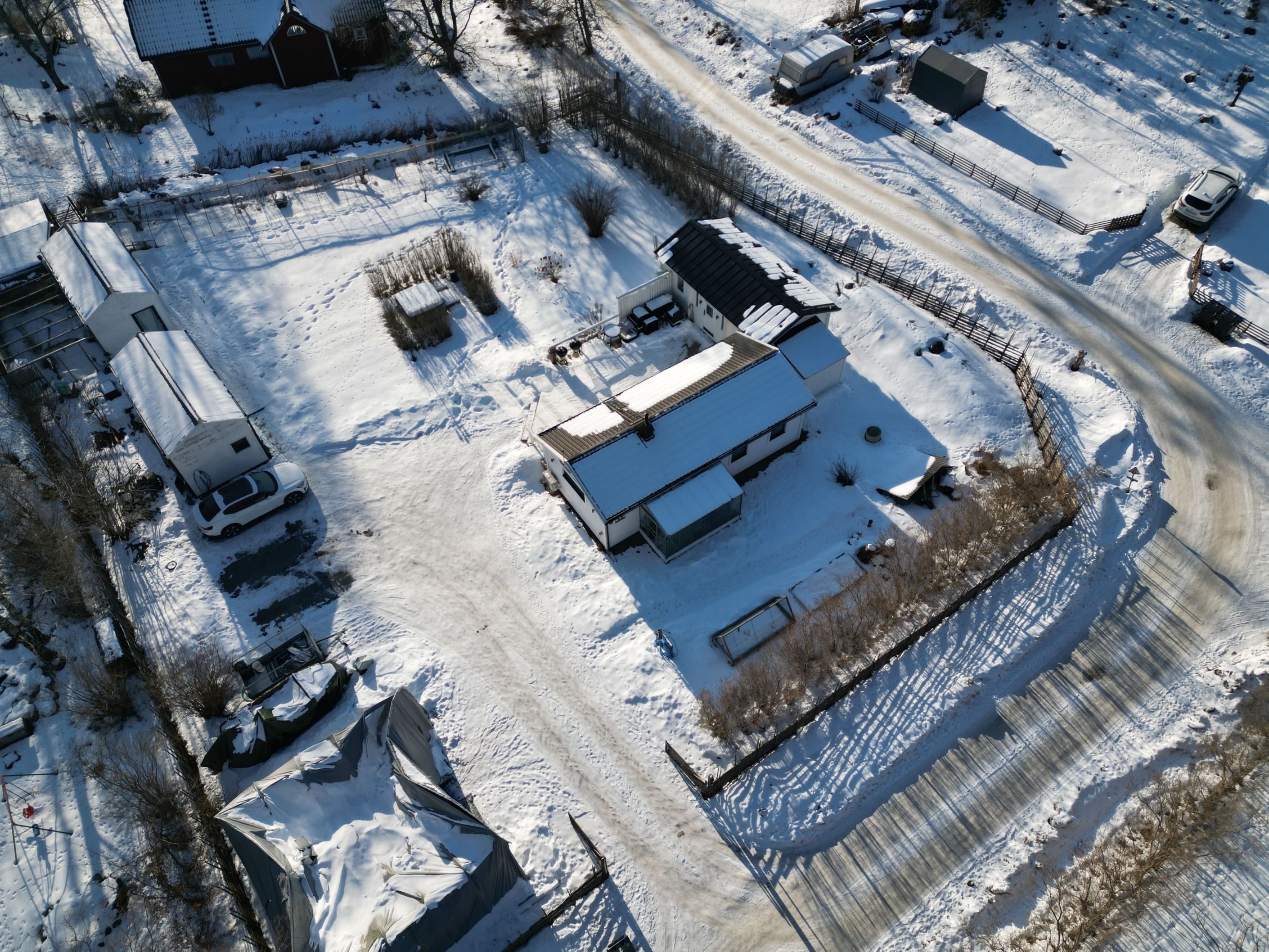 Den breda uppfarten erbjuder gott om plats för flera bilar, släp och även husbil – praktiskt och bekvämt för både vardag och fritid.