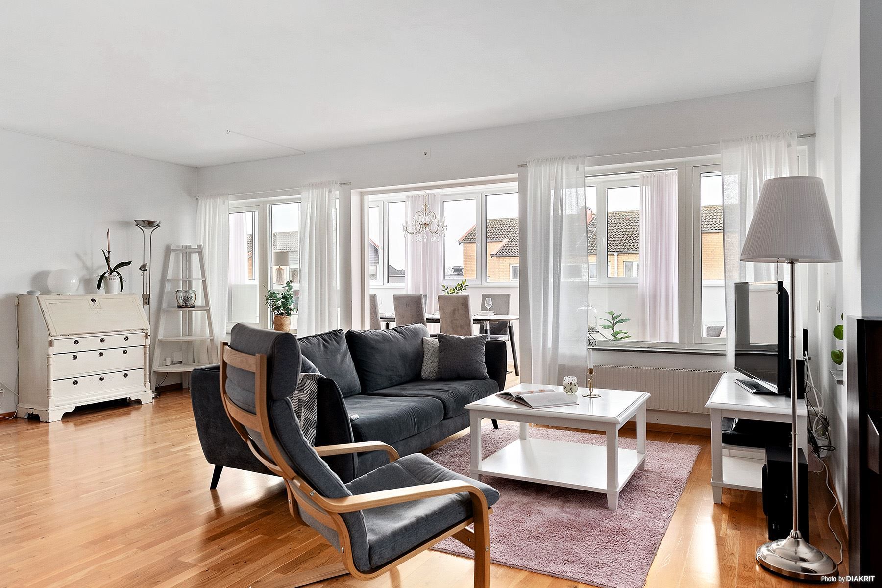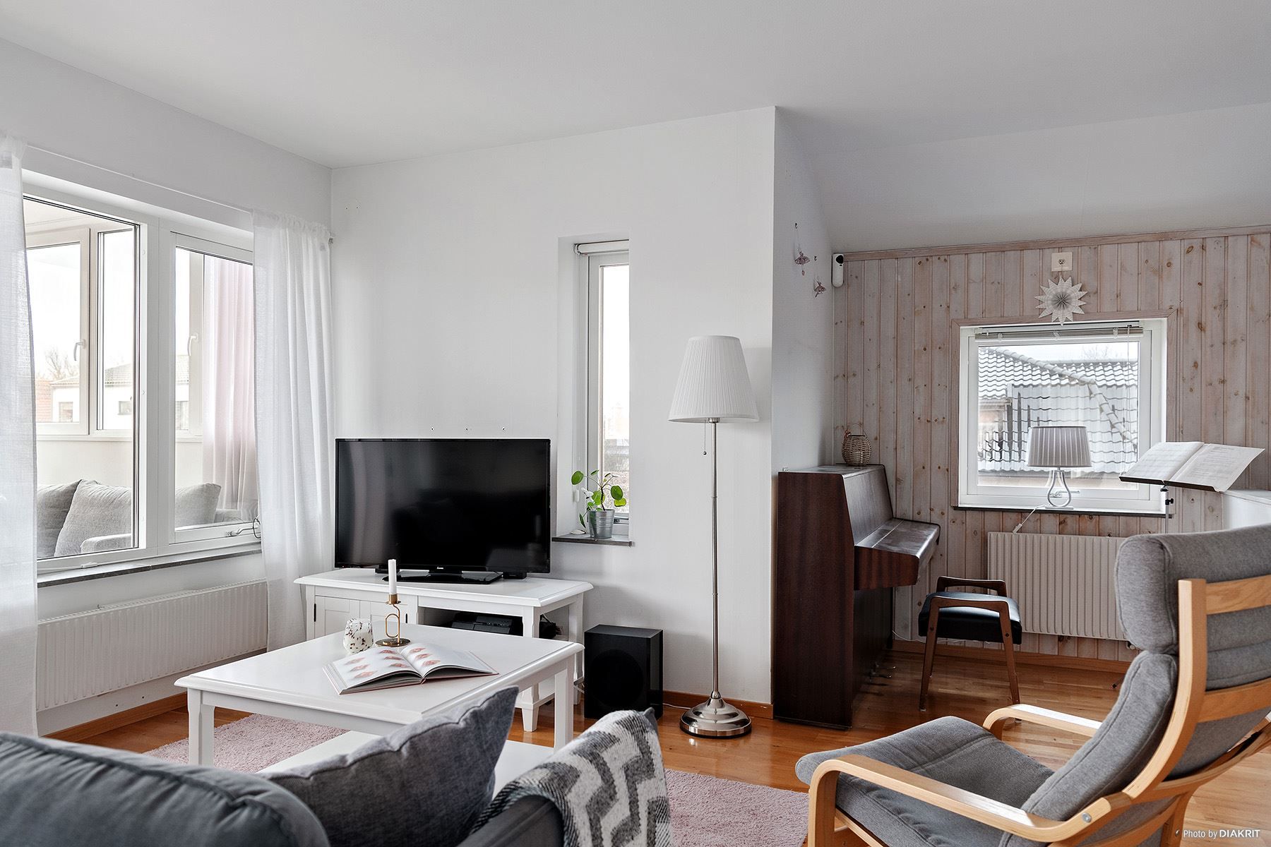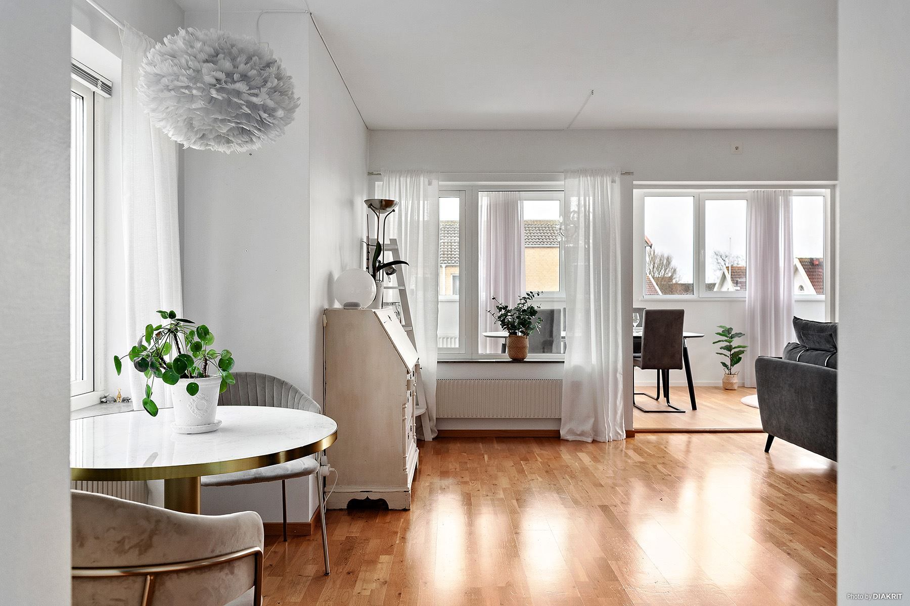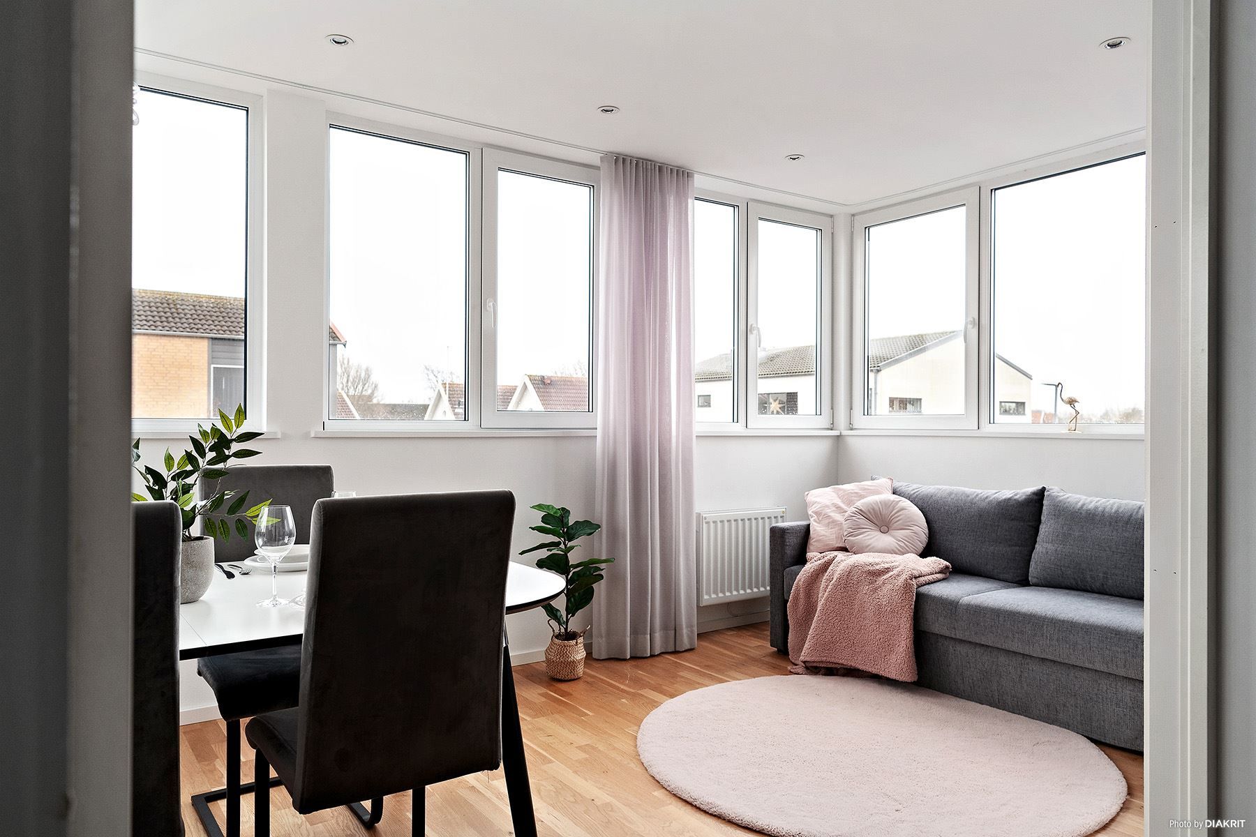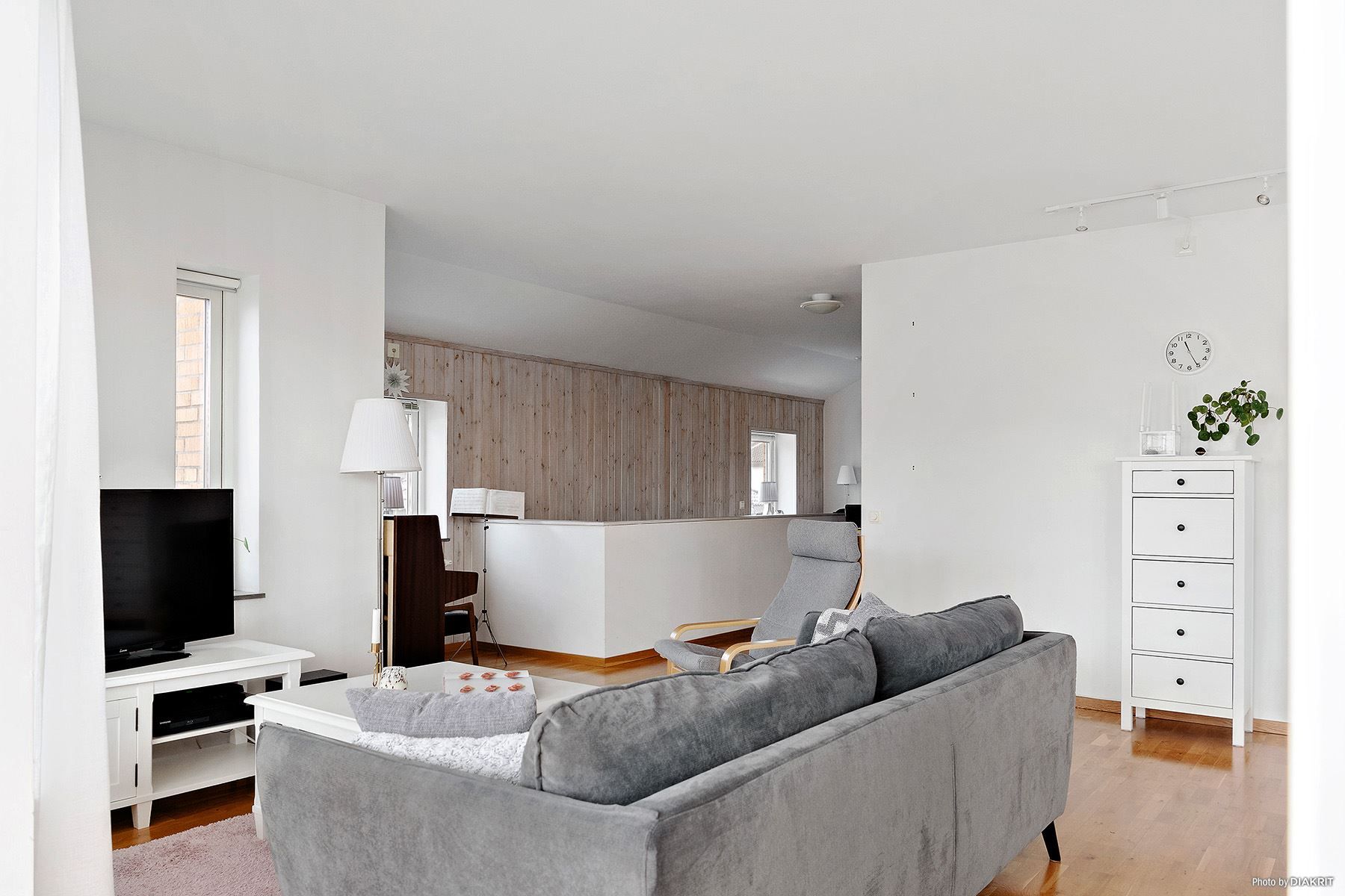 Genom din egen entré tar du dig in i bostad med avhängningsmöjligheter direkt innanför dörren i en praktisk skjutdörrgarderob. Trappen upp leder dig sedan upp och känsla av att äntligen vara hemma sköljer över dig. Här möts du av ett vardagsrum där rymd och ljus samspelar för att skapa en inbjudande atmosfär – den självklara platsen för både avkoppling och umgänge. En tidigare inglasad balkong om 18 kvm har smakfullt integrerats i bostaden, vilket ger ett extra sällskapsrum där du kan njuta av morgonkaffet med utsikt över området. Behöver du ett ytterligare sovrum? Med enkla medel kan detta flexibla utrymme omvandlas för att passa just dina behov. Köket är en dröm för den som uppskattar både stil och funktion. Här finns gott om förvaring, generösa arbetsytor och flera fönsterpartier som släpper in ljuset och ger en härlig vy över omgivningen. Tack vare en diskret fönsterfilm bevaras känslan av rymd och utsikt, samtidigt som insynen begränsas – en perfekt balans mellan öppenhet och avskildhet. Badrummet är helkaklat i smakfulla, neutrala toner och utrustat med en stilren dusch samt en praktisk tvättavdelning för en bekväm vardag. Bostaden erbjuder dessutom två väl tilltagna sovrum, där det ena stoltserar med en rymlig klädkammare – en lyxig detalj som gör det enkelt att hålla ordning och skapa en harmonisk miljö. Här får du ett hem där varje kvadratmeter är genomtänkt, där ljus, rymd och funktion samverkar för att skapa en trivsam och hemtrevlig atmosfär.