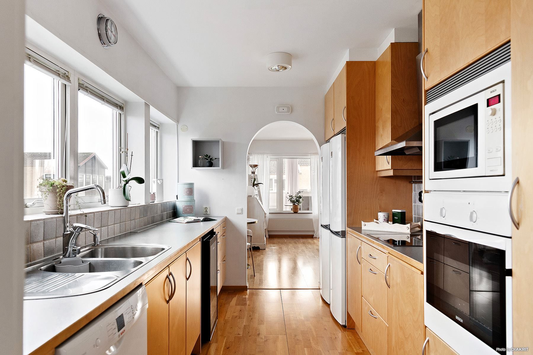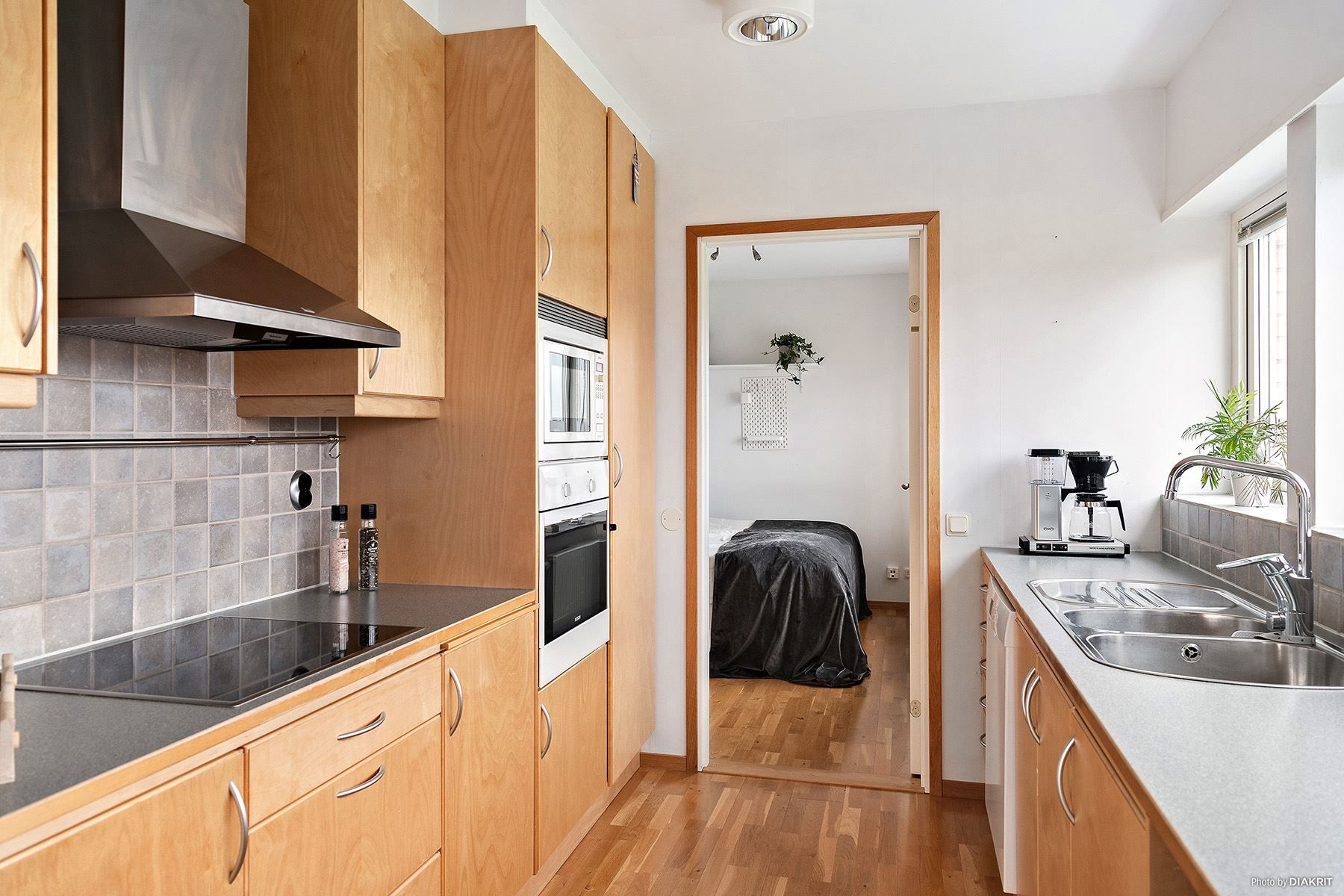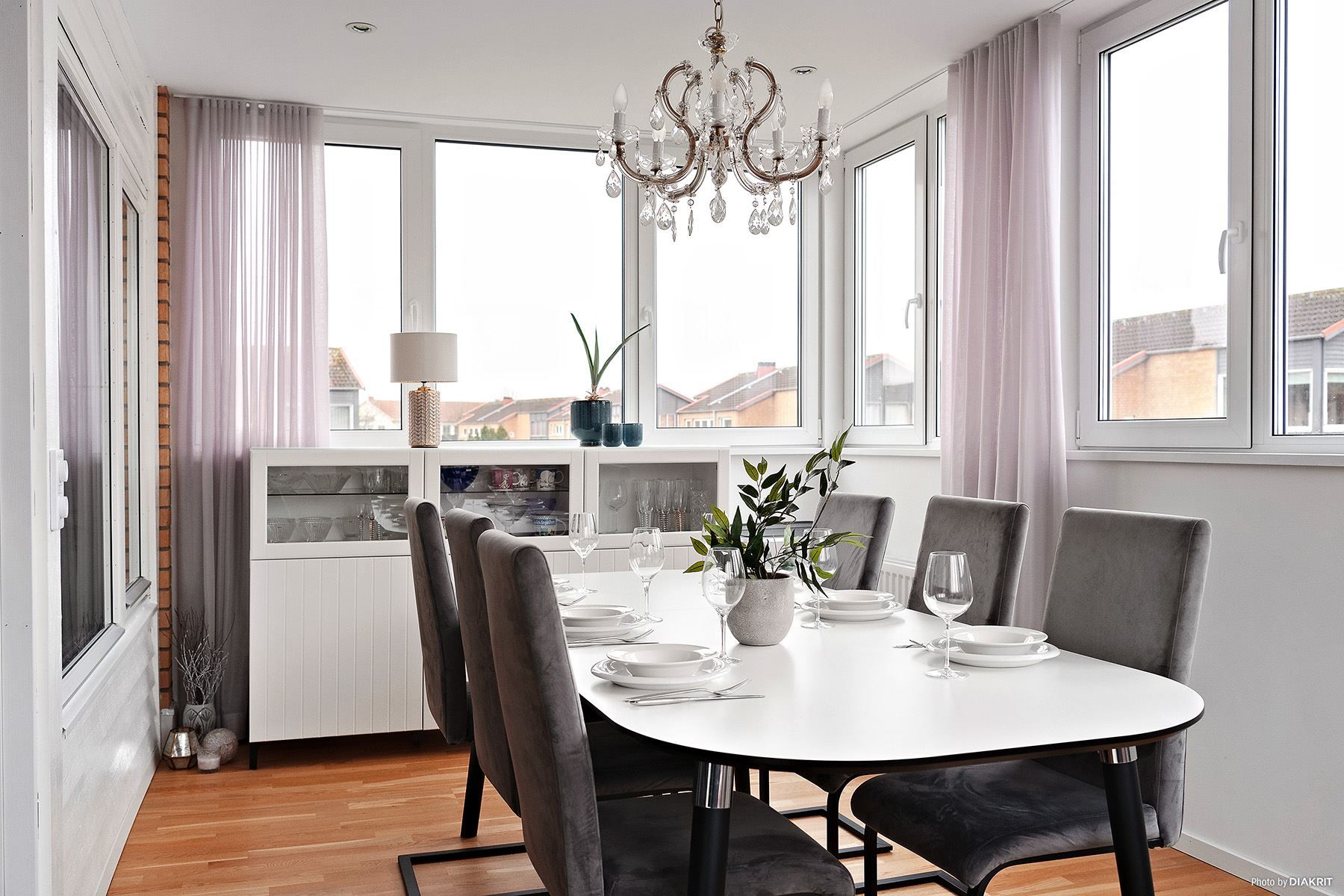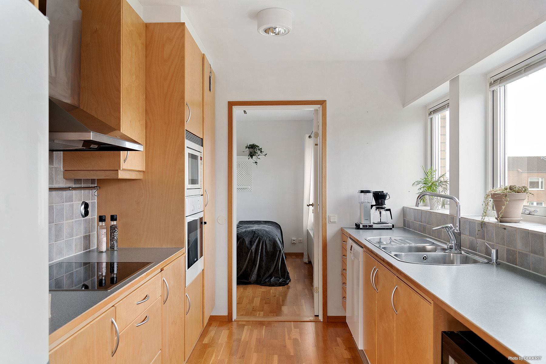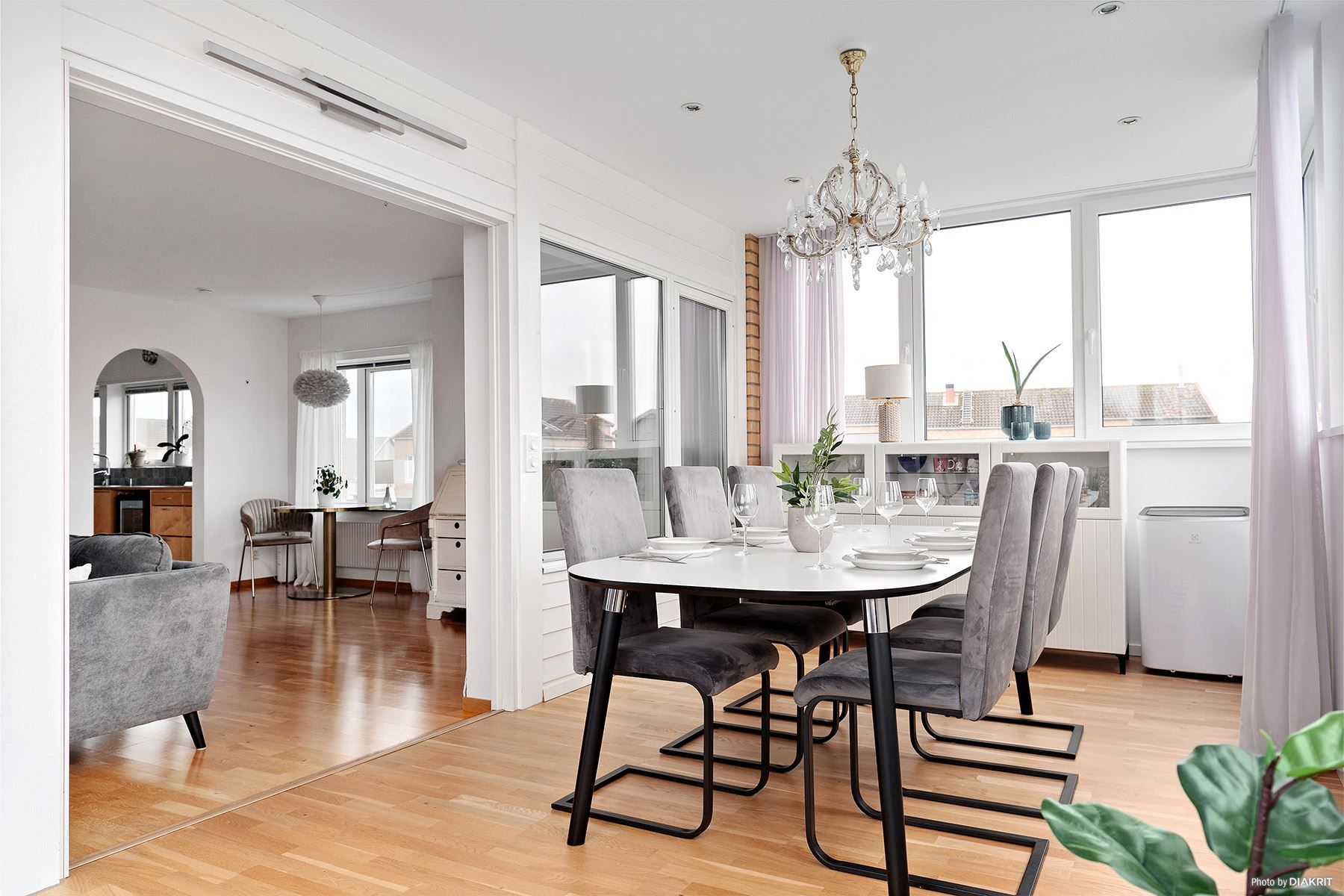 Genom din egen entré tar du dig in i bostad med avhängningsmöjligheter direkt innanför dörren i en praktisk skjutdörrgarderob. Trappen upp leder dig sedan upp och känsla av att äntligen vara hemma sköljer över dig. Här möts du av ett vardagsrum där rymd och ljus samspelar för att skapa en inbjudande atmosfär – den självklara platsen för både avkoppling och umgänge. En tidigare inglasad balkong om 18 kvm har smakfullt integrerats i bostaden, vilket ger ett extra sällskapsrum där du kan njuta av morgonkaffet med utsikt över området. Behöver du ett ytterligare sovrum? Med enkla medel kan detta flexibla utrymme omvandlas för att passa just dina behov. Köket är en dröm för den som uppskattar både stil och funktion. Här finns gott om förvaring, generösa arbetsytor och flera fönsterpartier som släpper in ljuset och ger en härlig vy över omgivningen. Tack vare en diskret fönsterfilm bevaras känslan av rymd och utsikt, samtidigt som insynen begränsas – en perfekt balans mellan öppenhet och avskildhet. Badrummet är helkaklat i smakfulla, neutrala toner och utrustat med en stilren dusch samt en praktisk tvättavdelning för en bekväm vardag. Bostaden erbjuder dessutom två väl tilltagna sovrum, där det ena stoltserar med en rymlig klädkammare – en lyxig detalj som gör det enkelt att hålla ordning och skapa en harmonisk miljö. Här får du ett hem där varje kvadratmeter är genomtänkt, där ljus, rymd och funktion samverkar för att skapa en trivsam och hemtrevlig atmosfär.