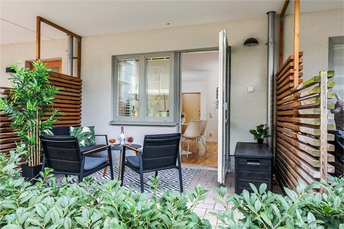 Här möts du av en social och välplanerad layout där kök och vardagsrum samspelar på ett naturligt sätt och leder vidare ut till den härliga uteplatsen. Perfekt för avkoppling i solen eller för att bjuda in till trevliga grillkvällar med vänner och familj.