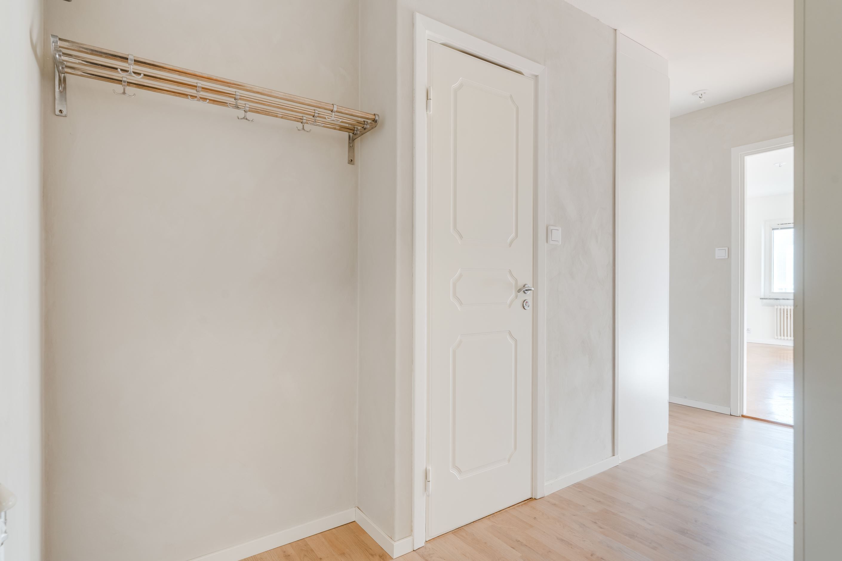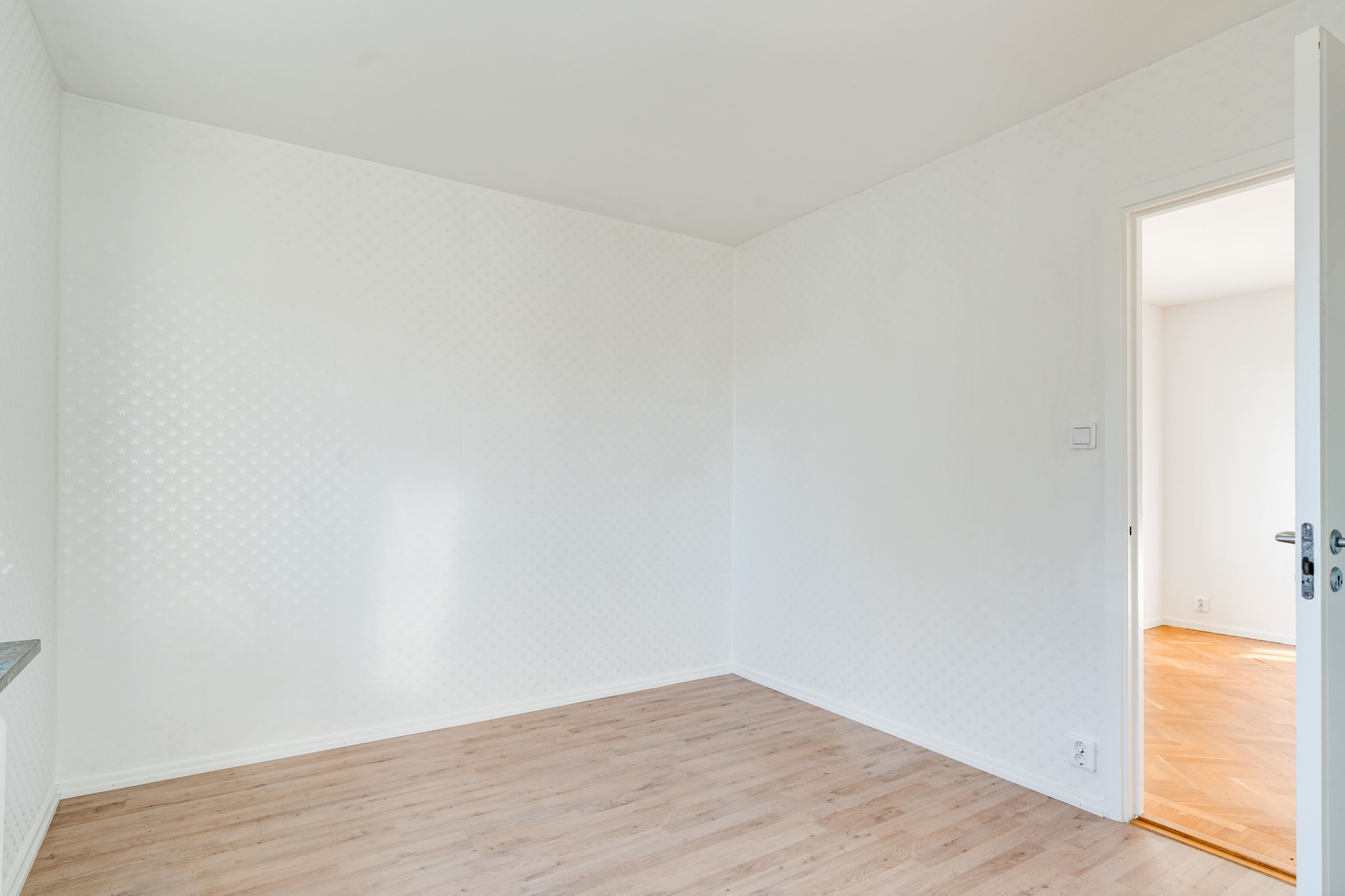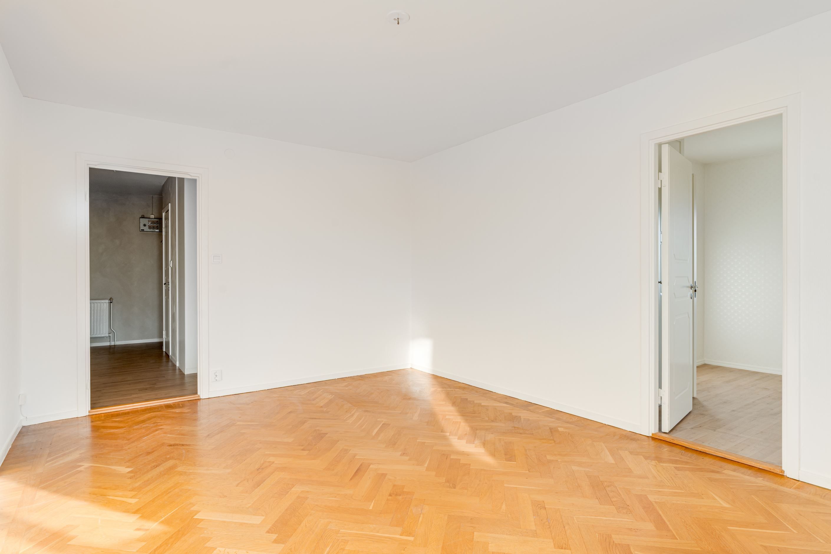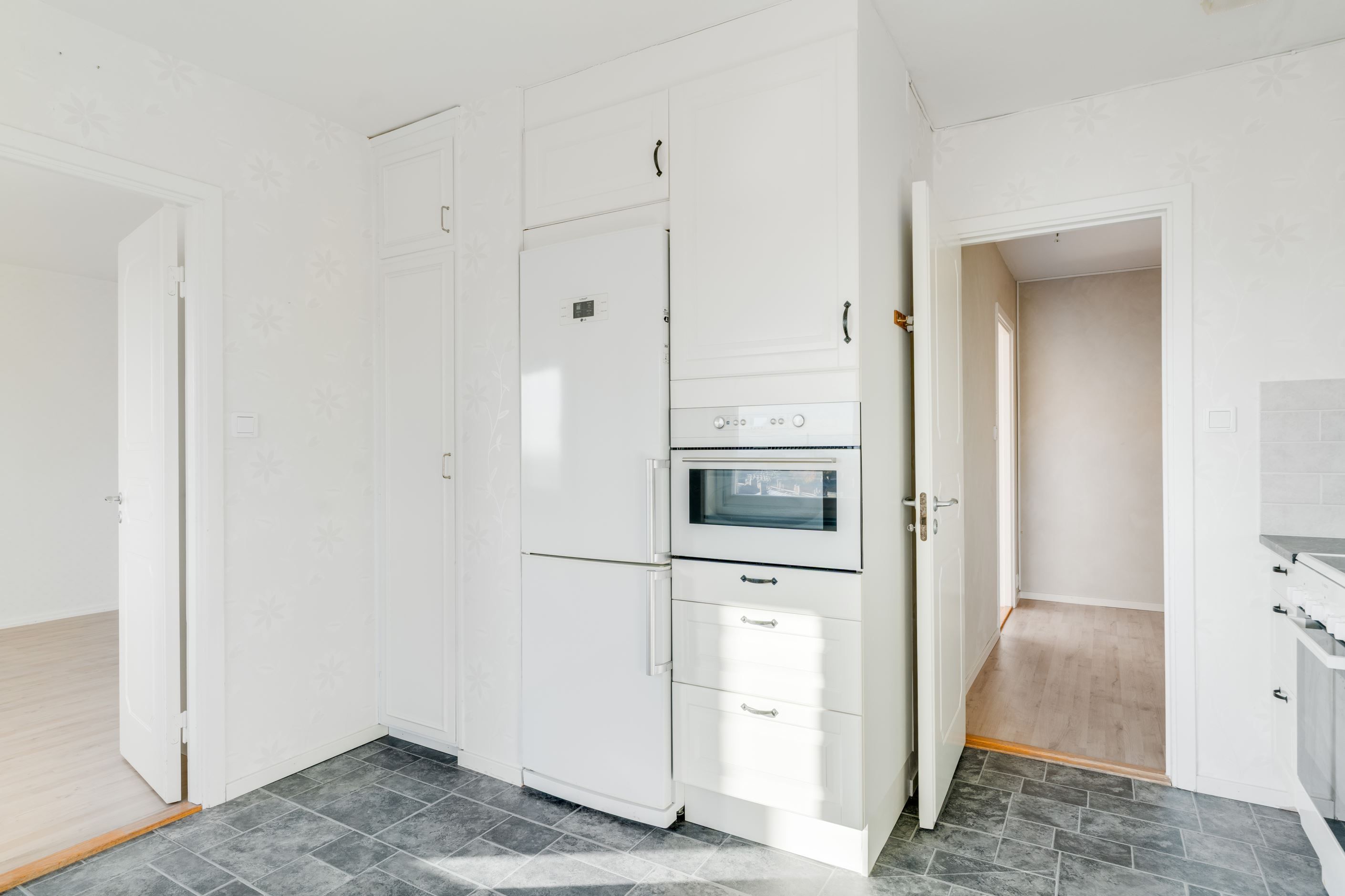 Bostaden har en genomtänkt planlösning med ett stilrent och rymligt kök som erbjuder gott om arbetsyta och förvaring. Vardagsrummet är ljust med vacker parkett och plats för både soffgrupp och matbord, vilket skapar en trivsam och social atmosfär. Från vardagsrummet når du den inglasade balkongen som blir ett härligt extra rum med utsikt över takåsar och stadens silhuett. Sovrummet är rofyllt med plats för dubbelsäng och förvaring, och badrummet är fräscht och funktionellt.