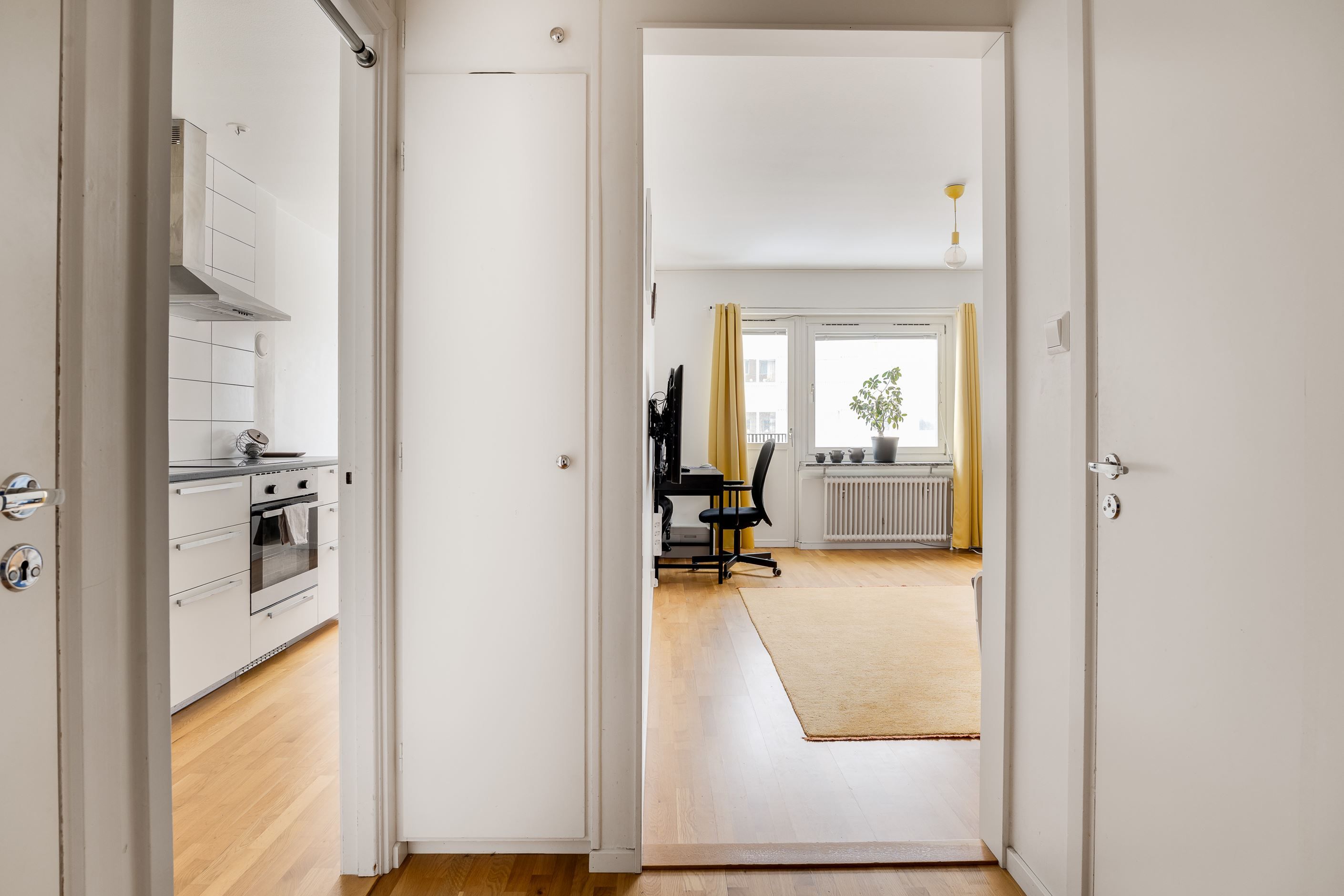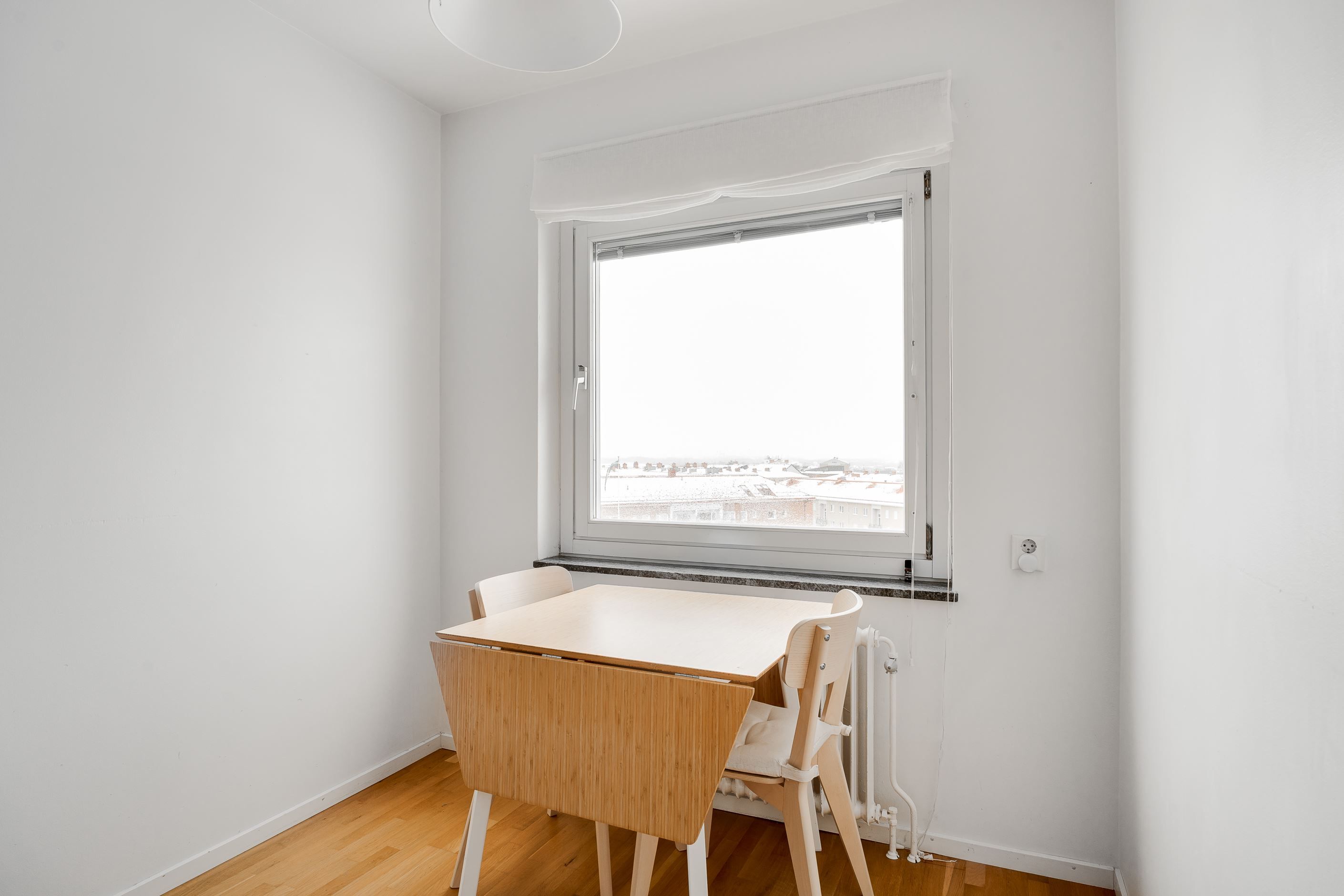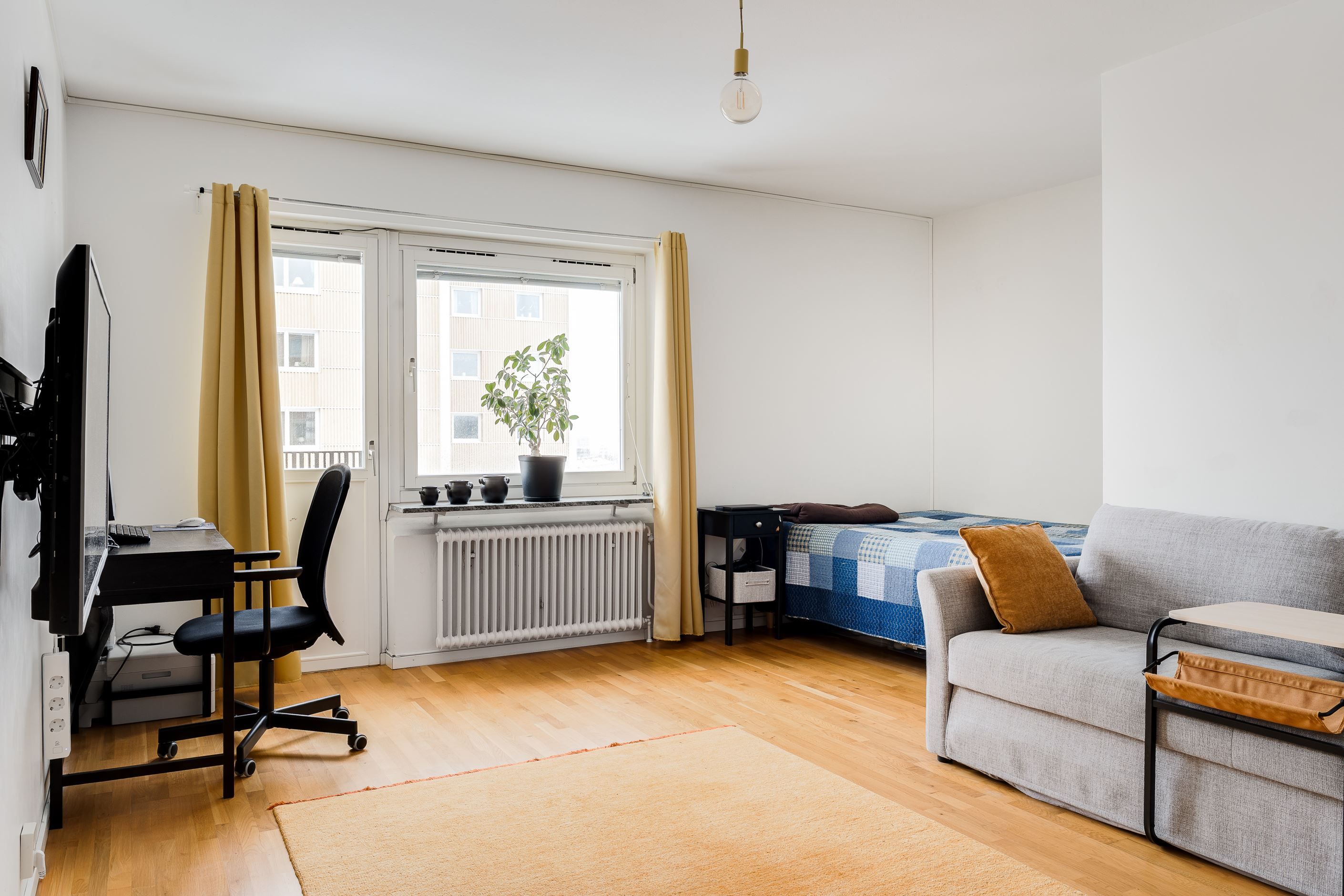 Välkommen till Smedstugugatan 14 och denna ljusa och välplanerade lägenhet belägen högt upp på 7:e våningen med en härlig utsikt över staden. Här erbjuds ett trivsamt boende med stora fönster som ger ett fint ljusinsläpp och en luftig känsla genom hela bostaden. Lägenheten har ett nytt och stilrent kök med goda arbetsytor och plats för matbord, vilket gör det både funktionellt och trevligt för vardagens måltider. Allrummet är lättmöblerat och rymmer både soffgrupp, säng och arbetsplats, vilket skapar en flexibel planlösning som passar många behov. De ljusa ytskikten tillsammans med parkettgolv bidrar till ett modernt och ombonat intryck.