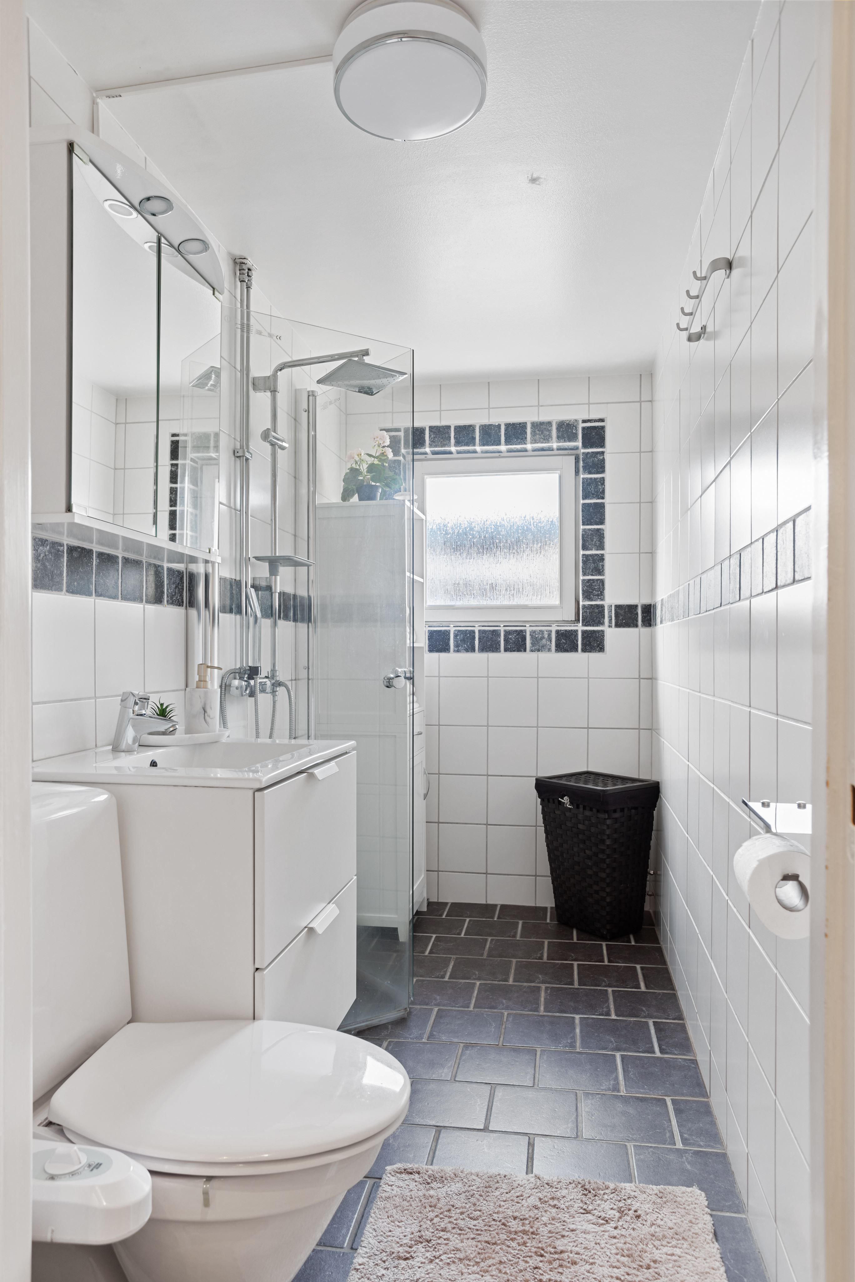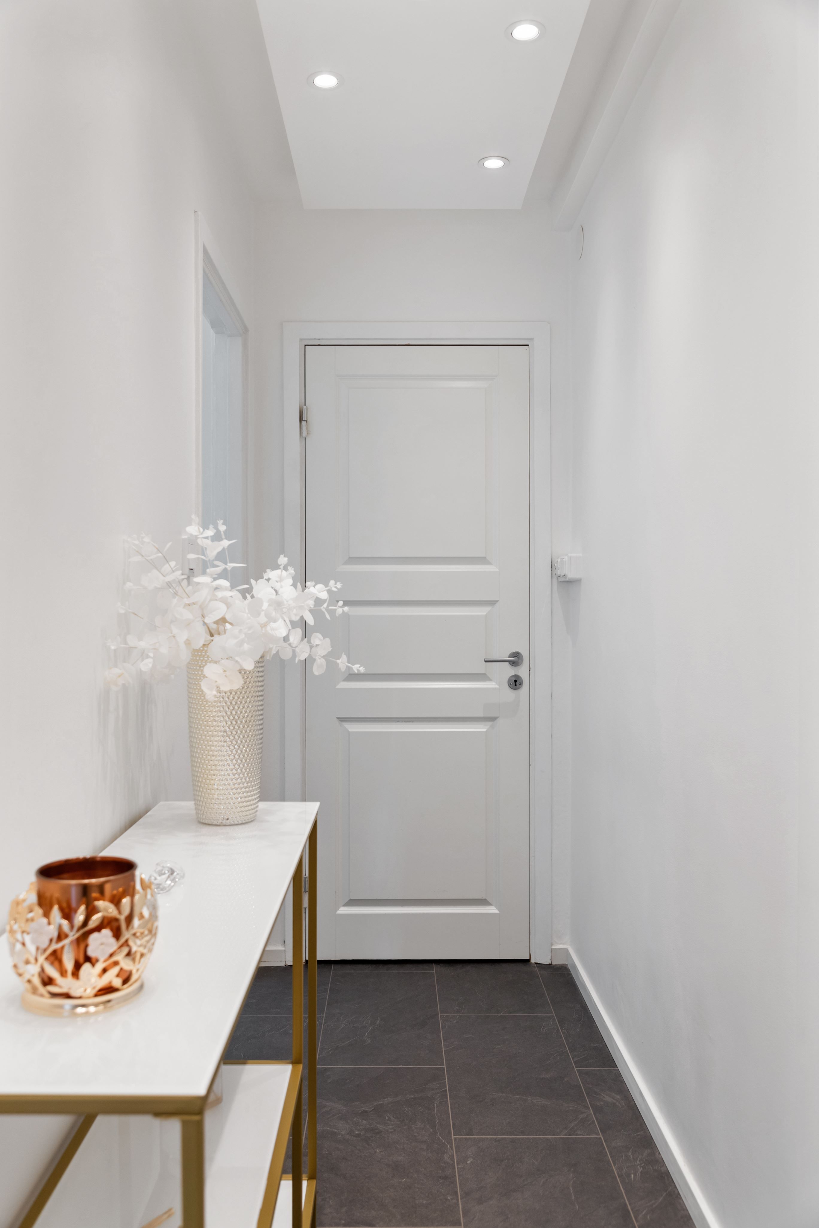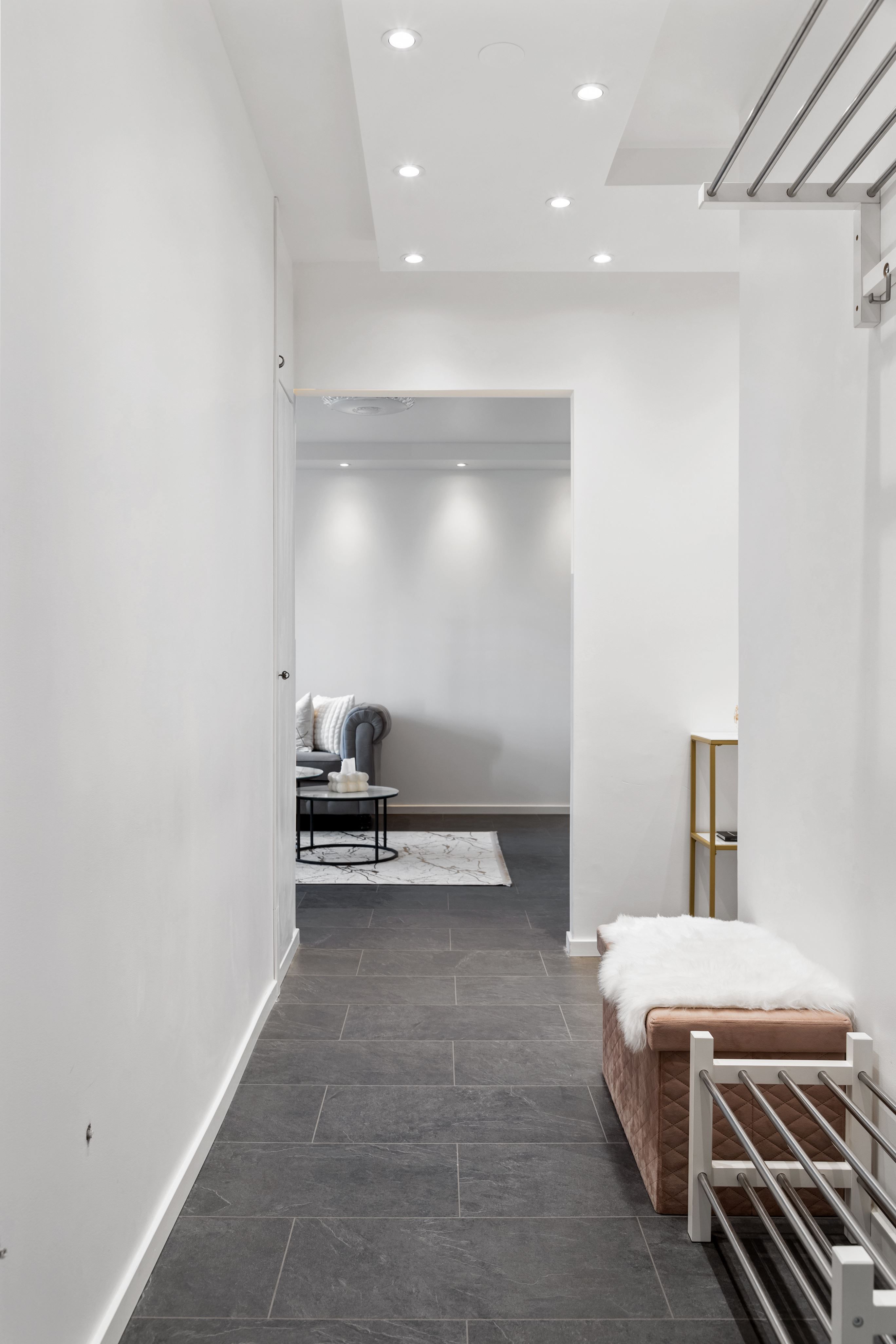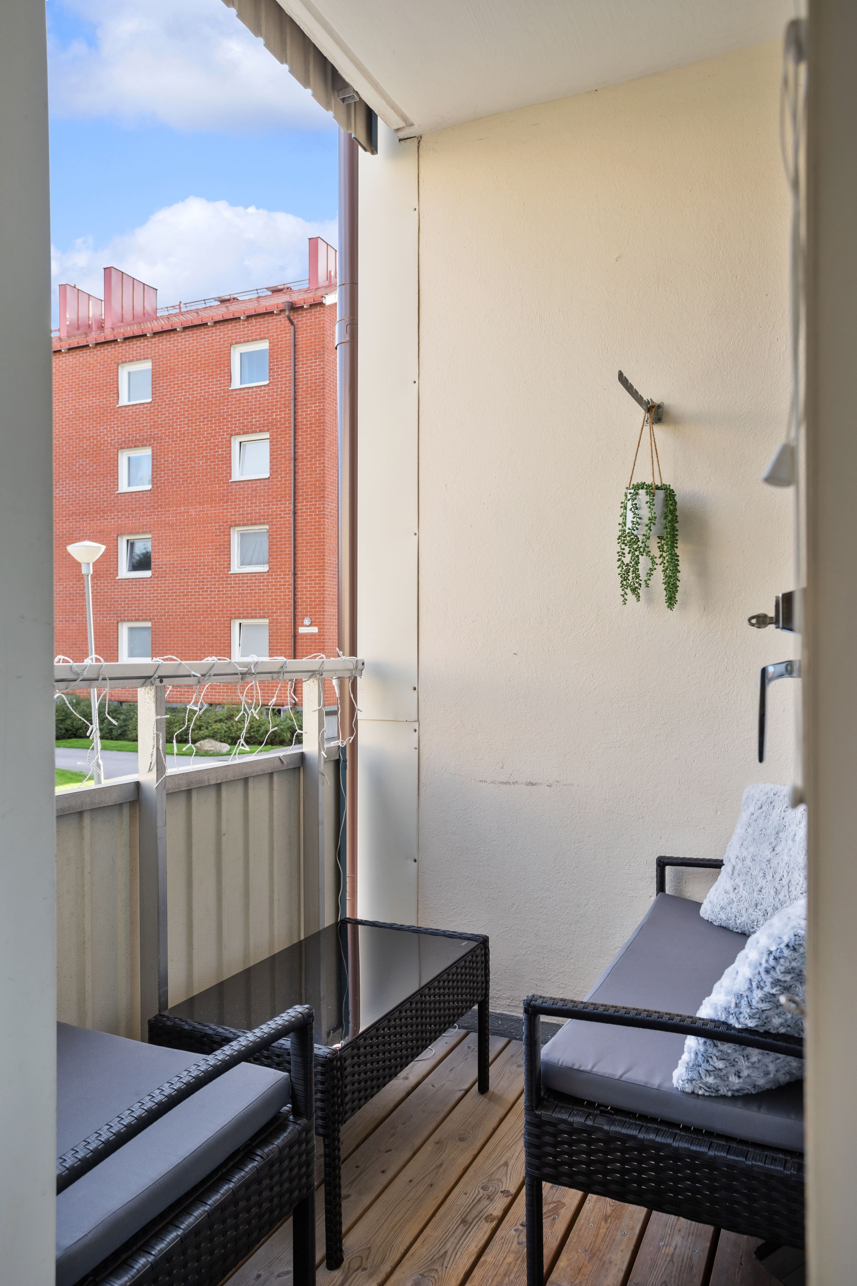 En rymlig hall skapar ett positivt första intryck av denna lägenhet som i övrigt rymmer ett praktiskt och fräscht kök, ett sovrum med skjutgarderober samt ett rymligt, ljust och socialt vardagsrum med fint ljusinsläpp och utgång till balkong. Här finner ni även ett helkaklat duschrum med golvvärme.
