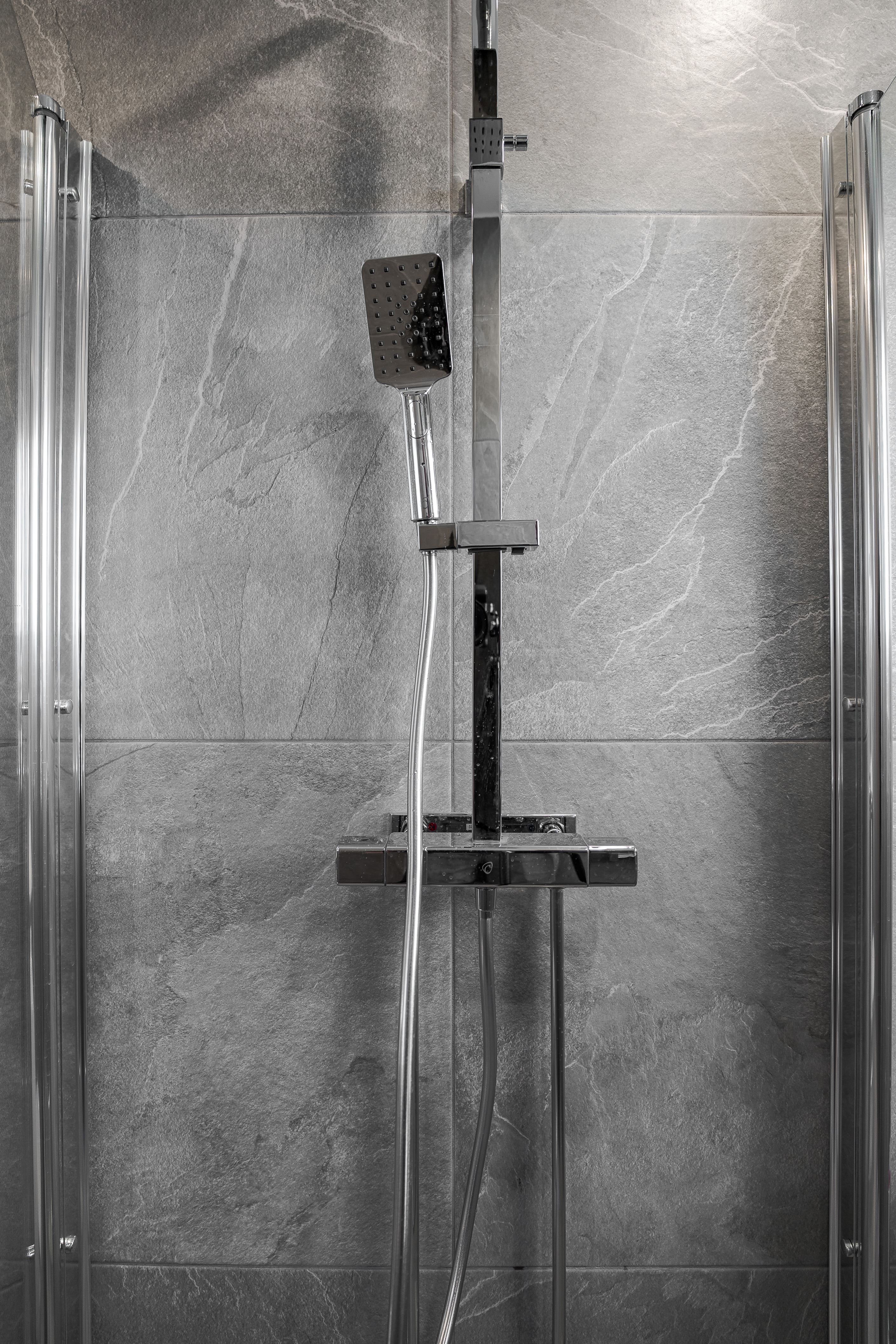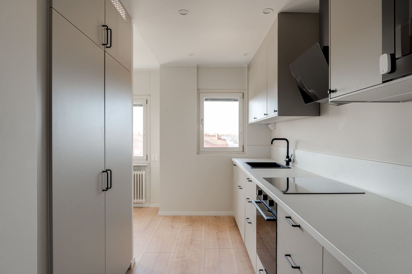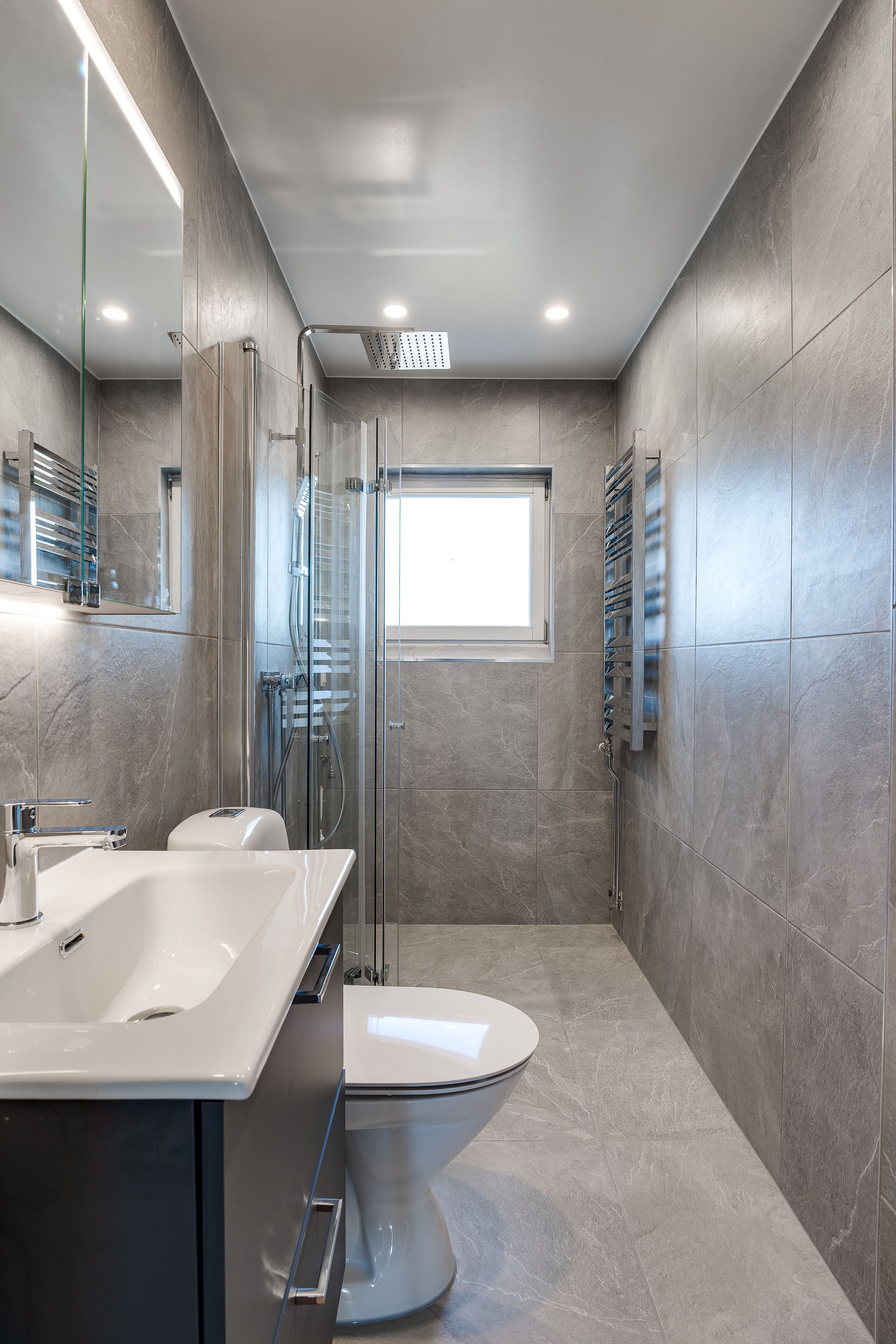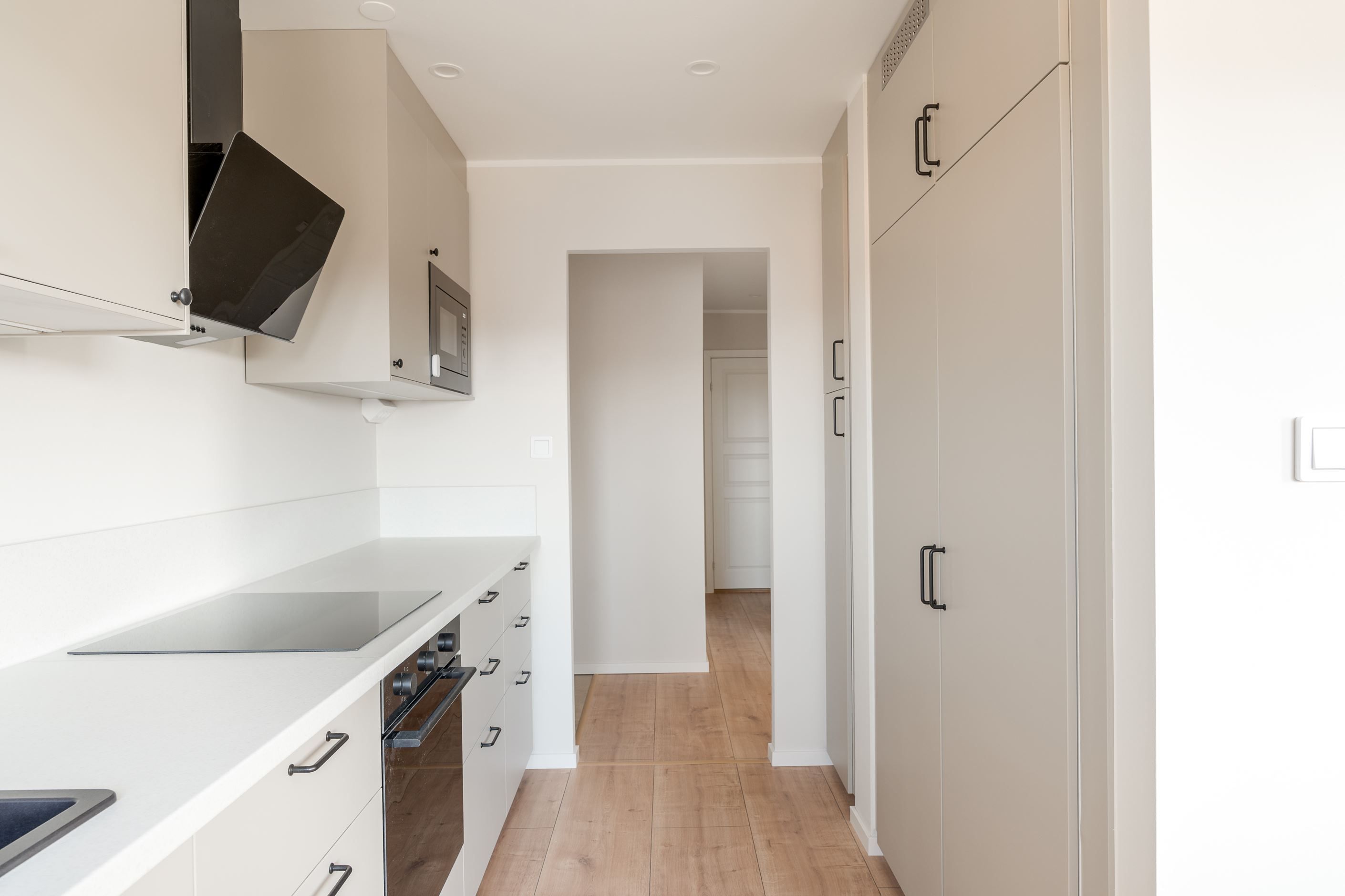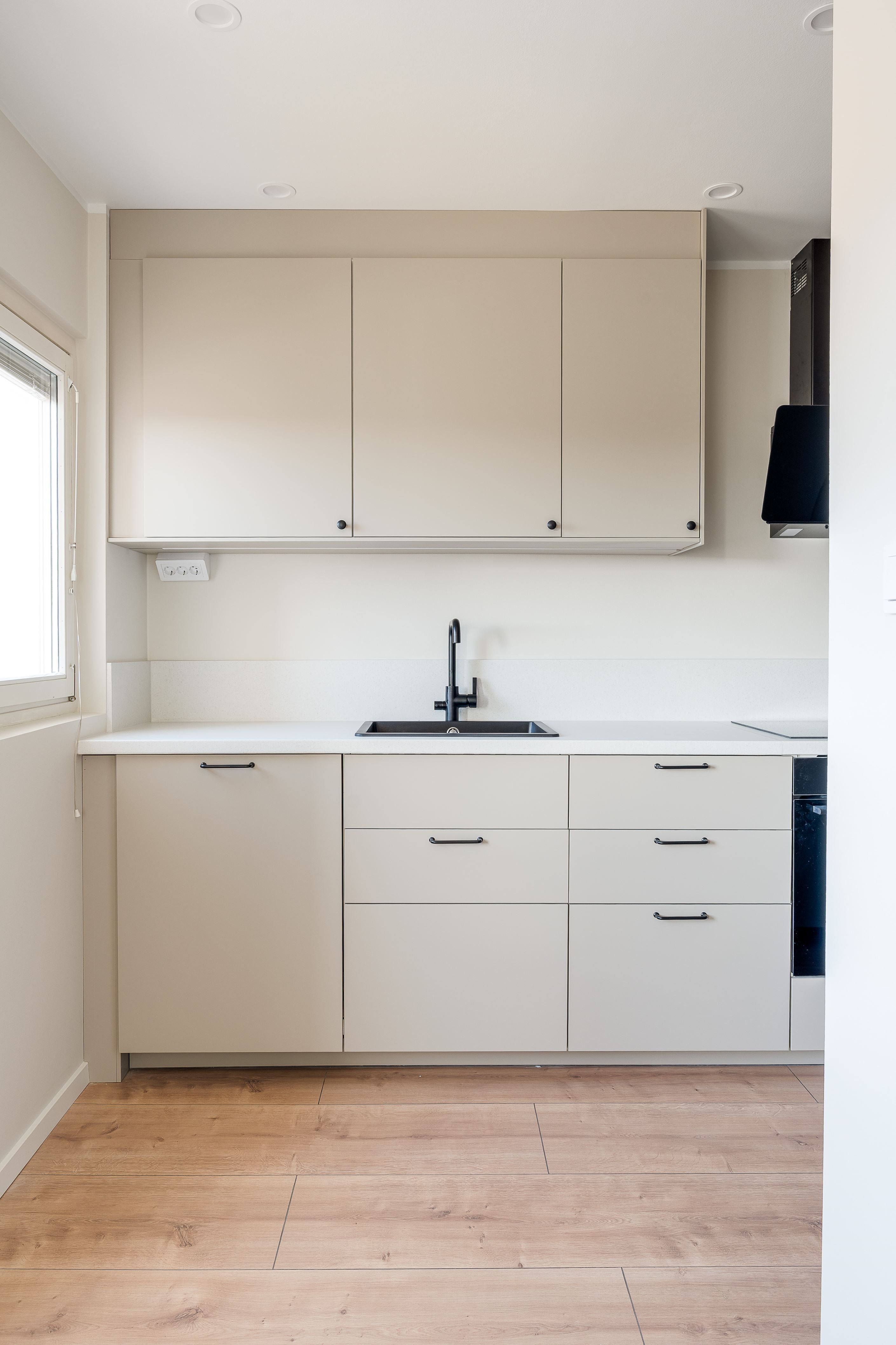 Köket är modernt och funktionellt med goda arbetsytor och stilrena materialval. Badrummet är helkaklat i moderna toner och erbjuder en fräsch och exklusiv känsla. Genomgående nya golv och ljusa väggar skapar ett ljust och enhetligt intryck i hela bostaden.