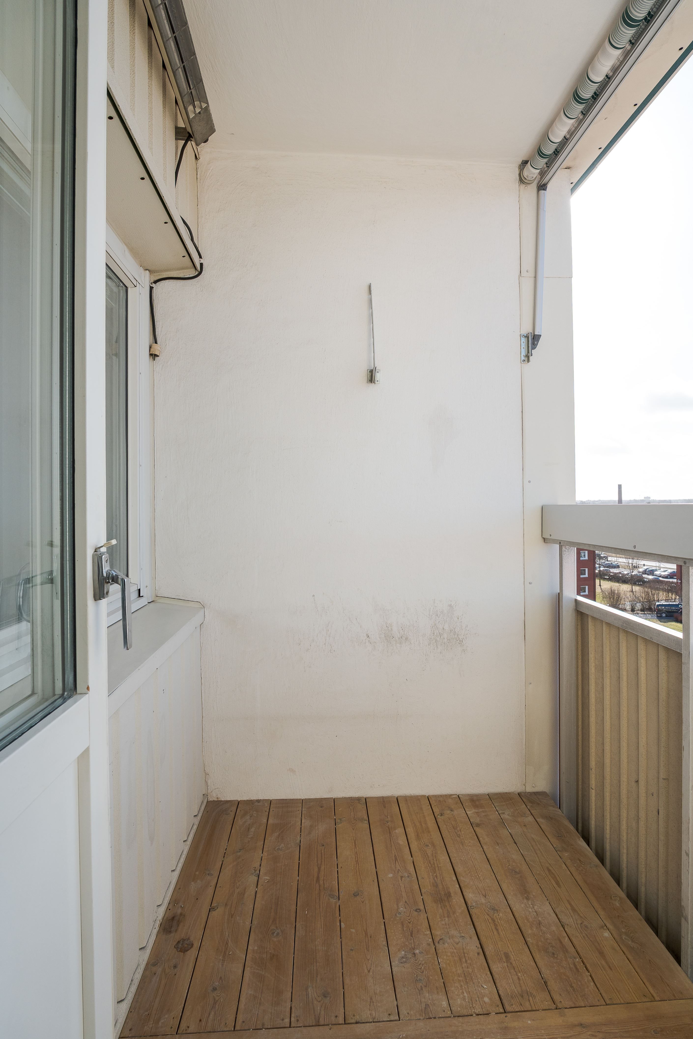 Bostaden har även tillgång till balkong som ger en trevlig plats för avkoppling och utsikt över området. Läget högt upp i huset bidrar till ett fint ljusinsläpp och en luftig känsla.