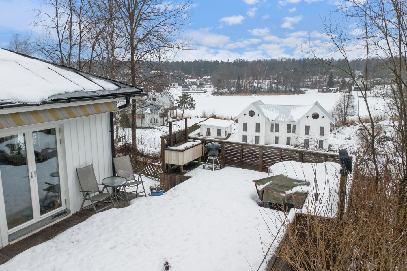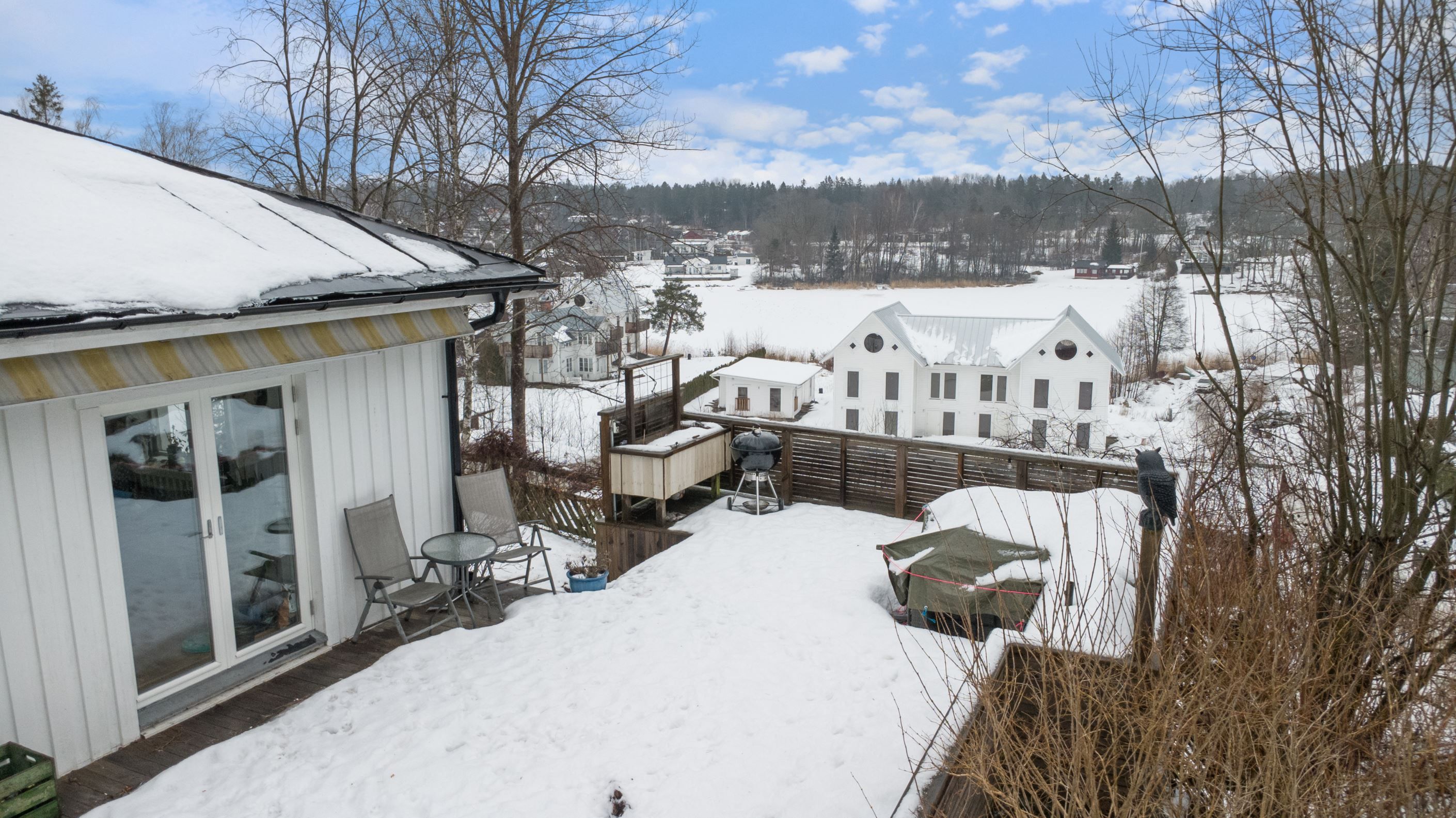 Välskött enplansvilla med sjöutsikt och stor solrik terrass – lugnt läge på återvändsgata