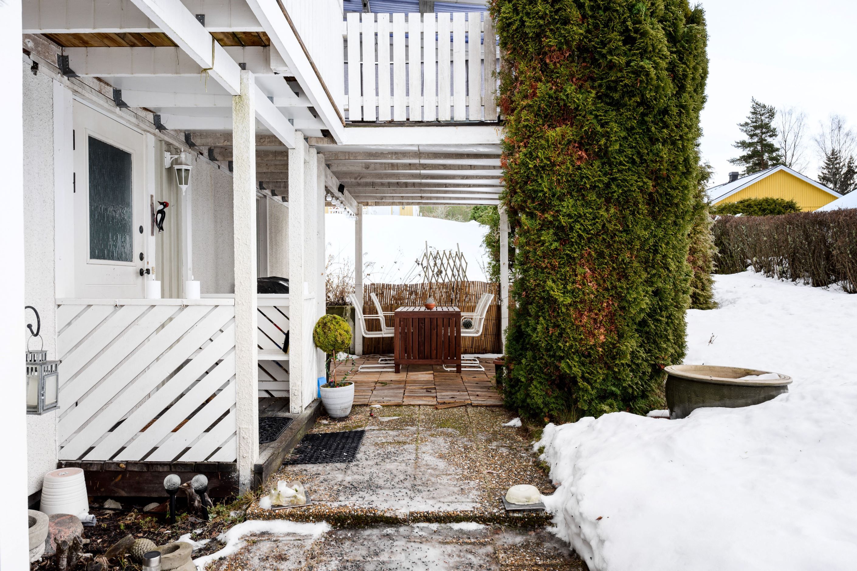 Till huset hör garage med förråd. Det är besiktat och skyddat med dolda fel försäkring för en tryggare affär.
