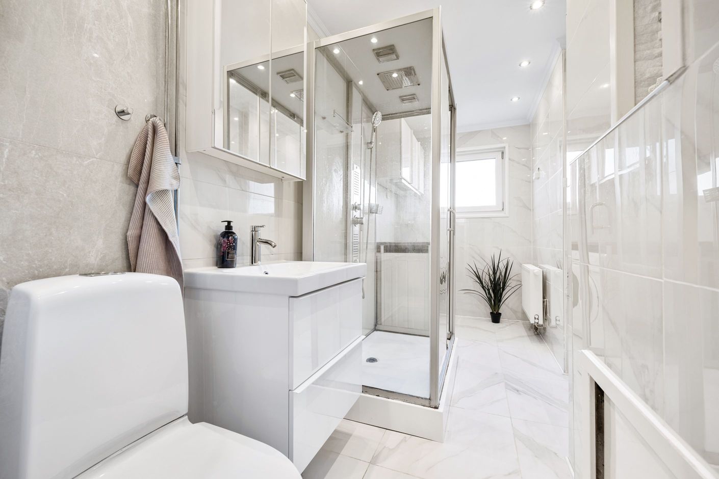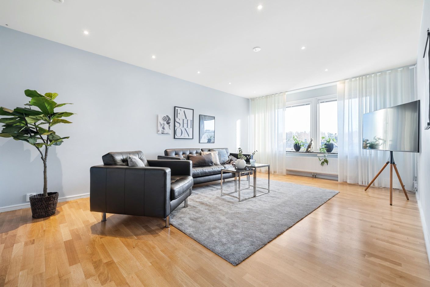 Välplanerad fyrarummare i lugnt område – med två badrum, inglasad balkong och närhet till affärer.